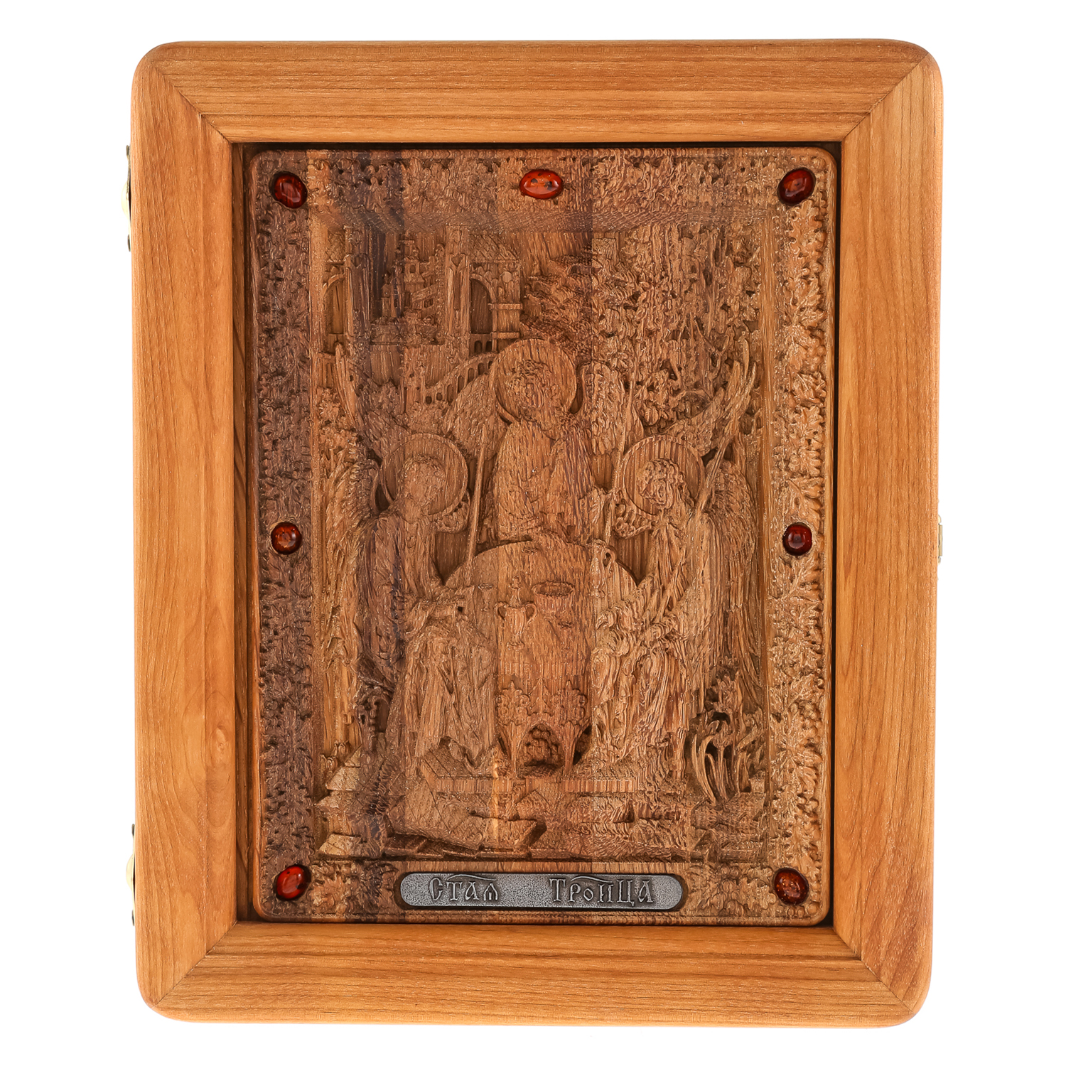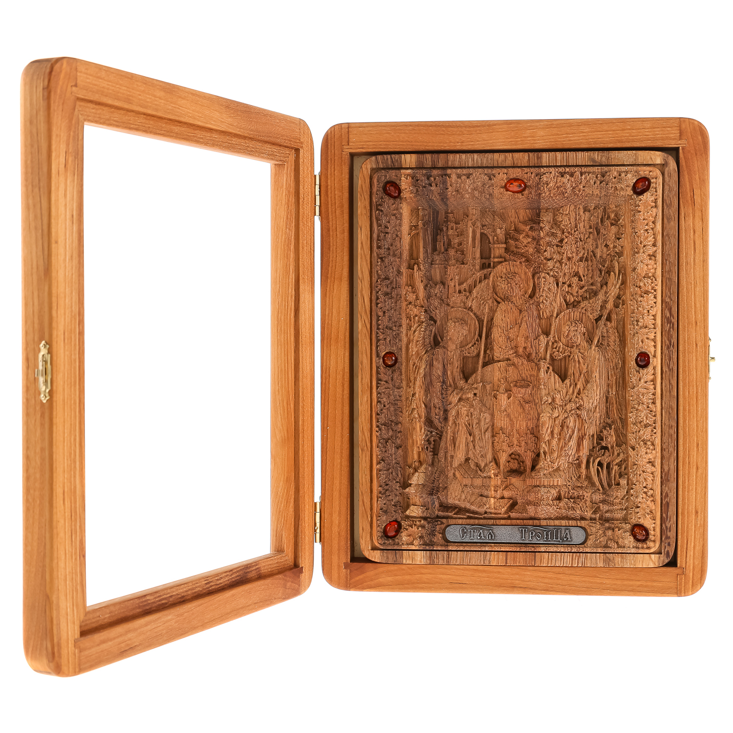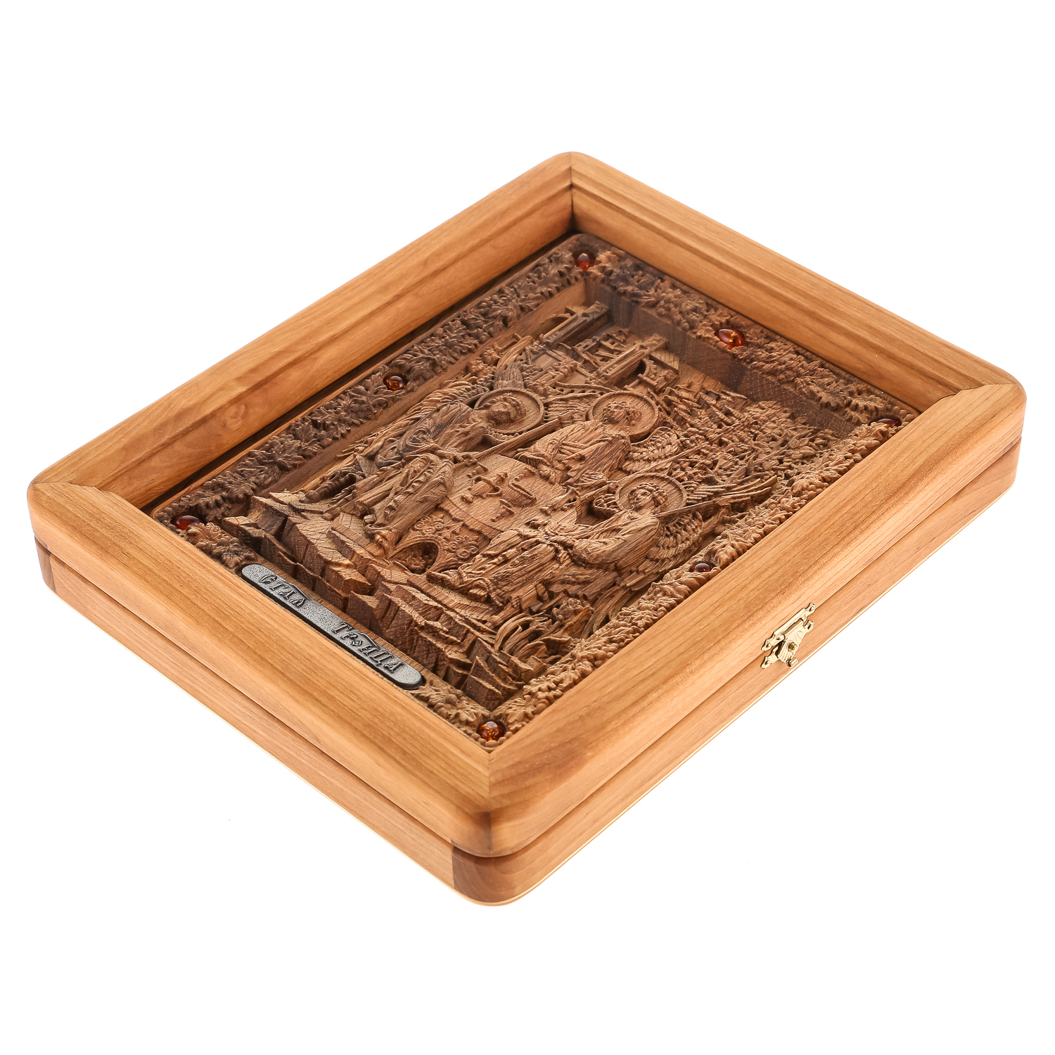 Русские подарки и сувениры → Религиозные подарки → Иконы → Икона из мореного дуба в киоте "Святая Троица" 26х21 см