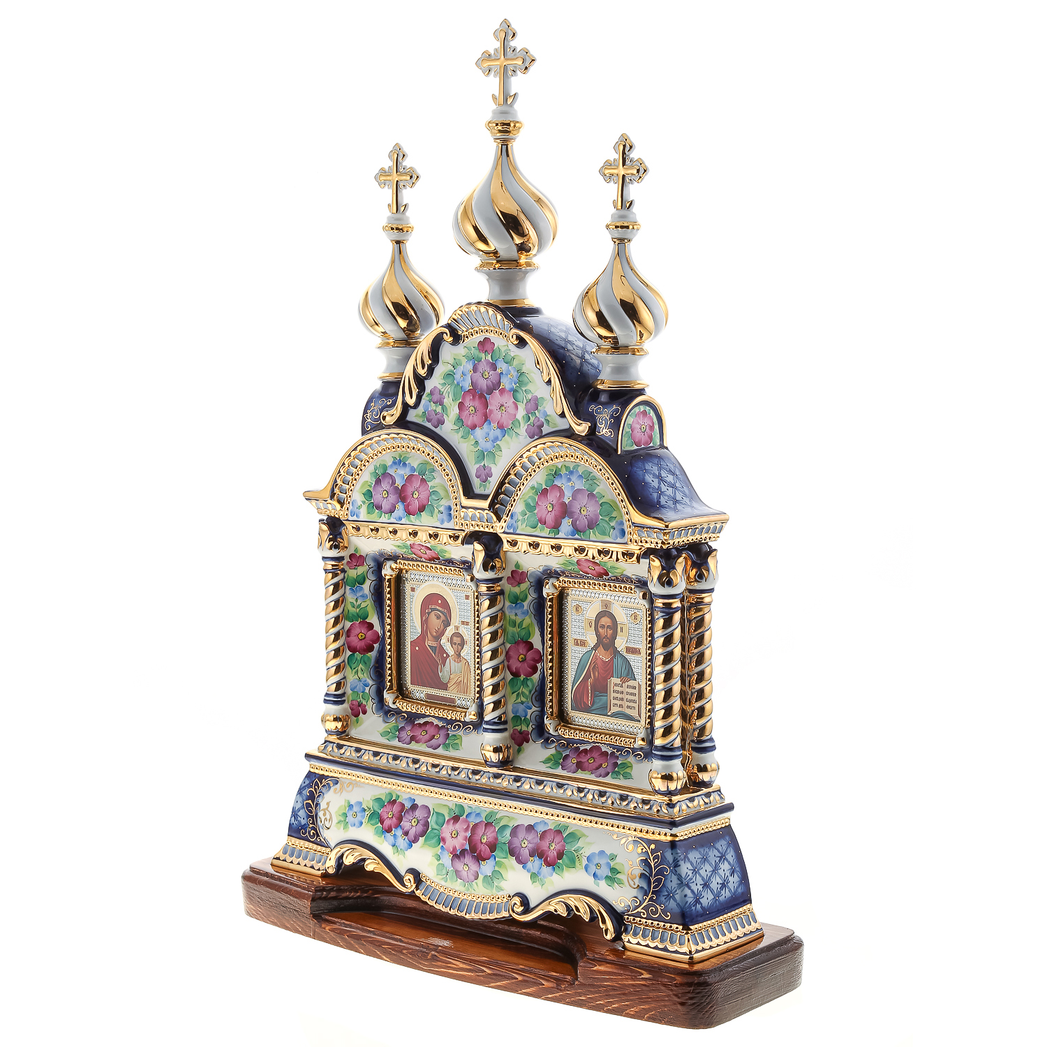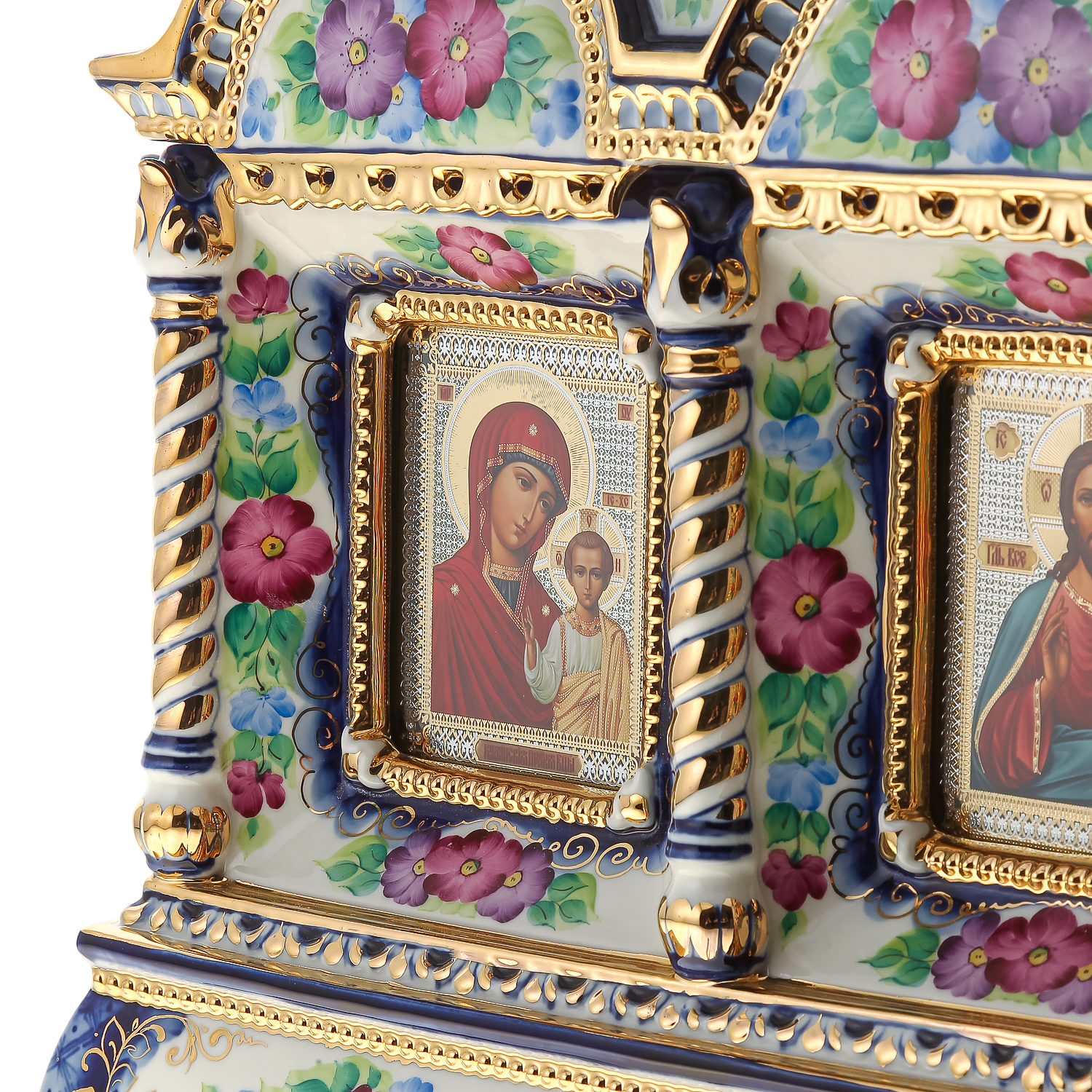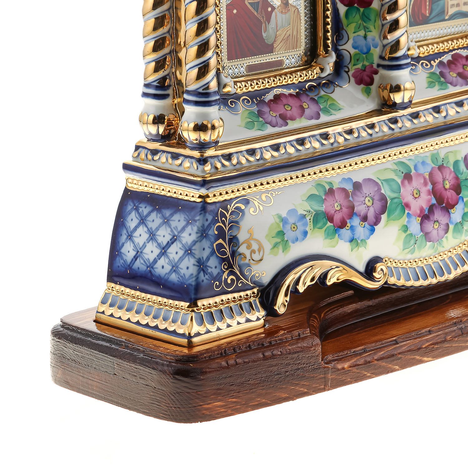 Киот настольный "Иисус Христос и Божья Матерь Казанская". Гжель 42х64 см