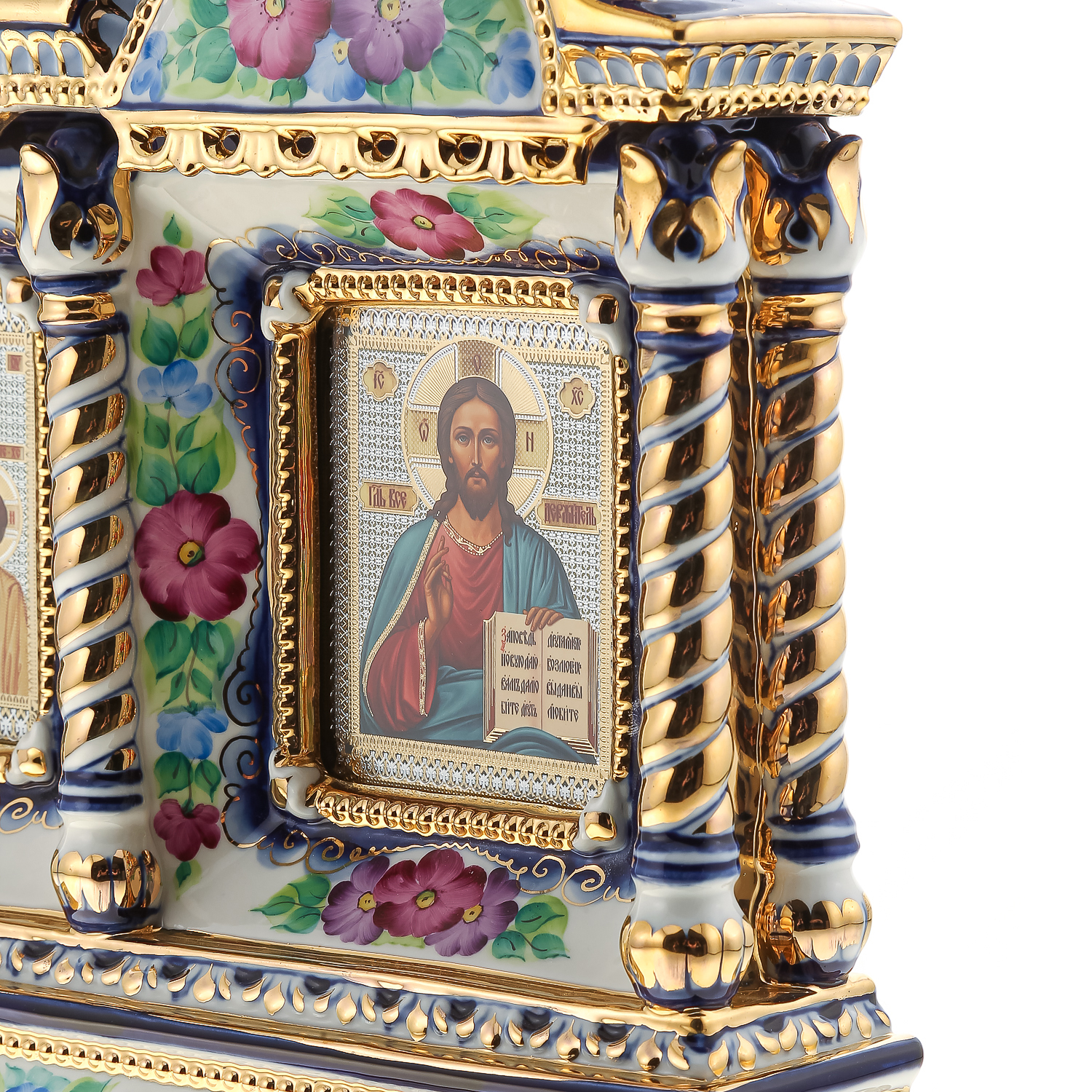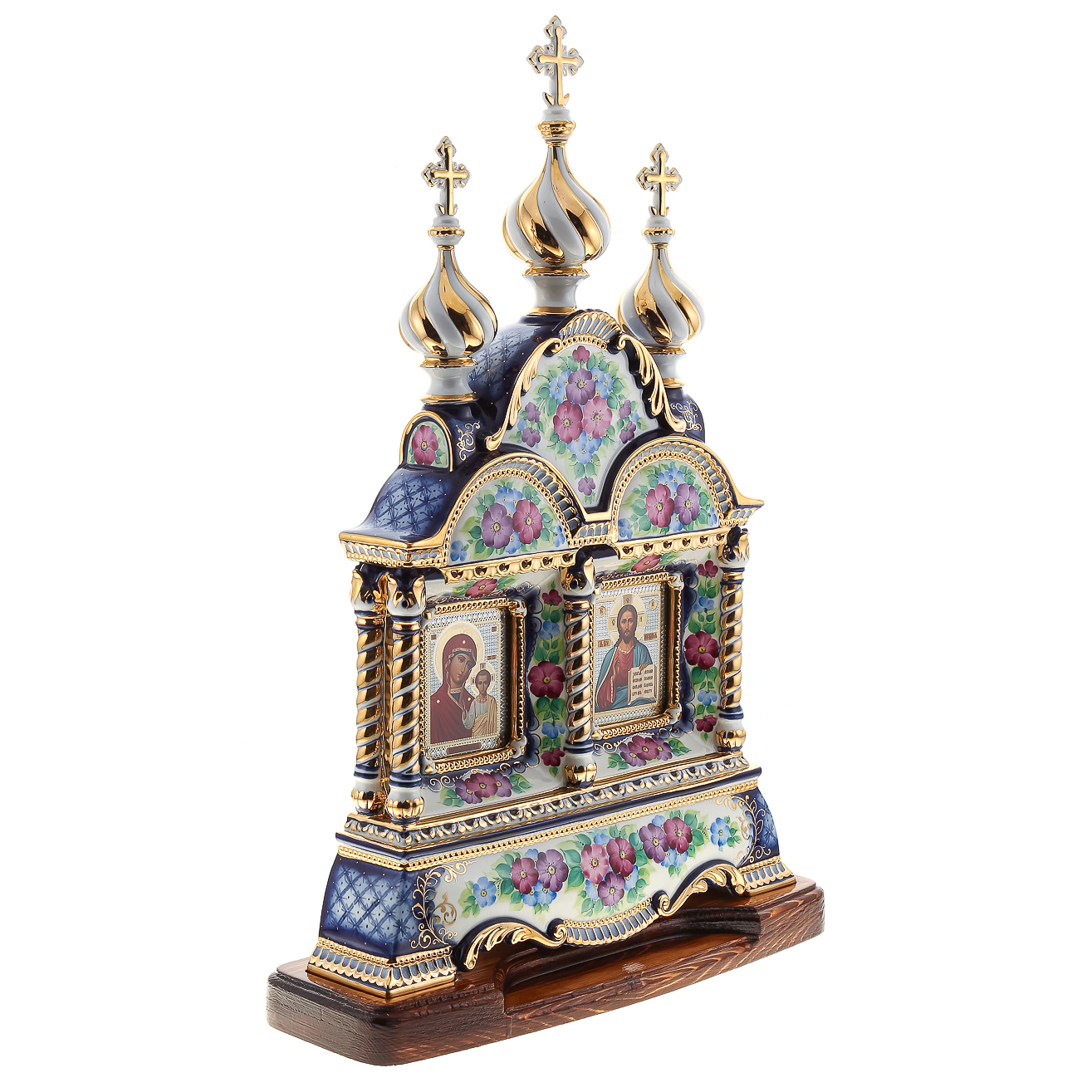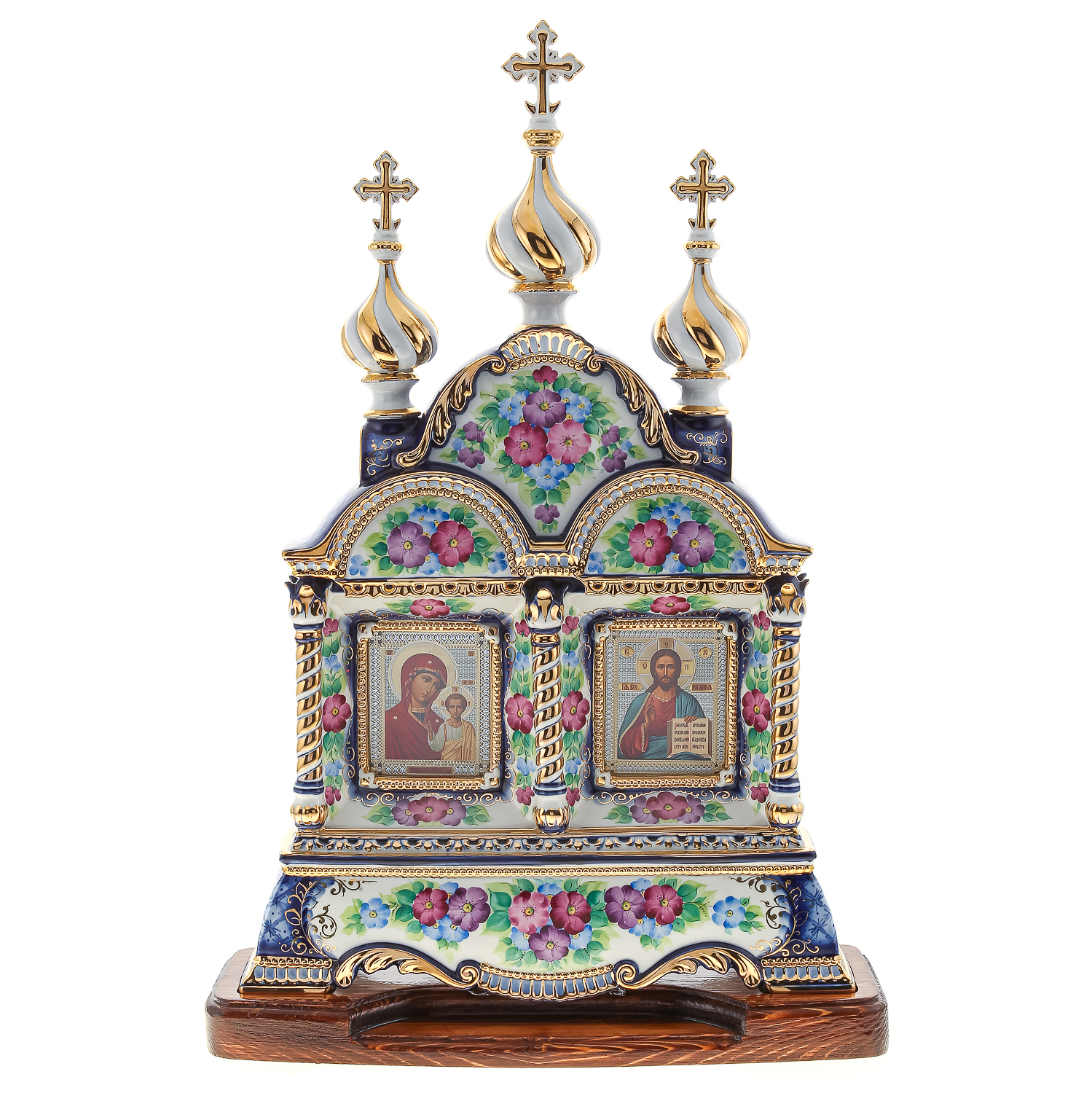 Киот настольный "Иисус Христос и Божья Матерь Казанская". Гжель 42х64 см