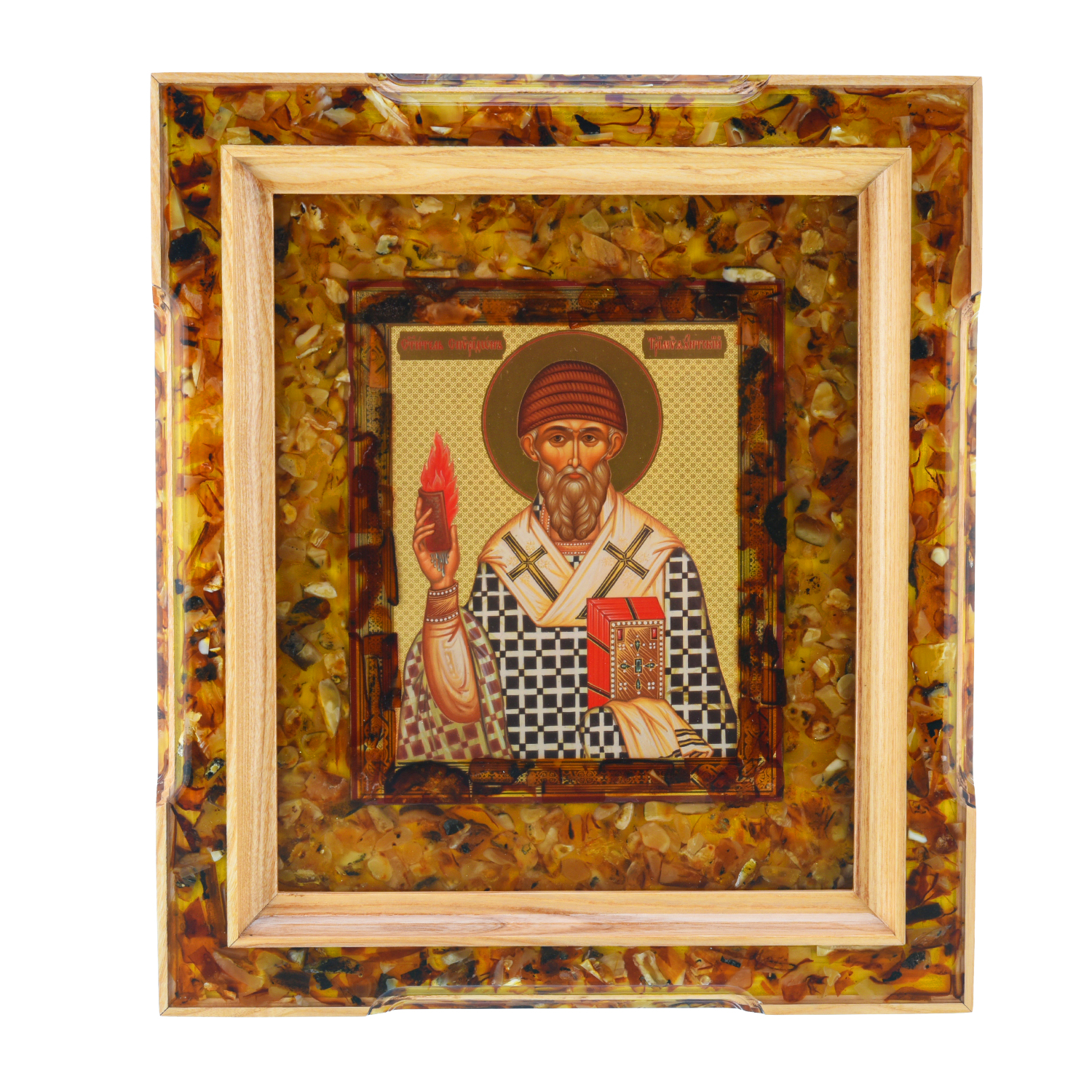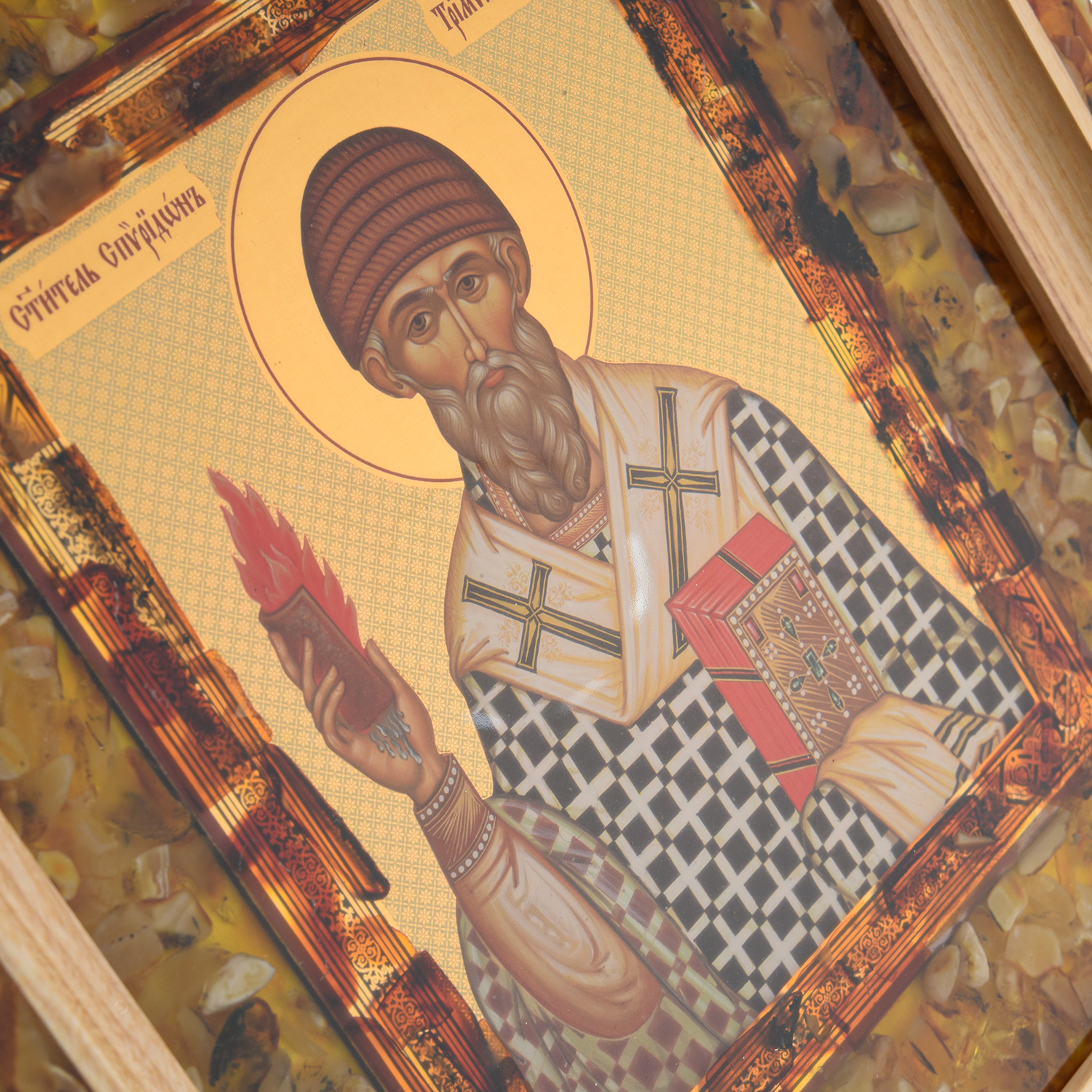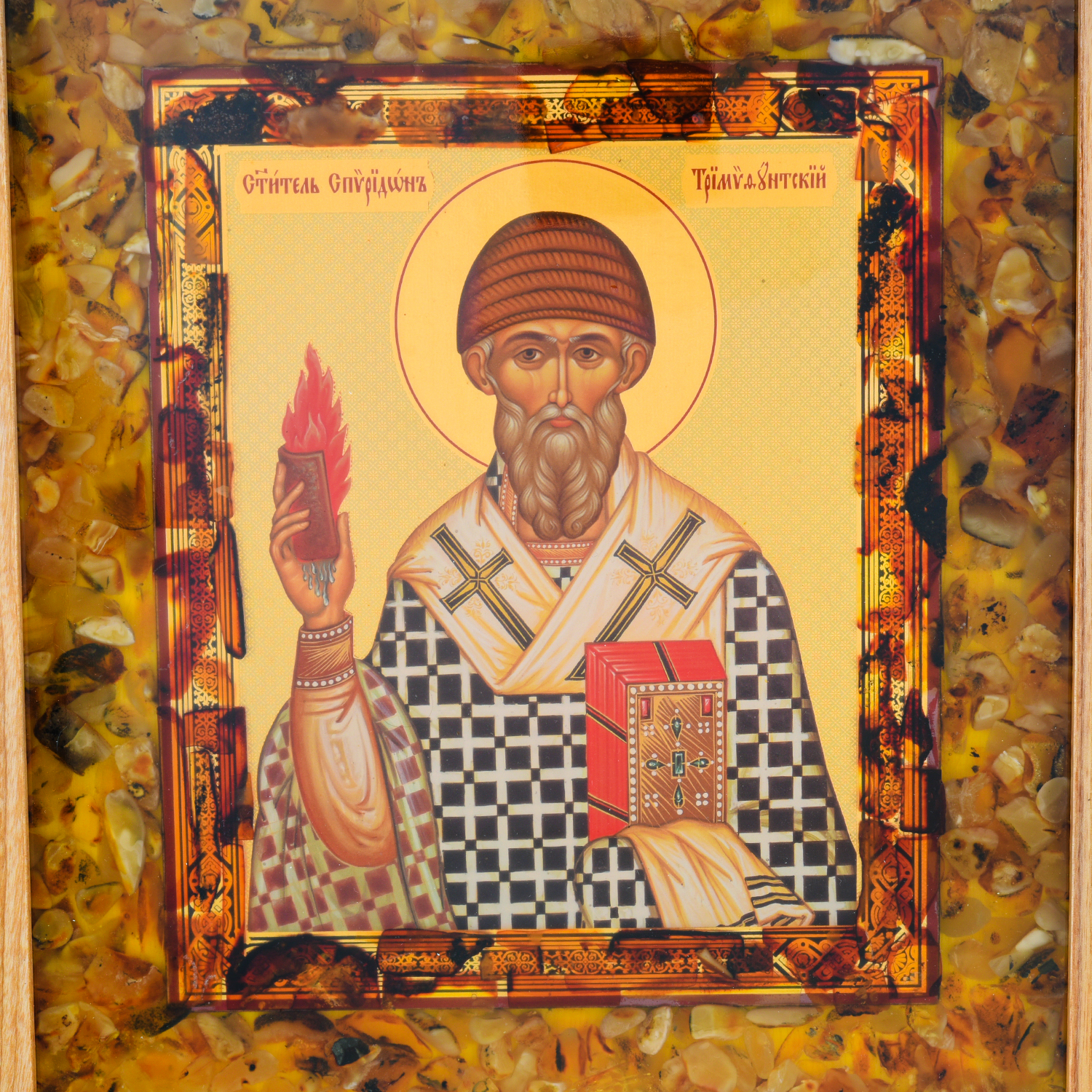 Икона янтарная "Святой Спиридон" 37х34 см