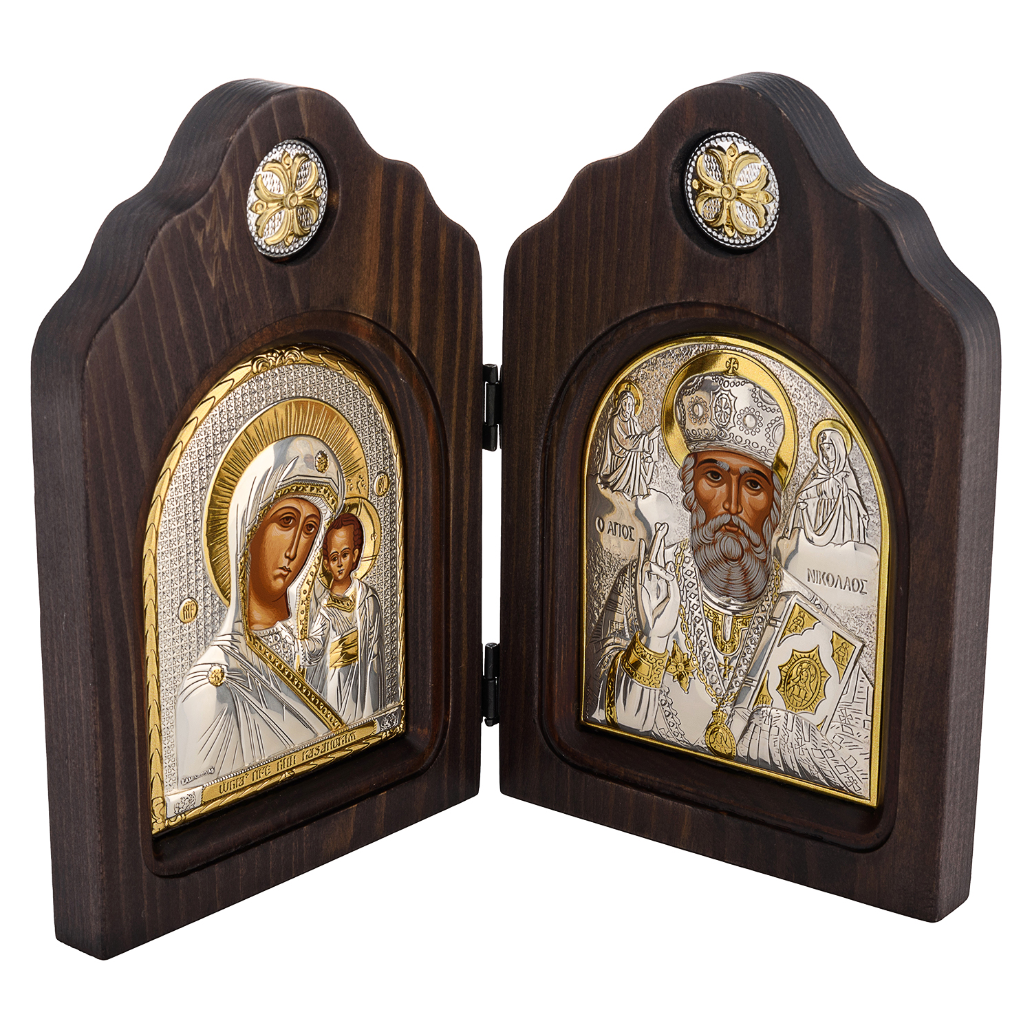 Русские подарки и сувениры → Религиозные подарки → Иконы → Икона диптих "Божья Матерь Казанская/Николай Чудотворец"