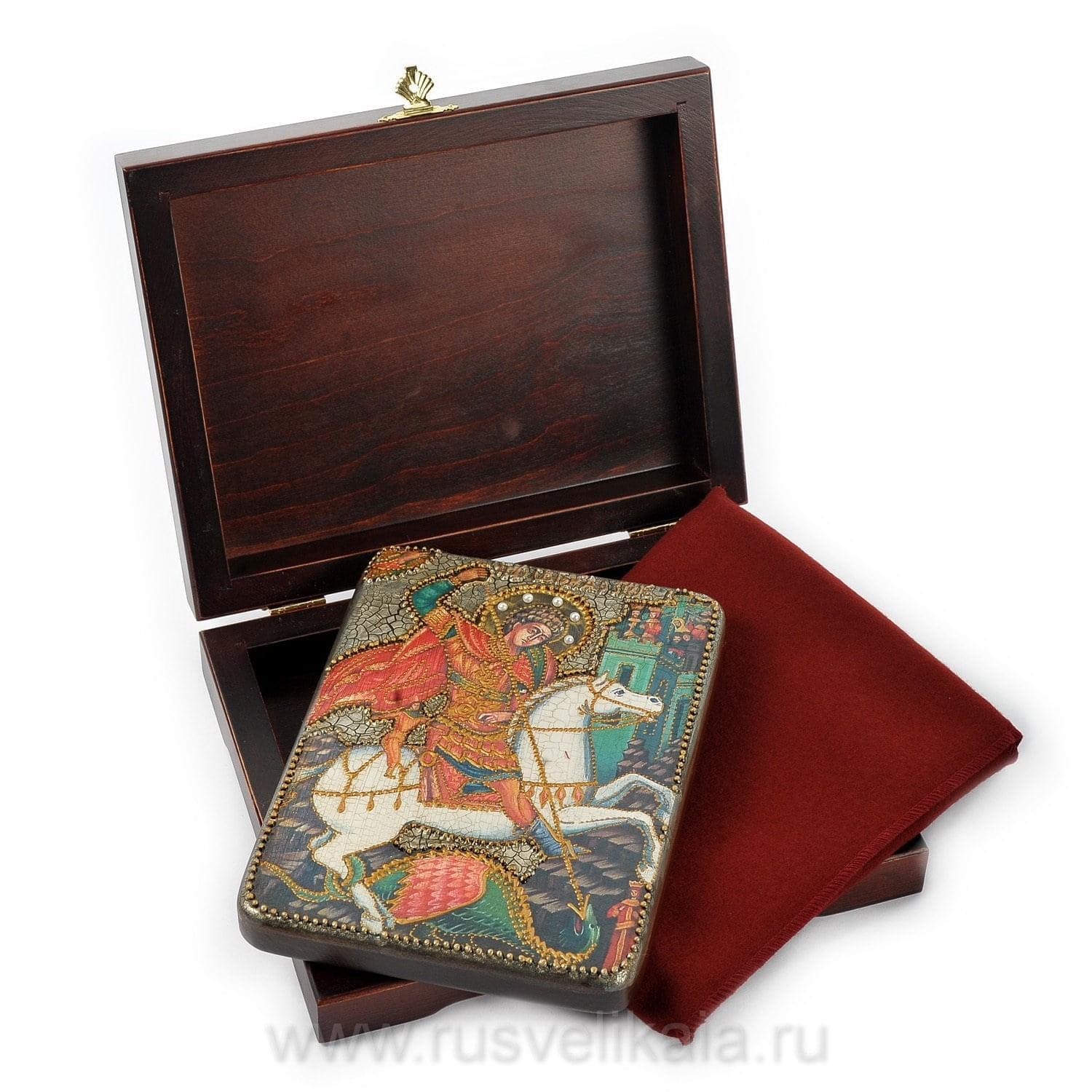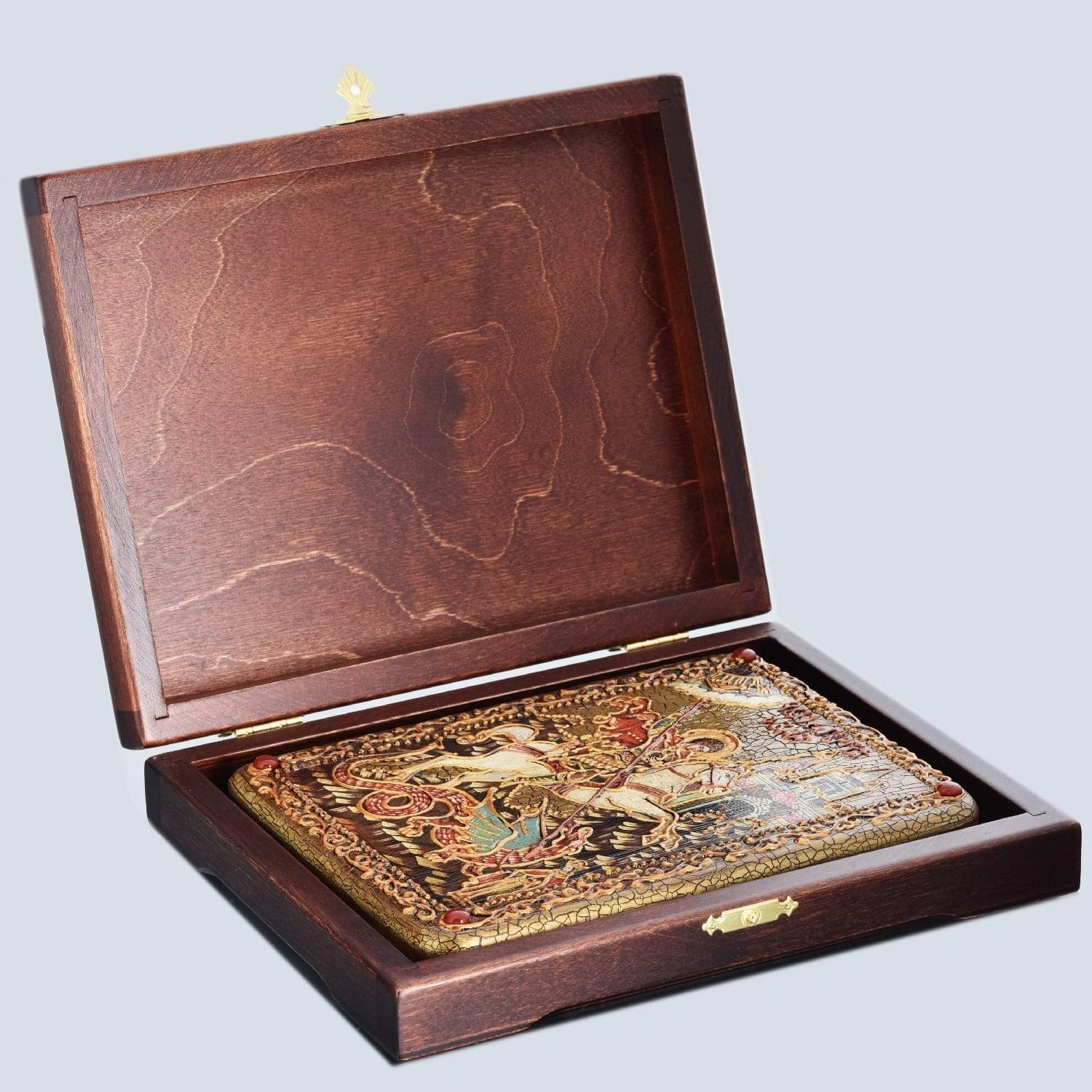 0015611/21*29см Икона подарочная"Чудо св.Георгия о змие" мор.дуб в ПУ (RTI-651.m) .
