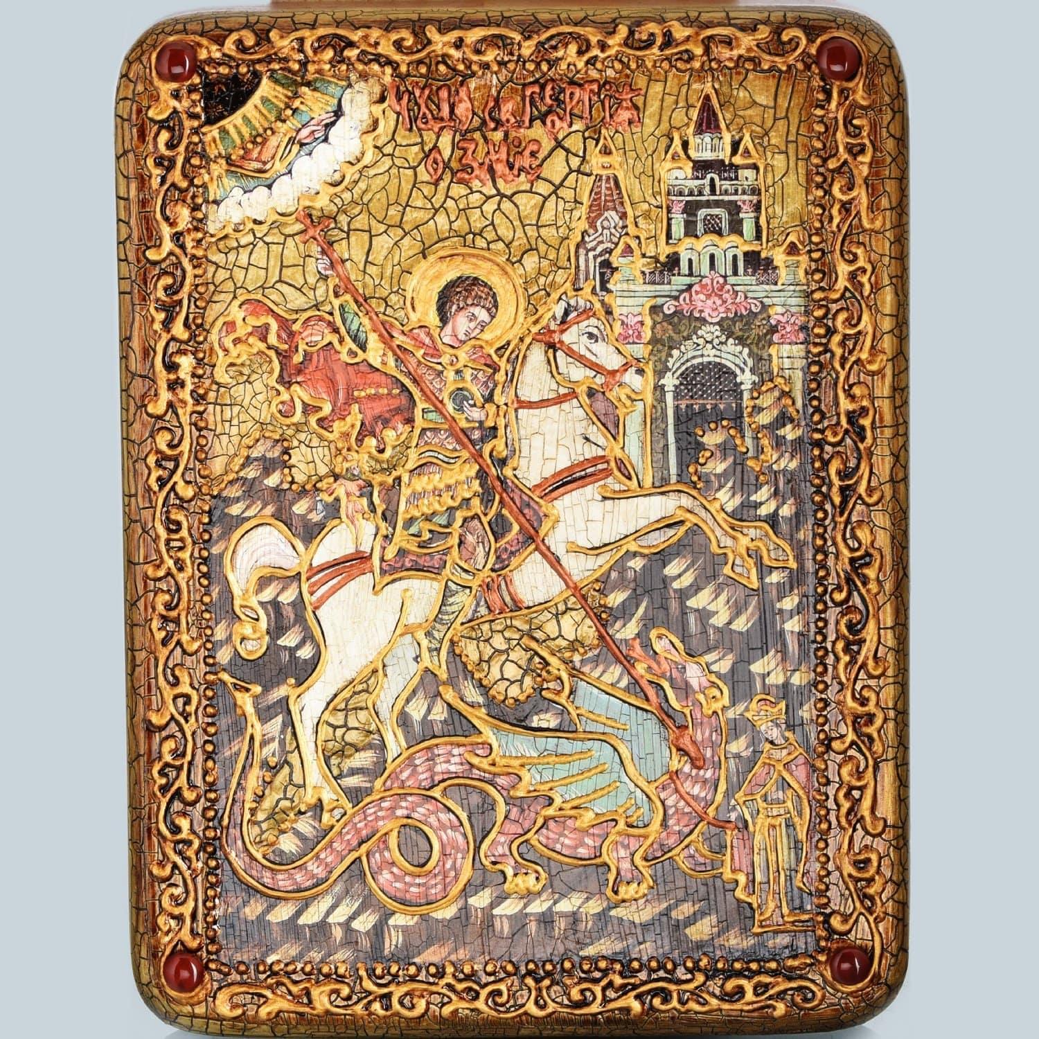 Русские подарки и сувениры → Религиозные подарки → Иконы → Икона "Чудо Св. Георгия о змие" 21 х 29 см