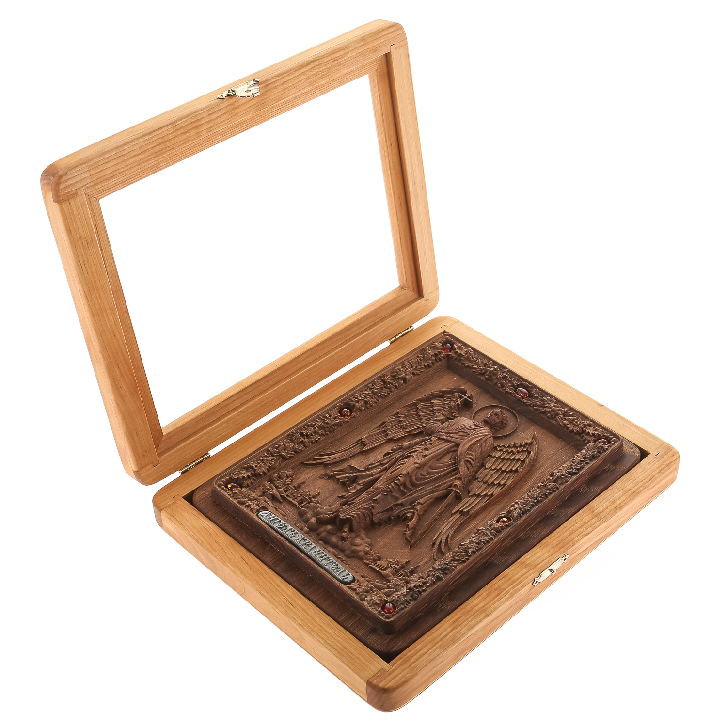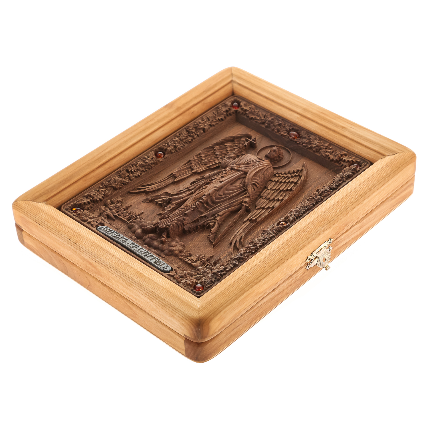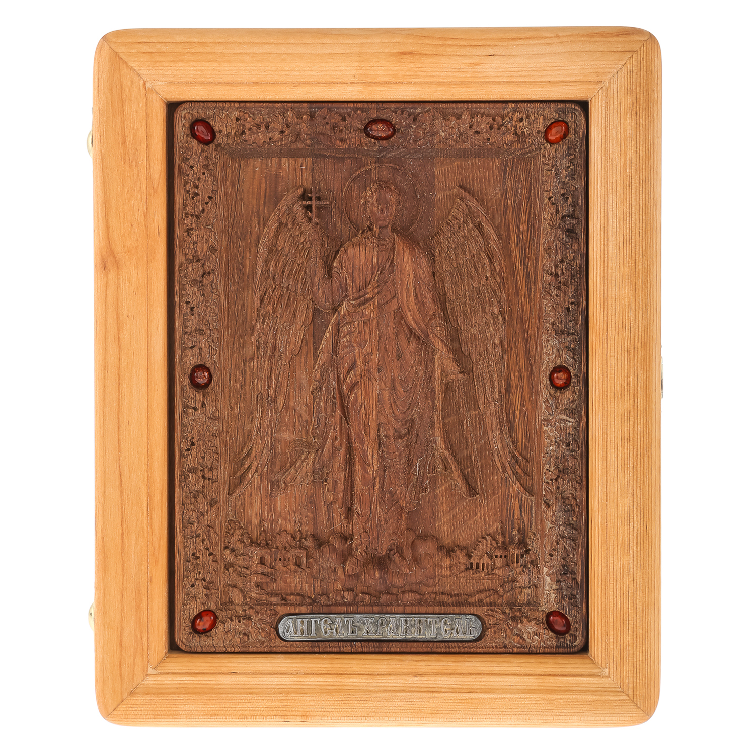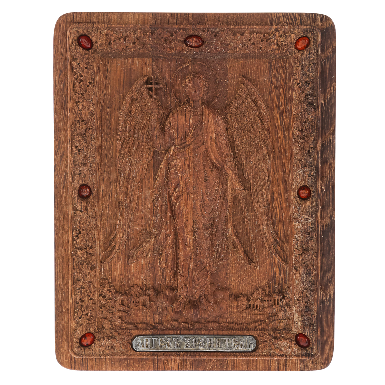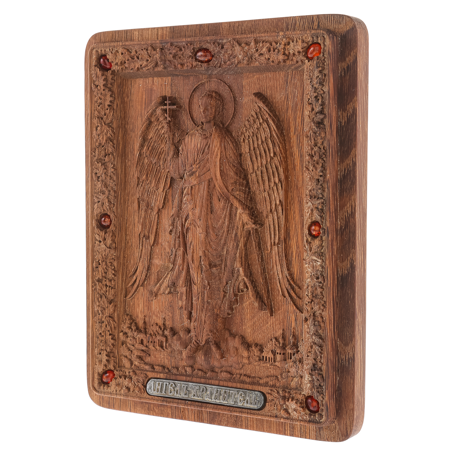 0036008/26*21см  Икона подарочная резная КИОТ (береза) "Ангел Хранитель" мор. дуб RAR-290.М