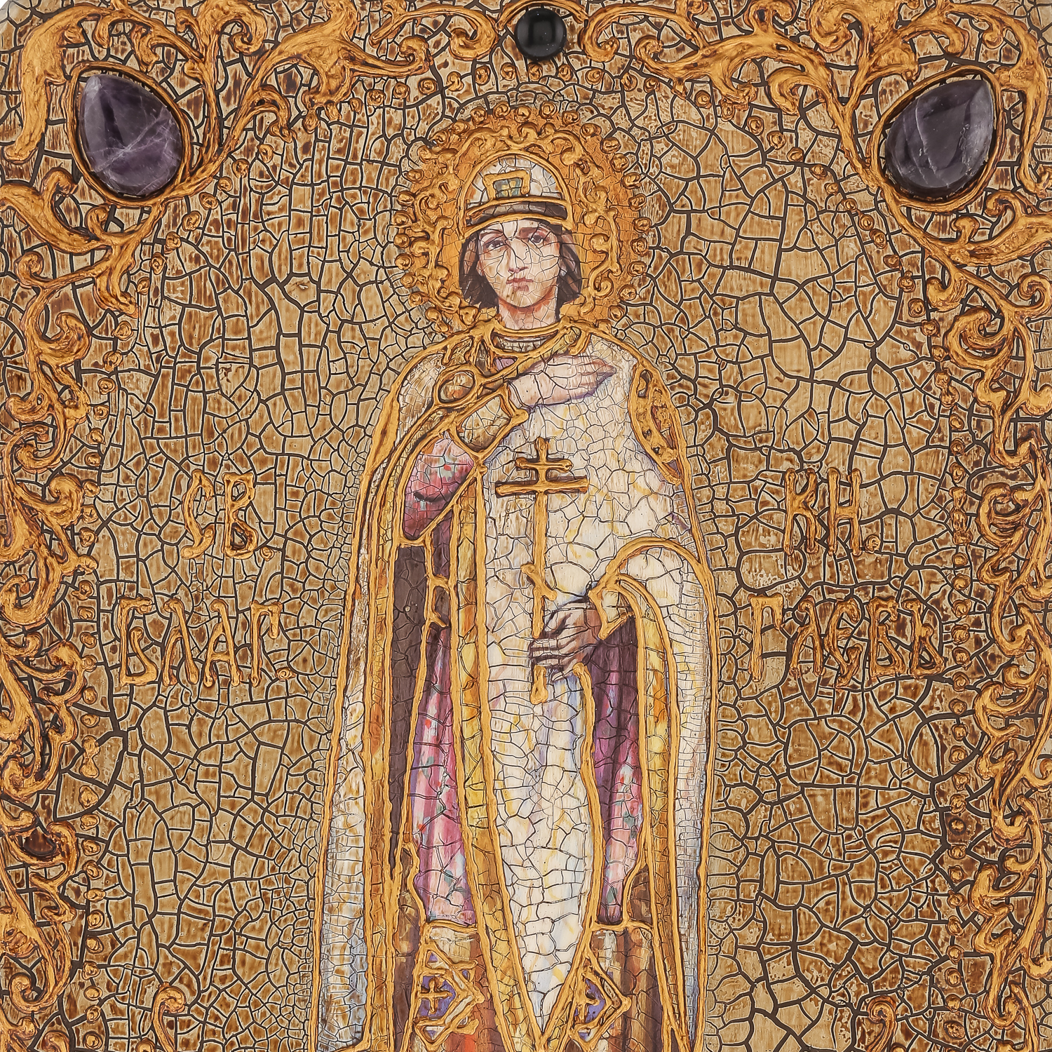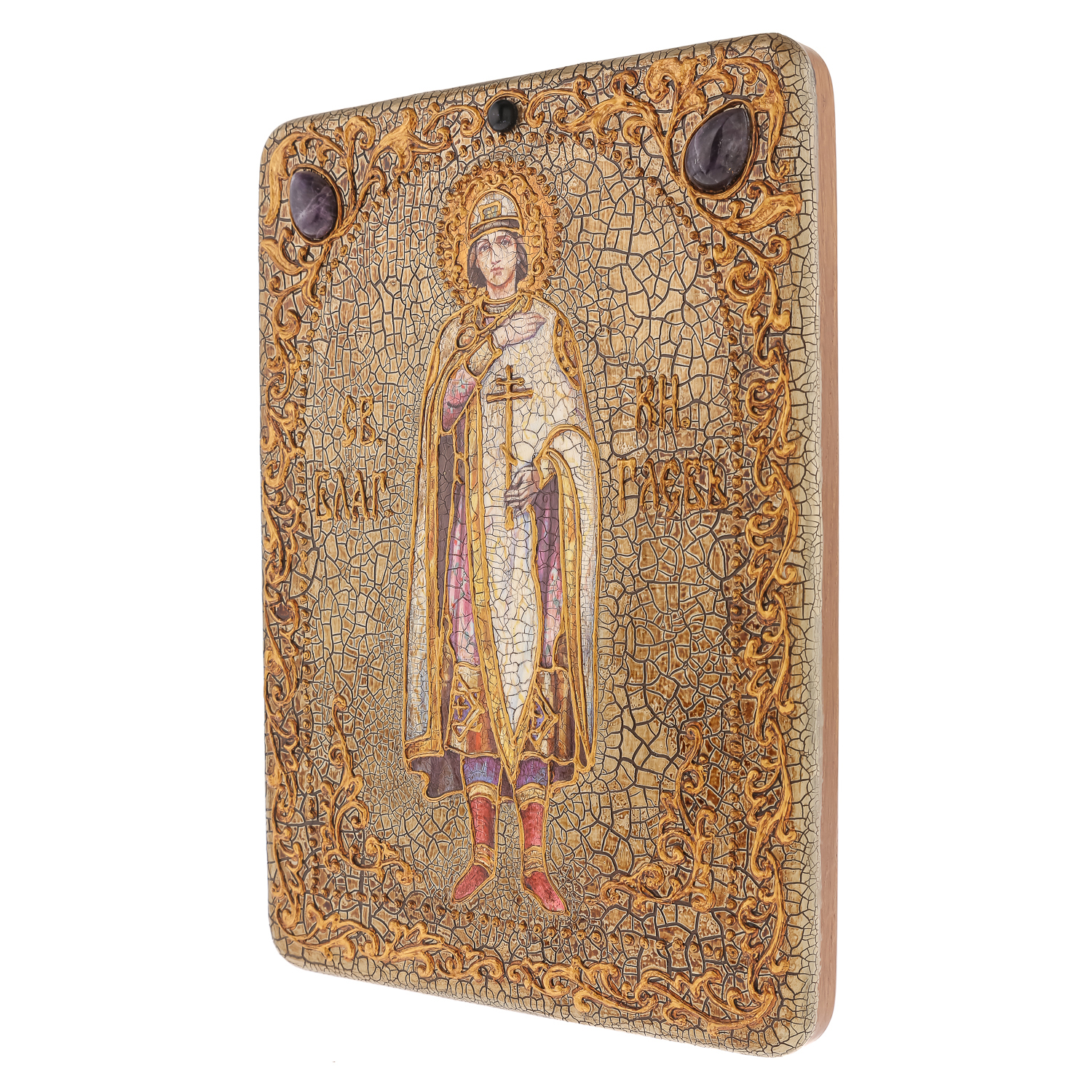 Икона из мореного дуба "Святой благоверный князь Глеб" 21х29 см