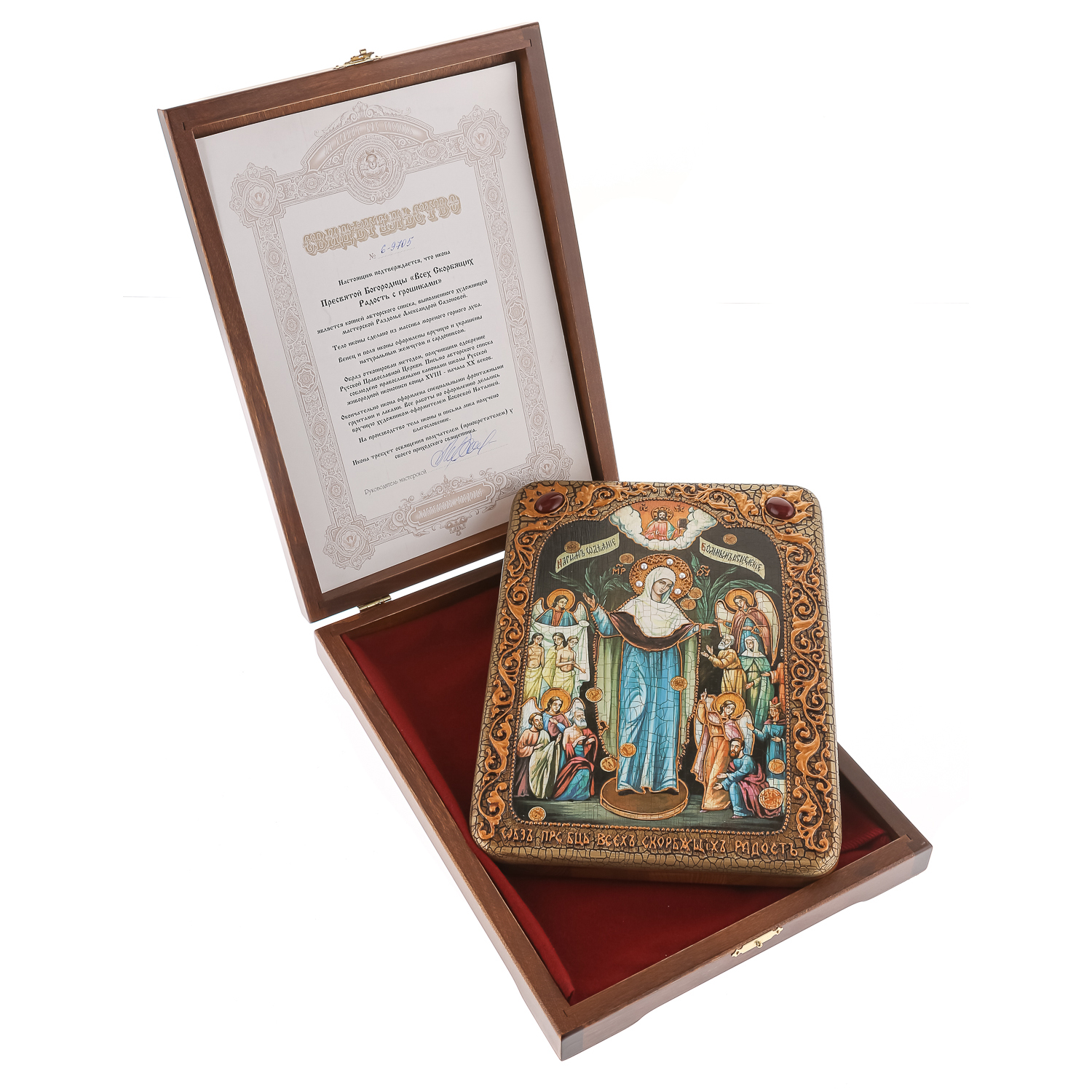 0074143/21*29см Икона подарочная "БМ Всех скорбящих радость с грош." мор.дуб  в ПУ (RTI-515.m)