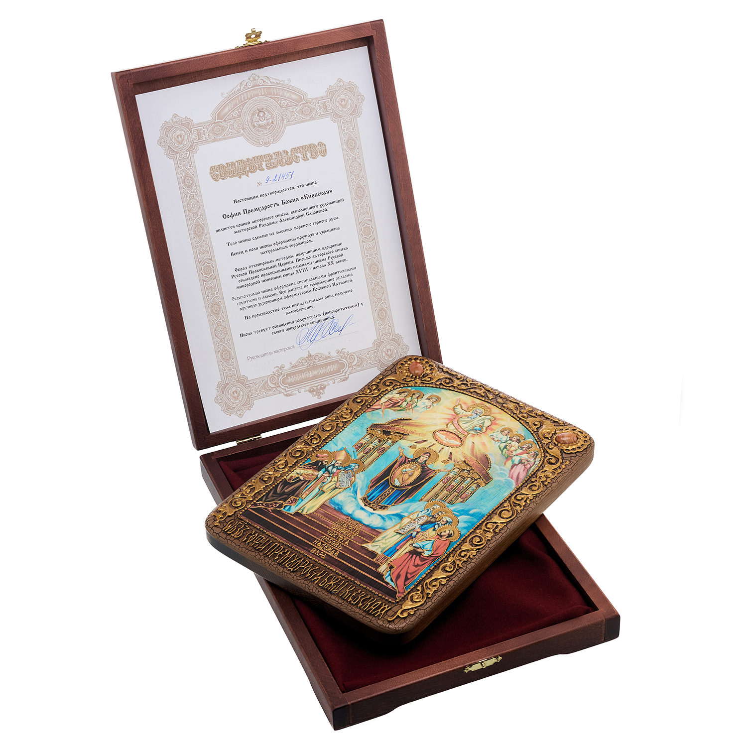 Икона "София - Премудрость Божия (Киевская)".Материалы: мореный дуб, краски, сердолик.