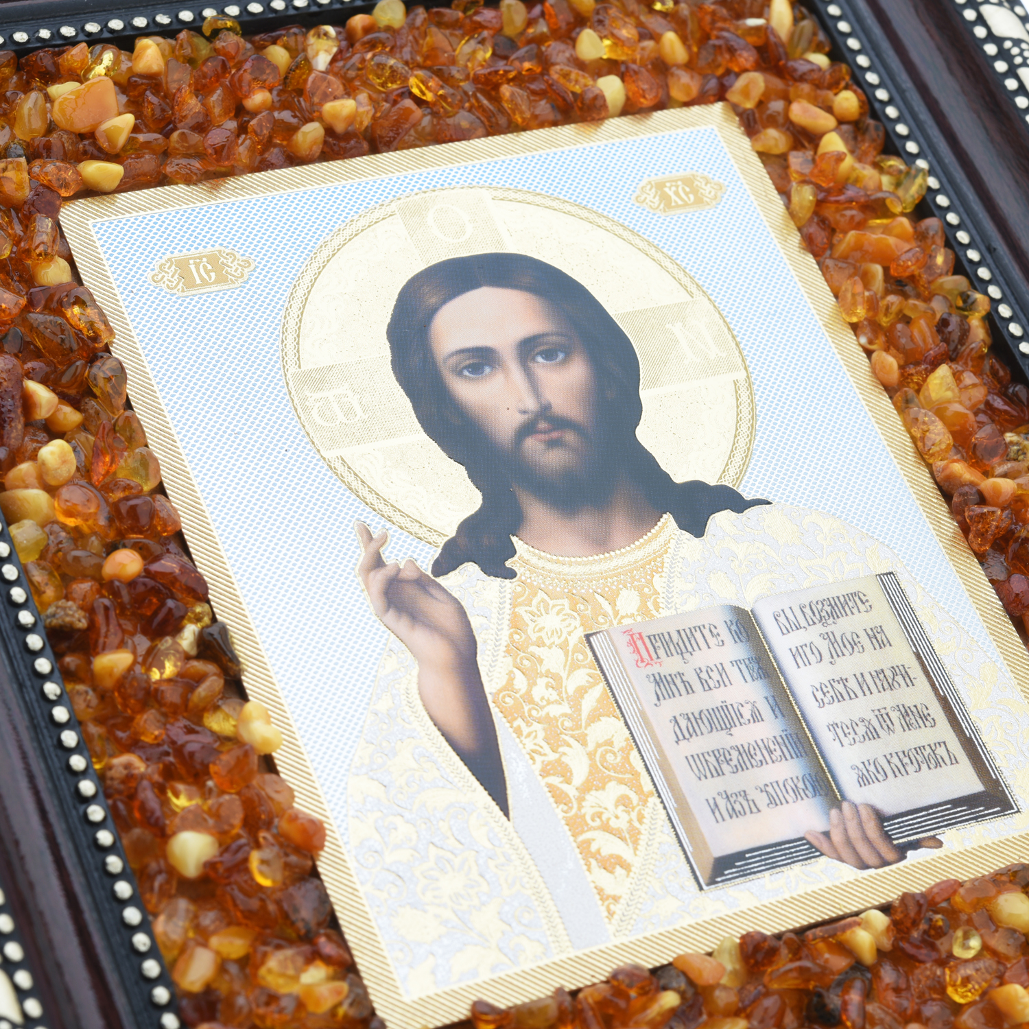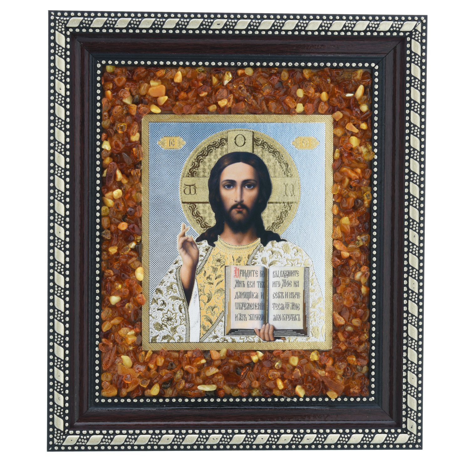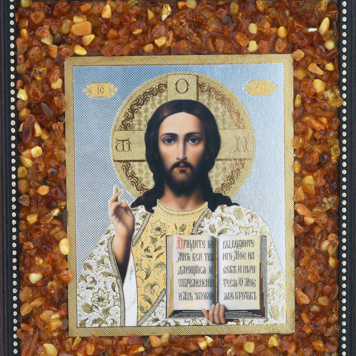 Икона янтарная "Господь Вседержитель" 22х19 см