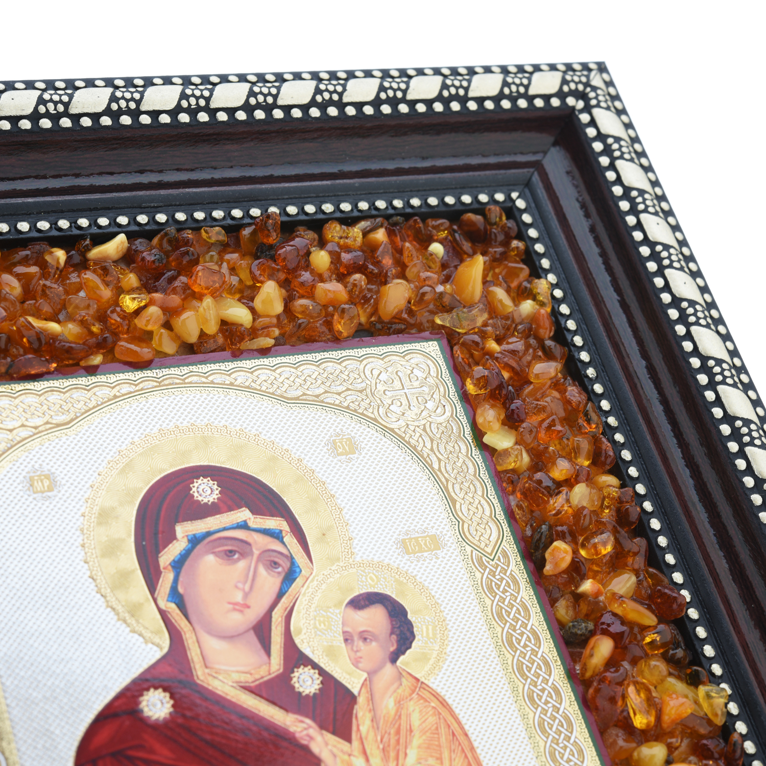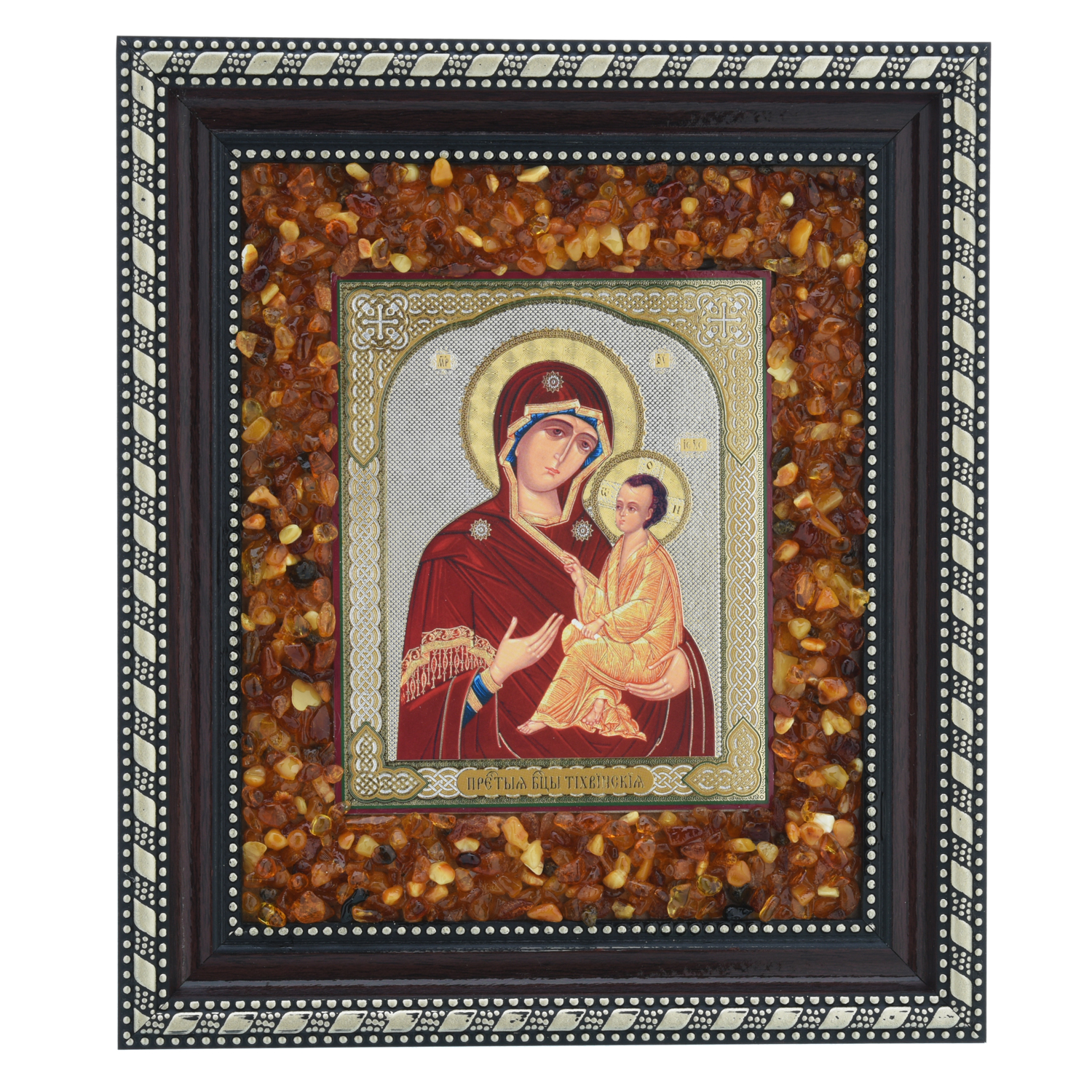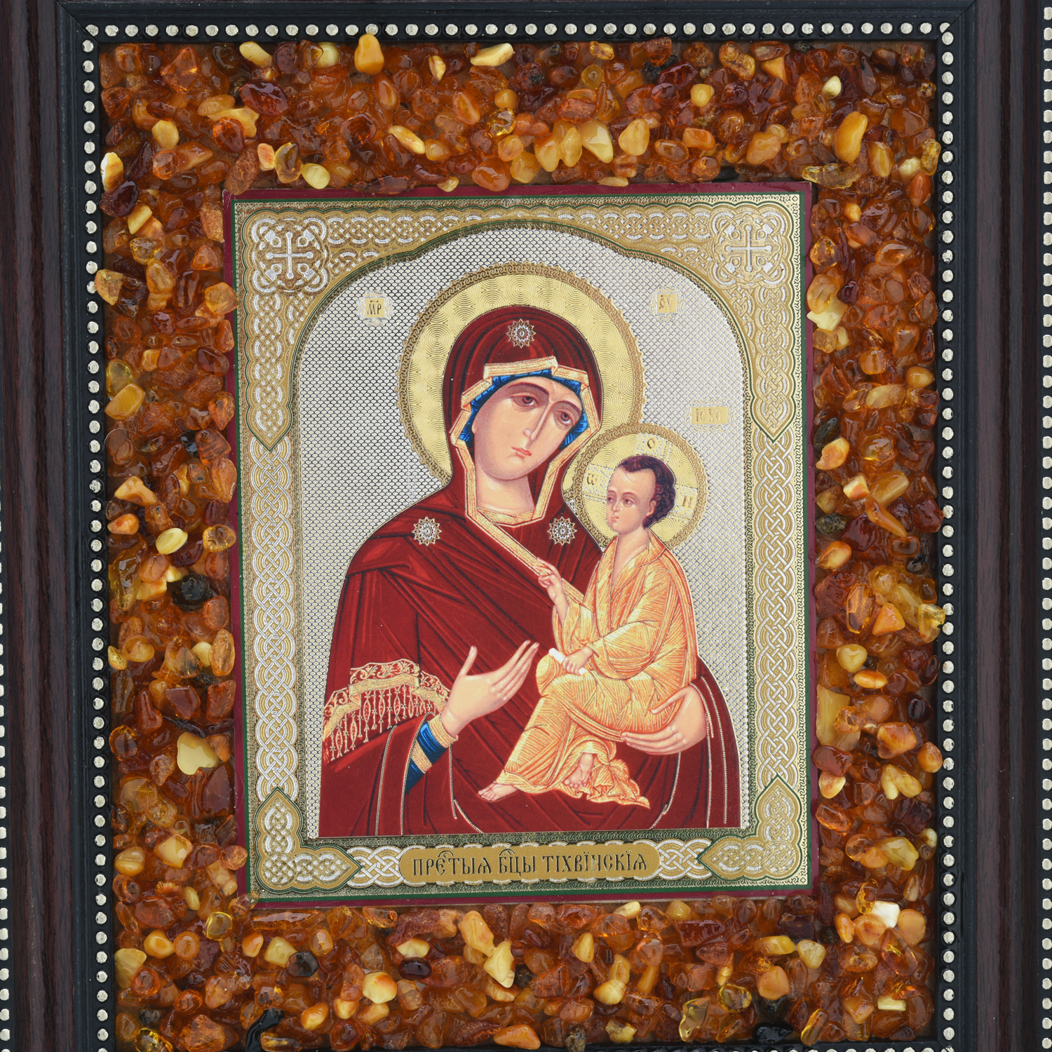 Икона янтарная "Божья Матерь Тихвинская" 22х19 см