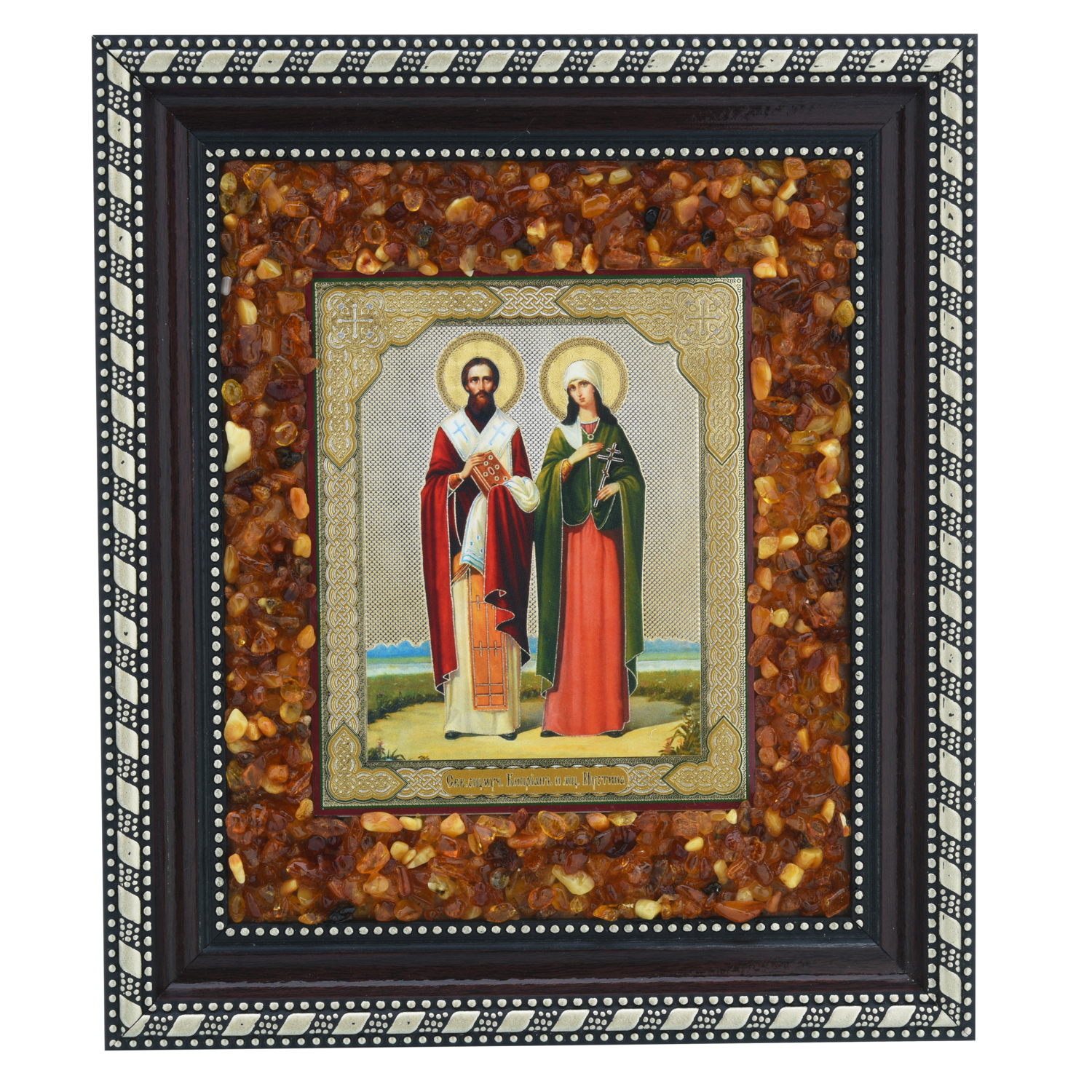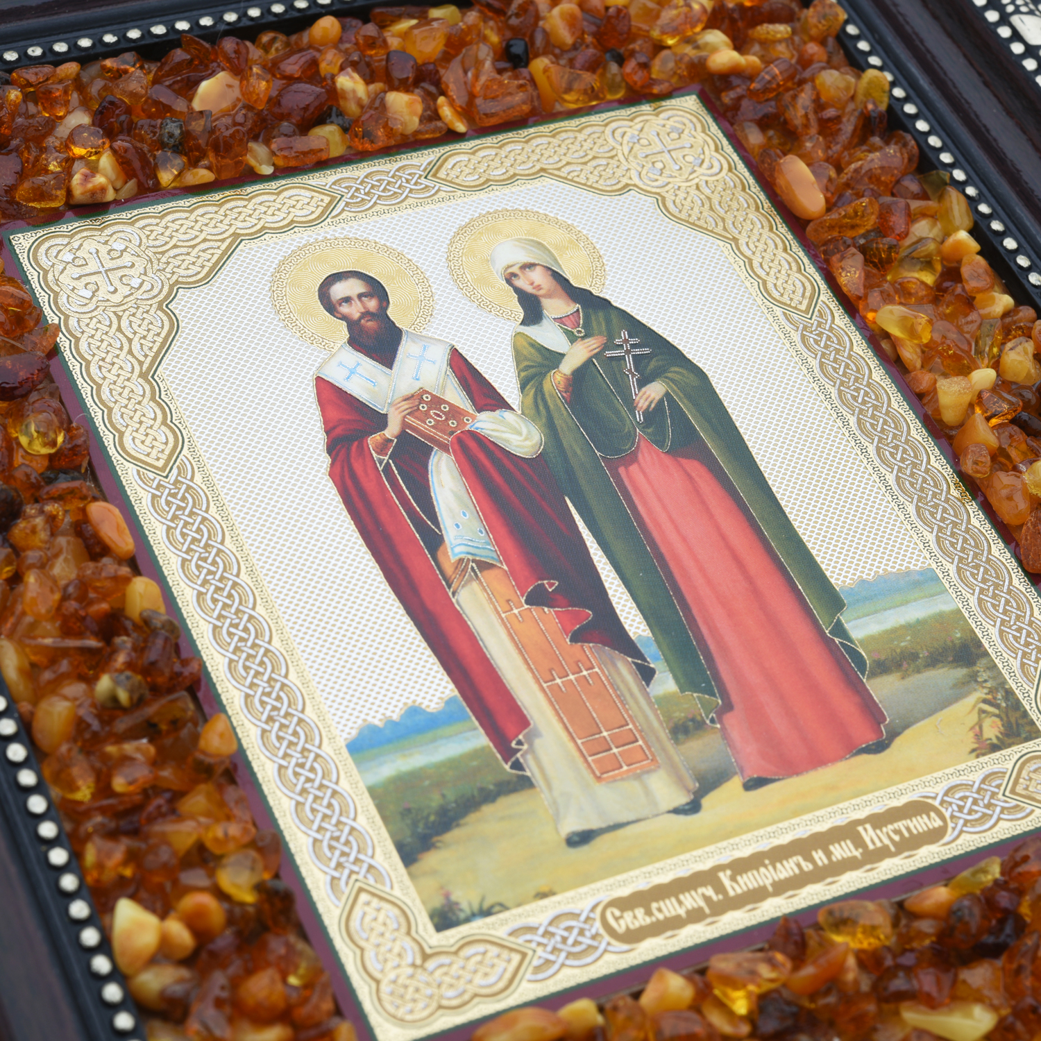 Икона янтарная "Киприан и Иустина" 22х19 см