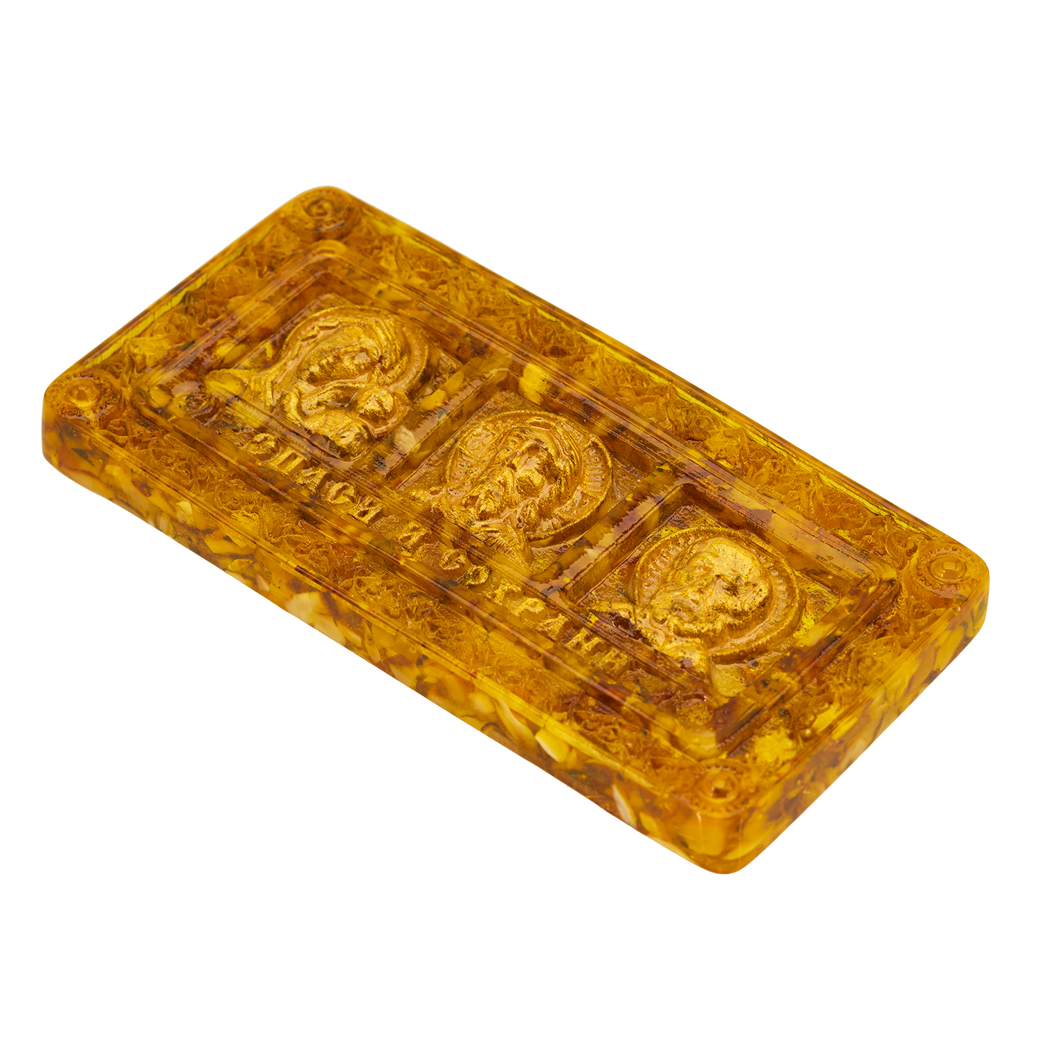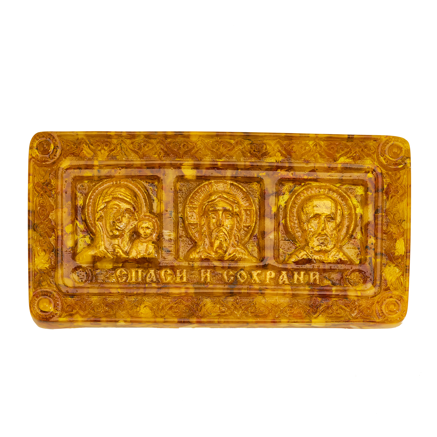 Икона янтарная в машину "Спаси и сохрани" 13,5х7,5 см