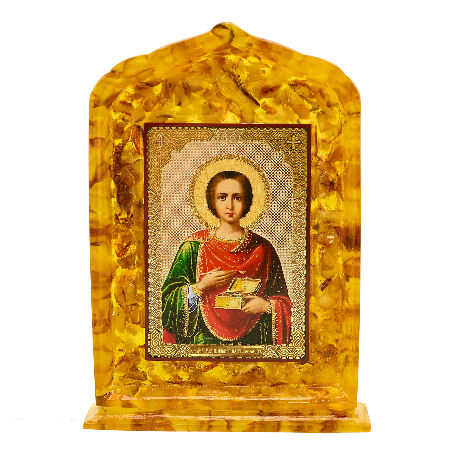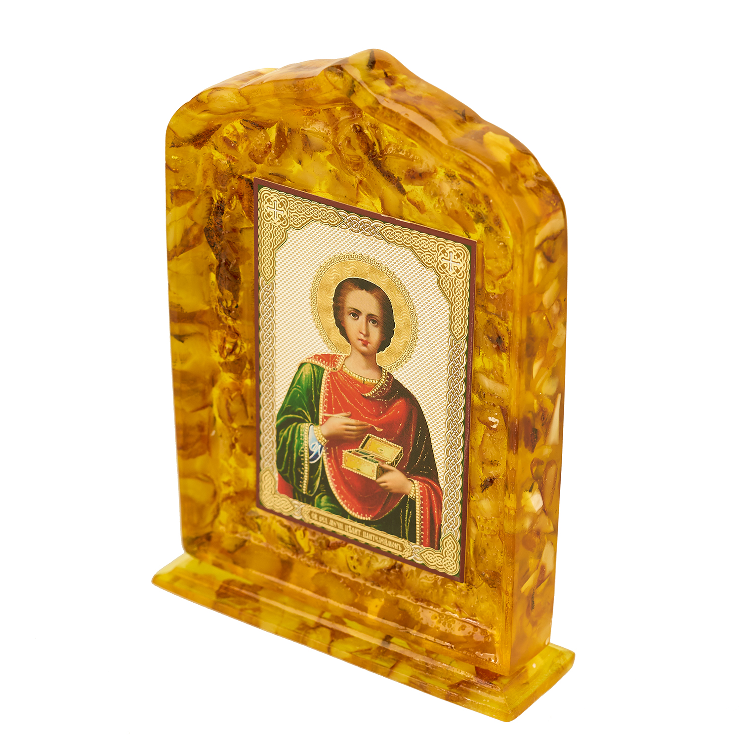 Икона янтарная "Святой Пантелеймон" 10х14,5 см