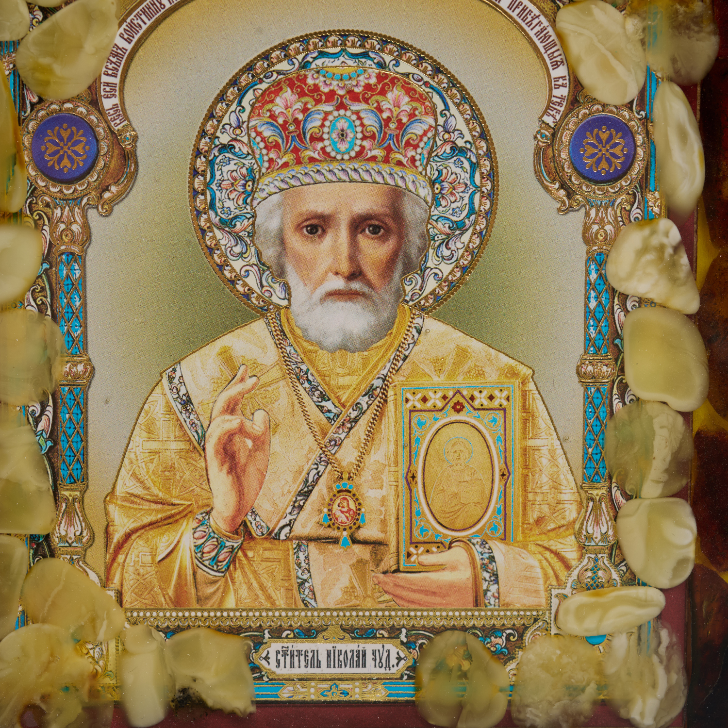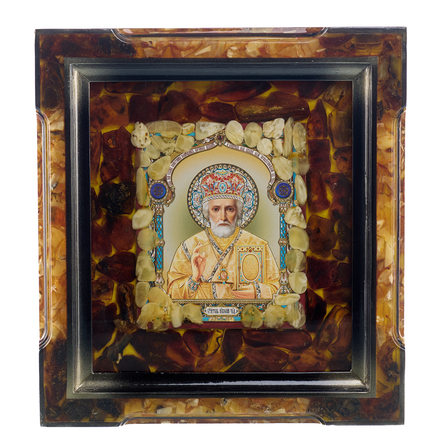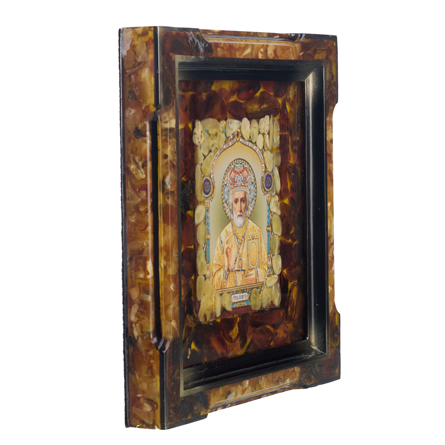 Икона янтарная "Николай Чудотворец" 24х26 см