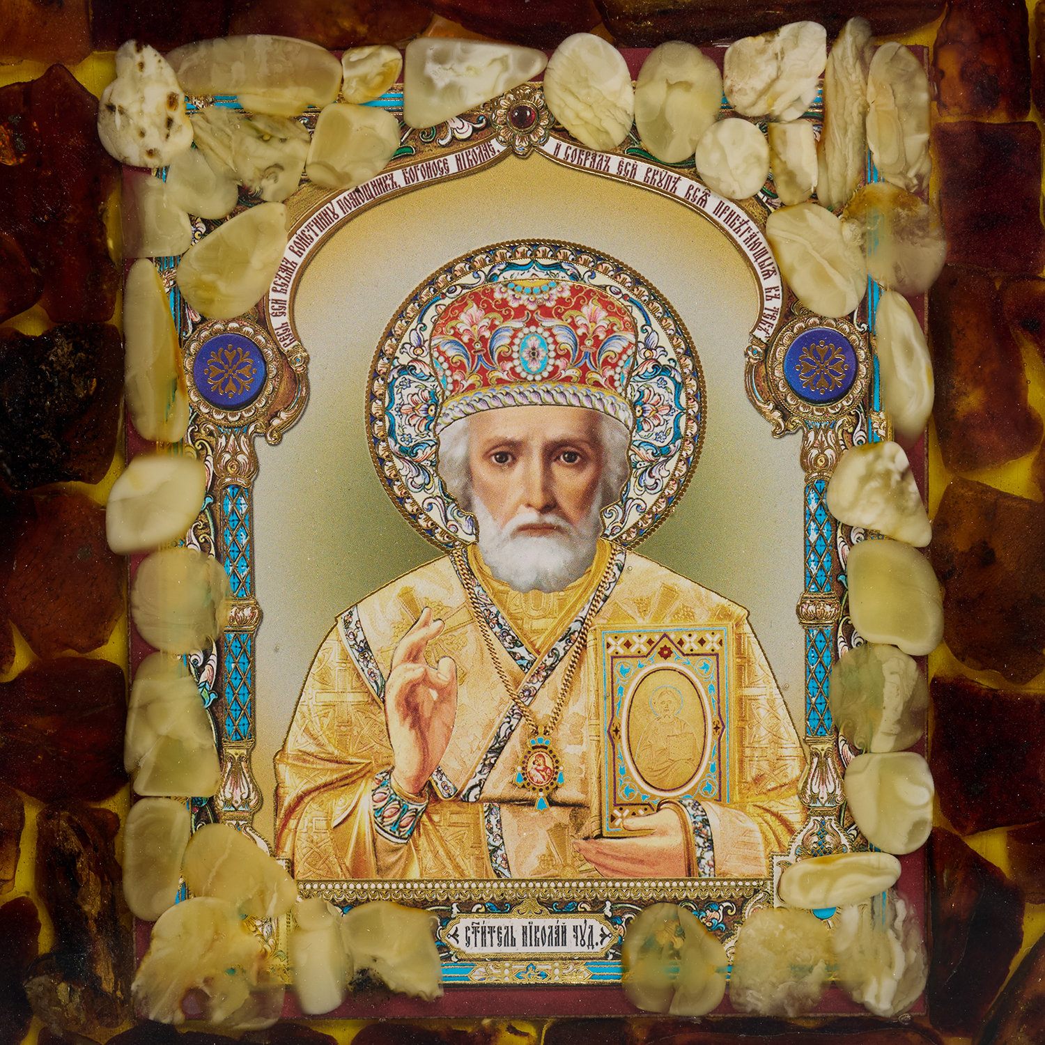 Икона янтарная "Николай Чудотворец".Размер: 240х260 мм