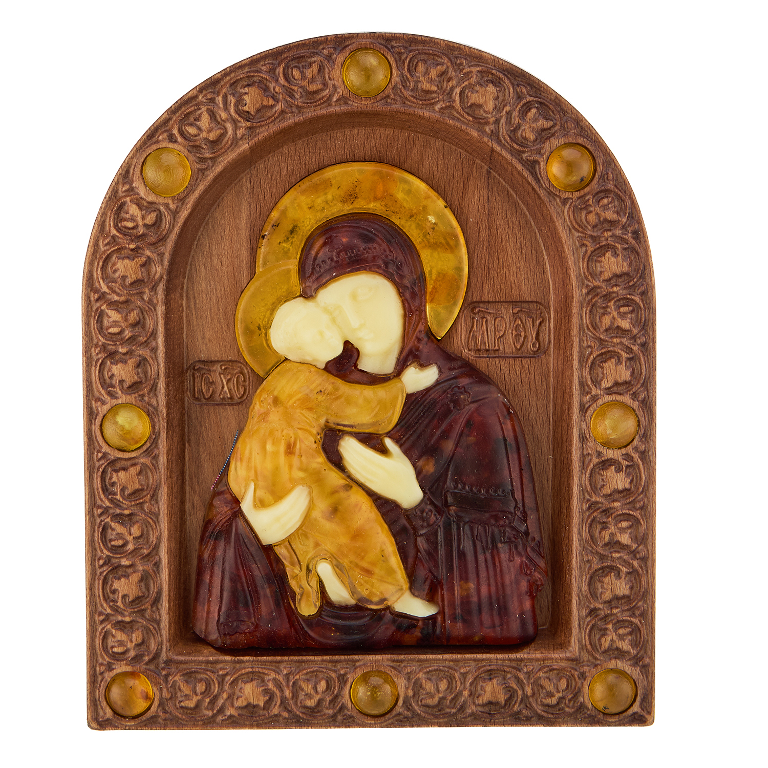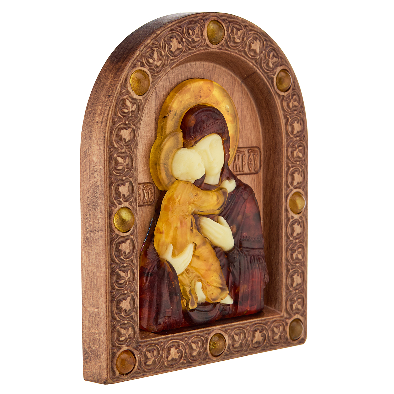Русские подарки и сувениры → Религиозные подарки → Иконы → Икона янтарная "Владимирская Божья Матерь" 13х16 см