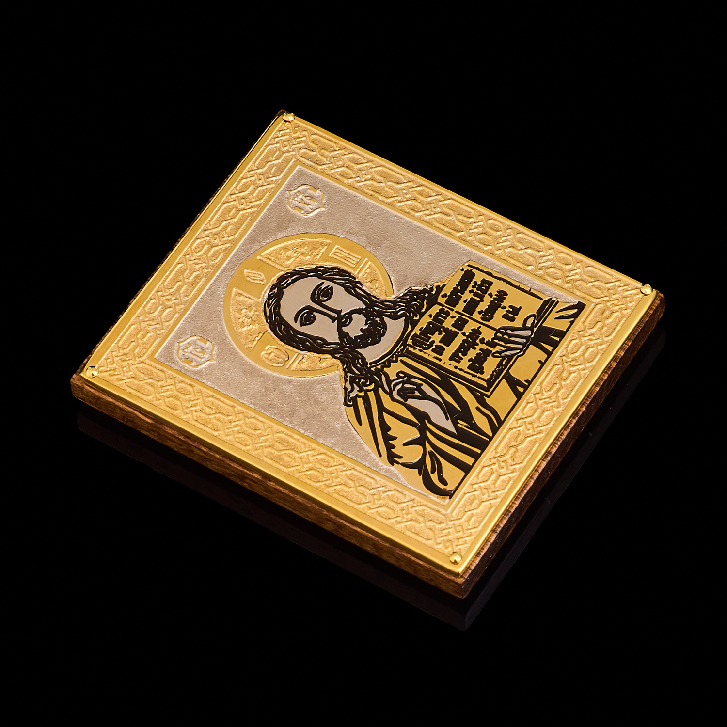 Русские подарки и сувениры → Религиозные подарки → Иконы → Икона с позолотой и эмалью "Иисус Христос". Златоуст 6,5х5,5 см