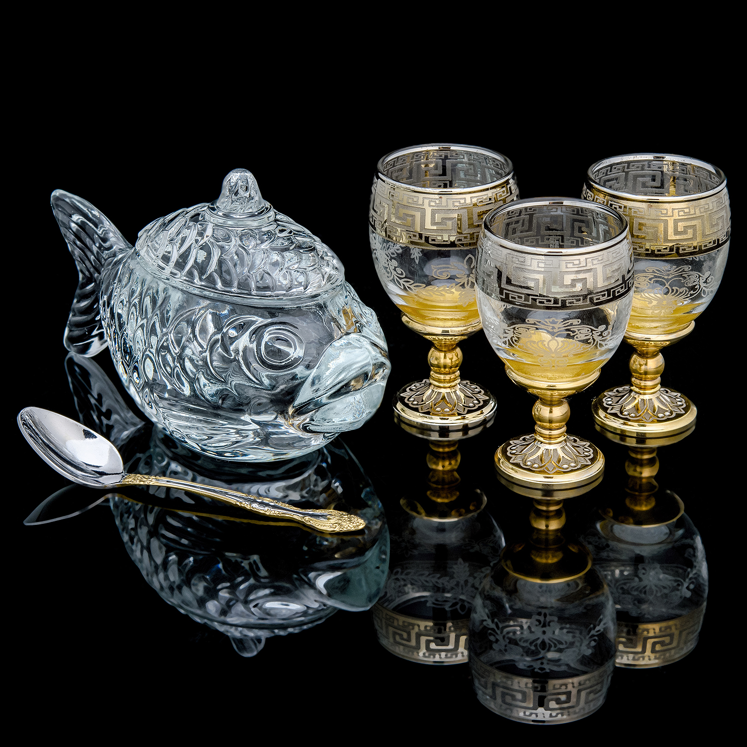 Набор с икорницей и стопками "Инь-Янь". Златоуст