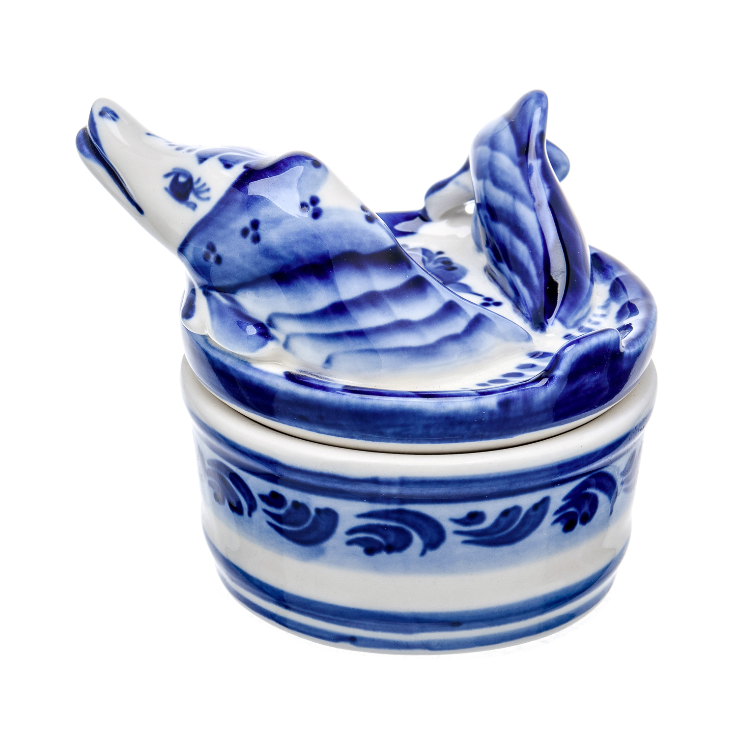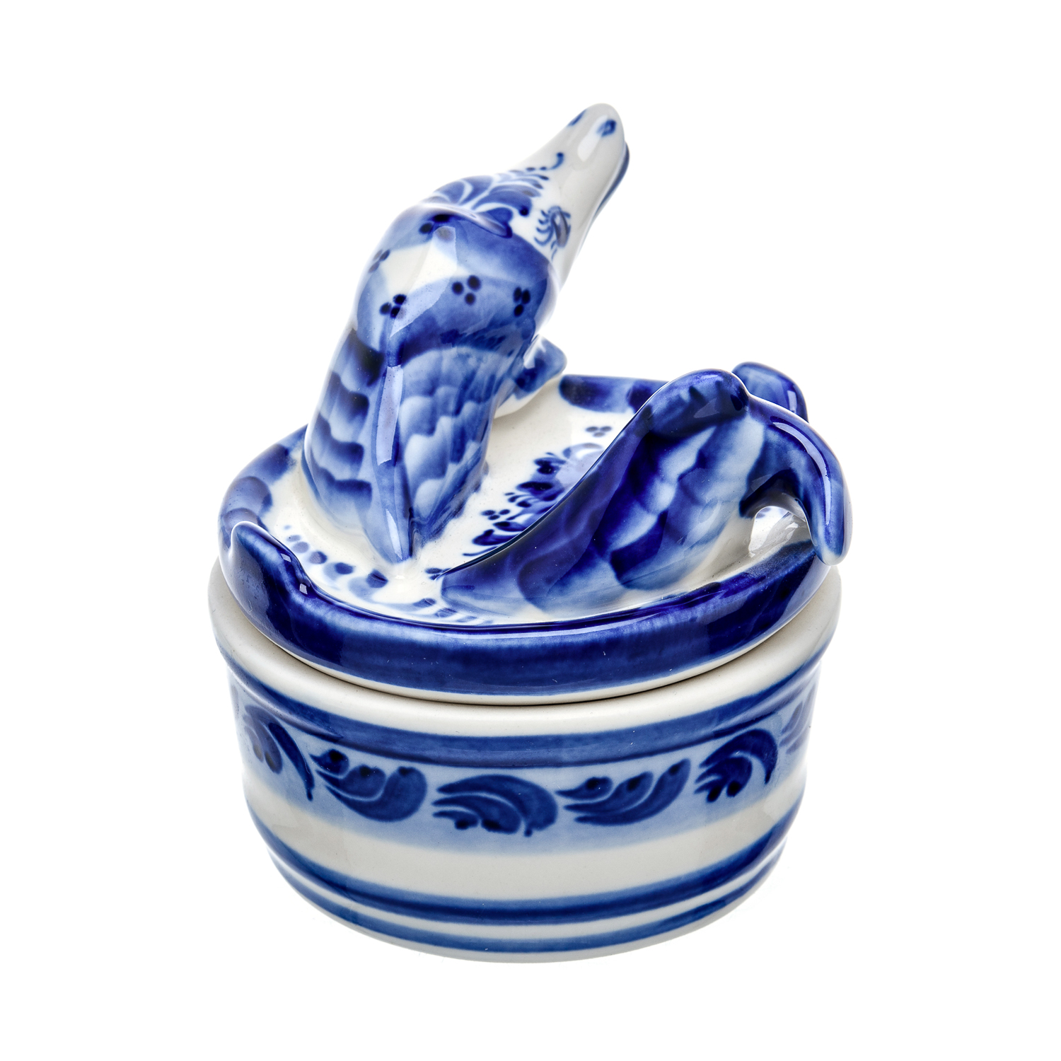 0063356 Гжель ИКОРНИЦА "ЩУКА"  в кобальте