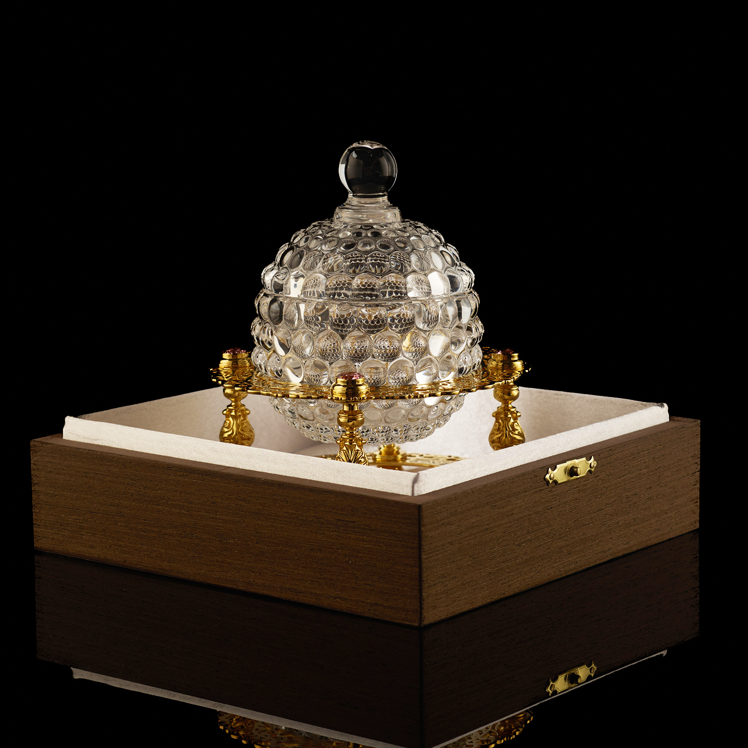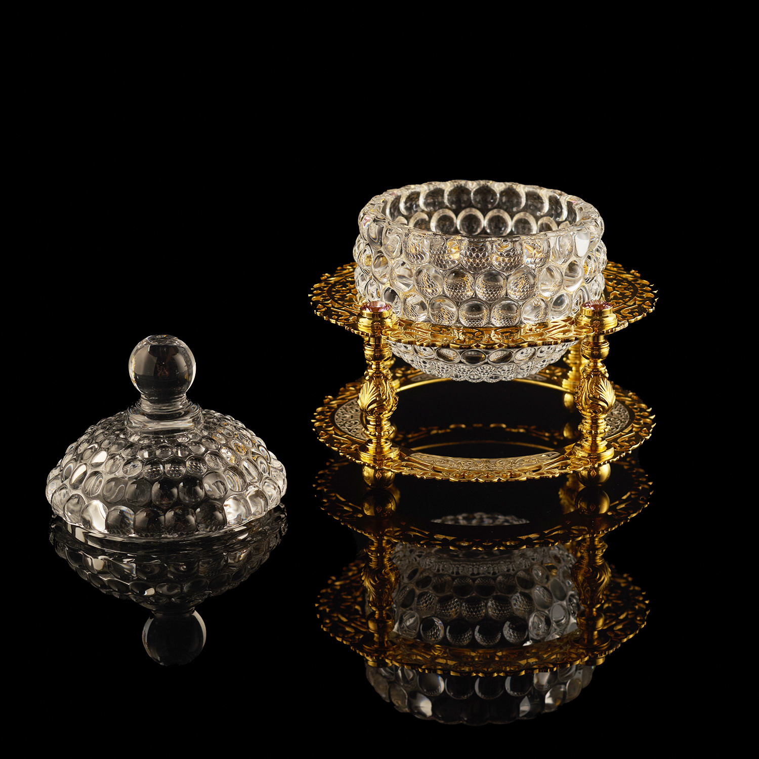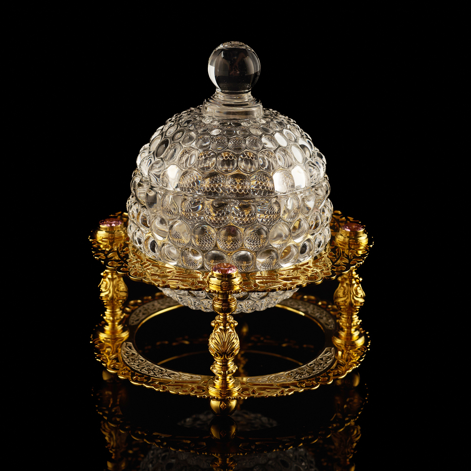 Икорница "Хрустальная". Златоуст.Материалы: латунь, никель, золото 999,9*, хрусталь, фианиты.