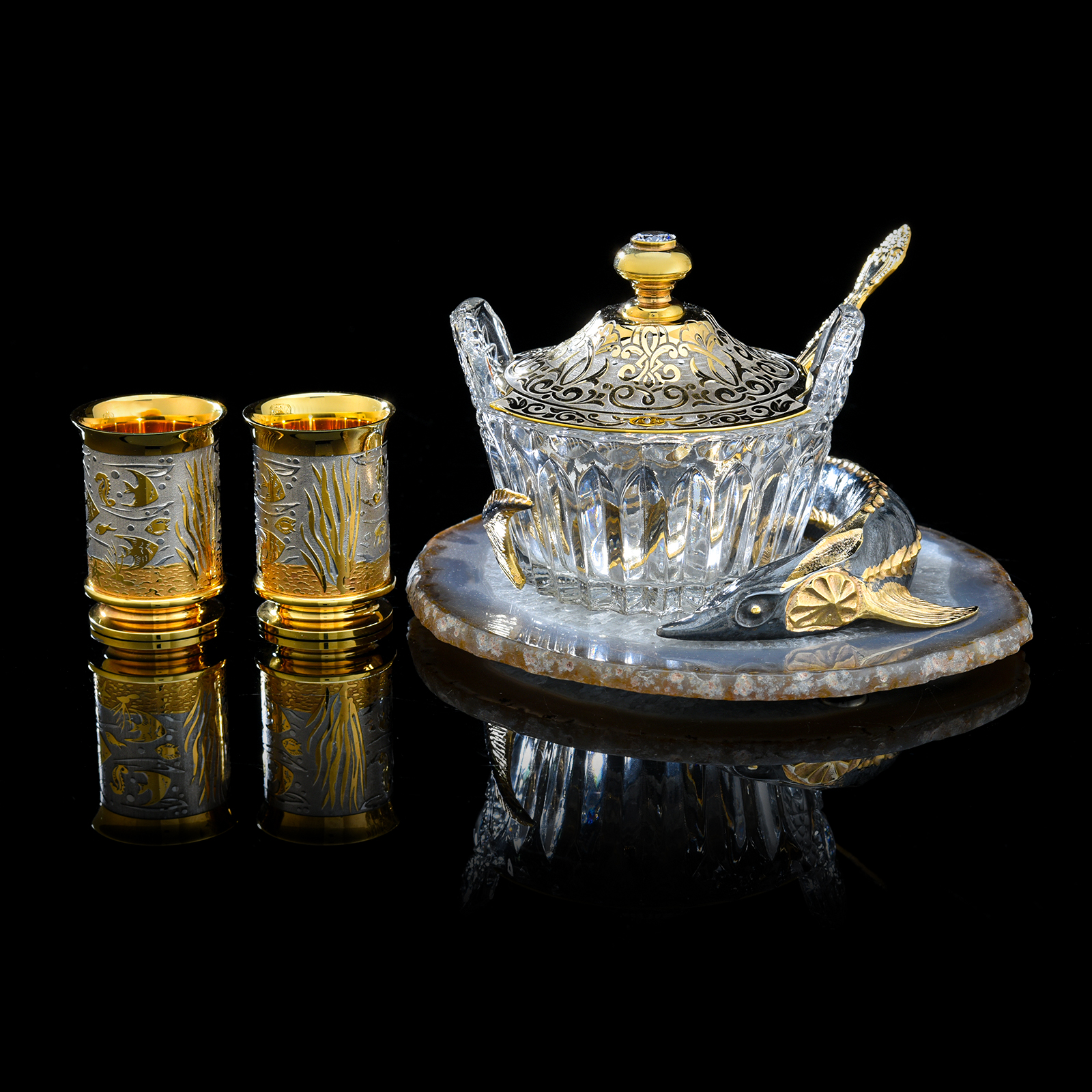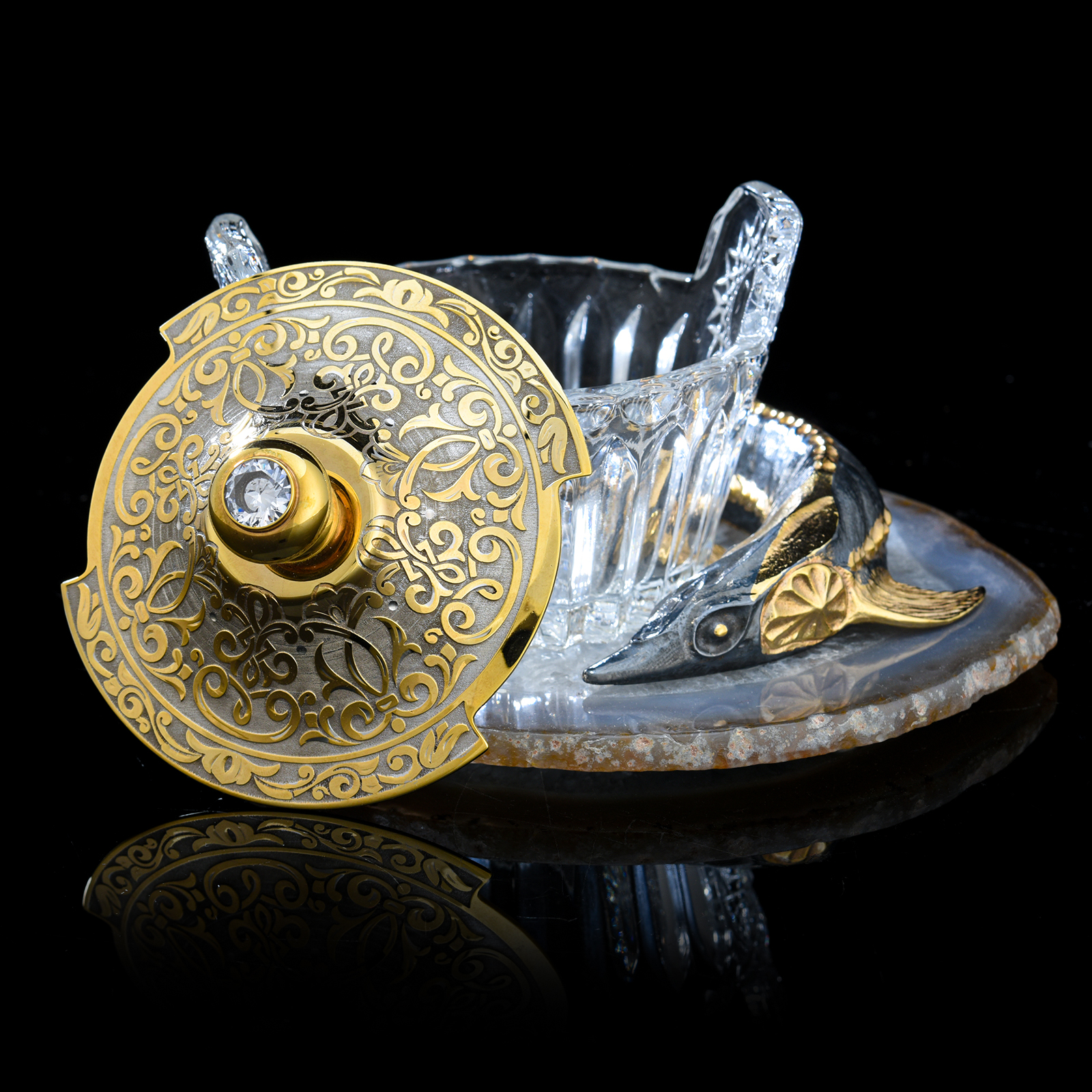 Материалы: латунь, никель, золото 999,9*, хрусталь, агат, фианит.