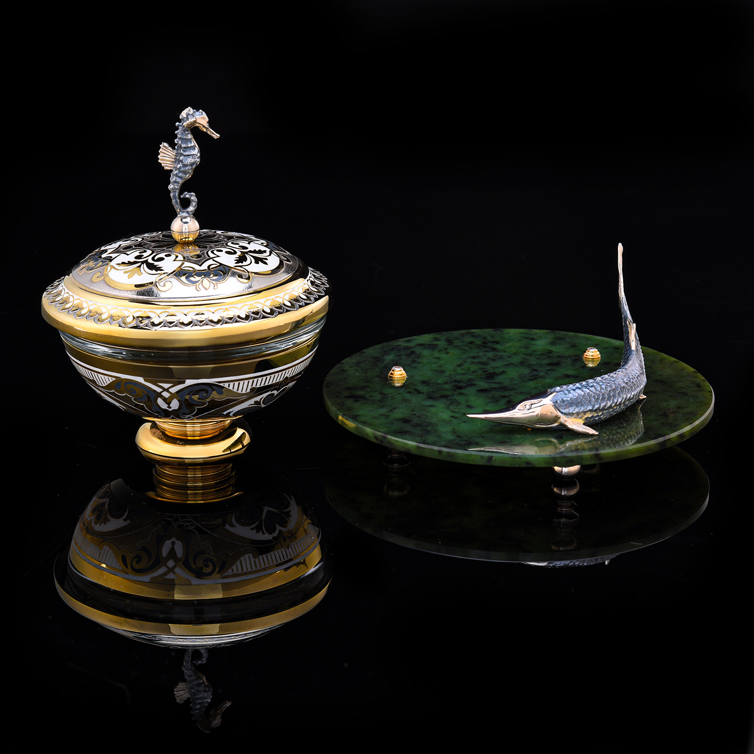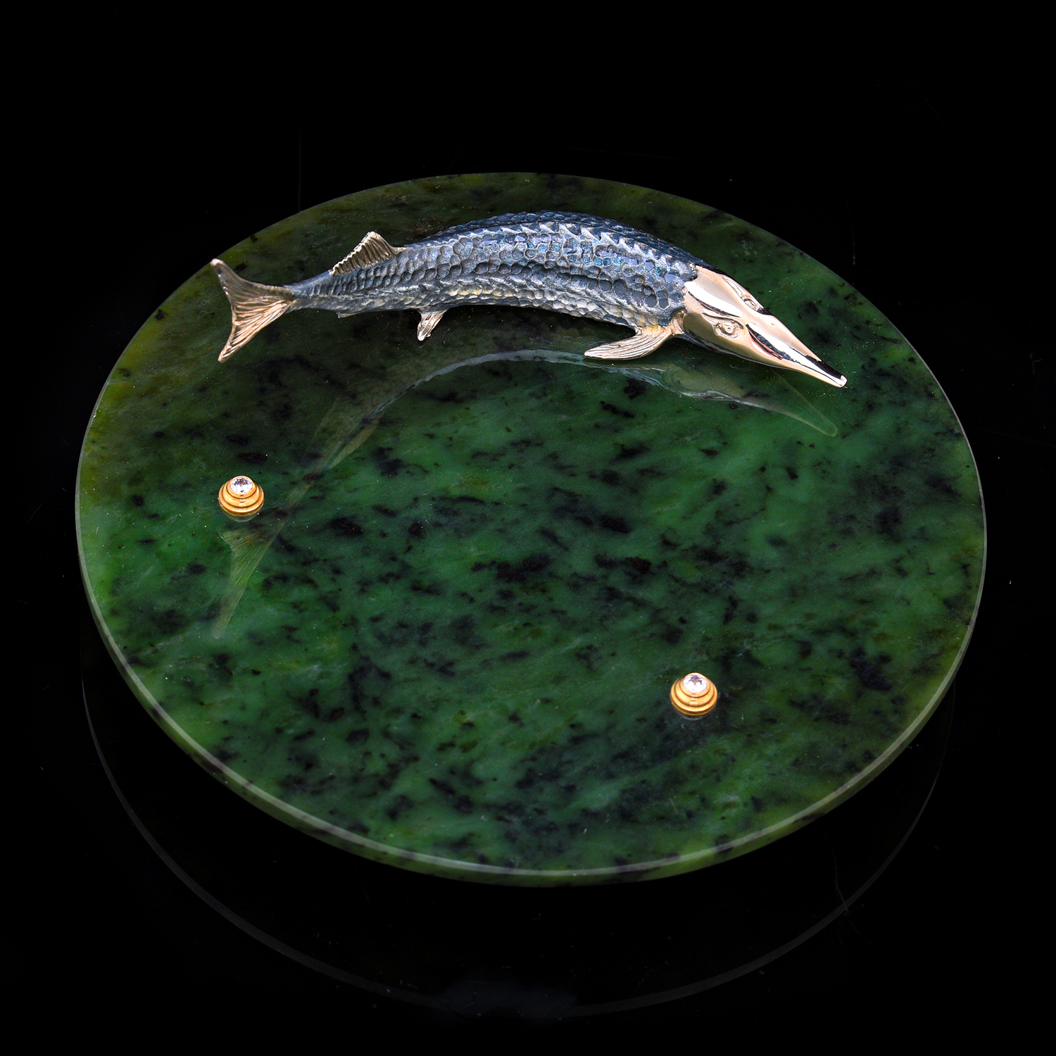 Материалы: латунь, никель, золото 999,9*, хрусталь, нефрит.