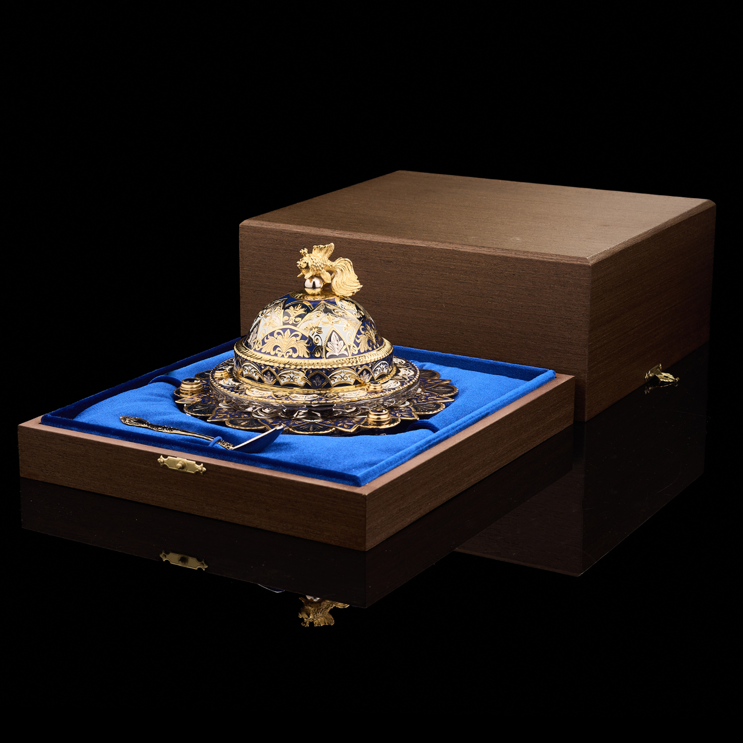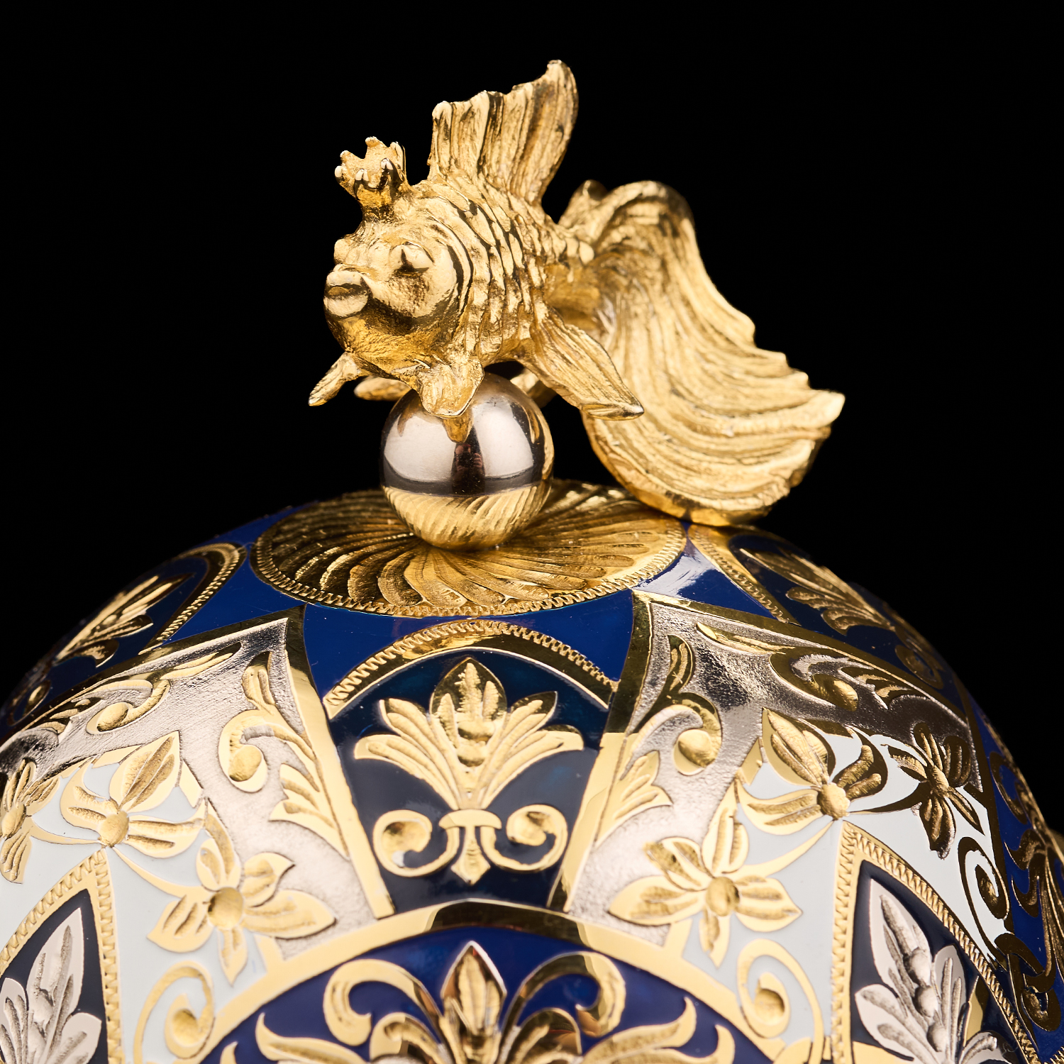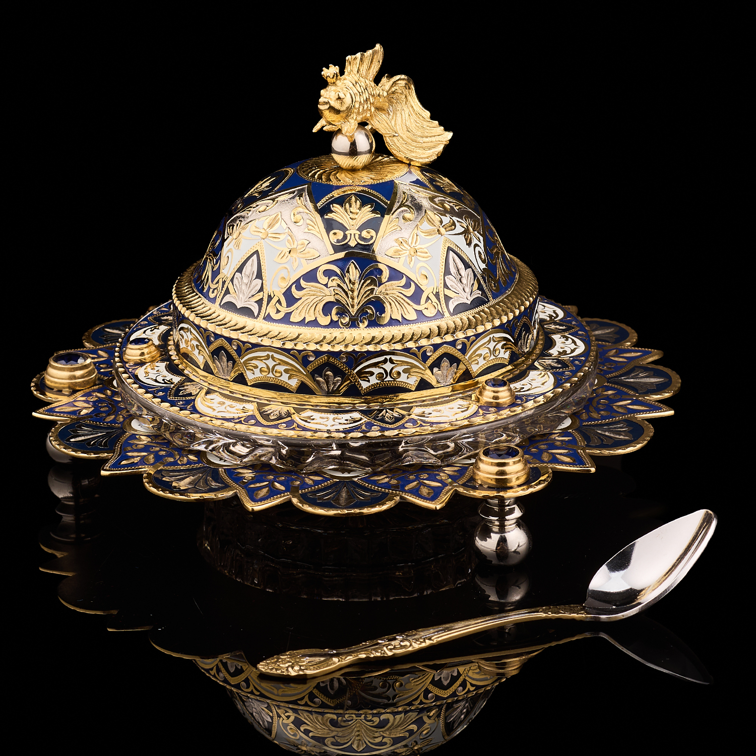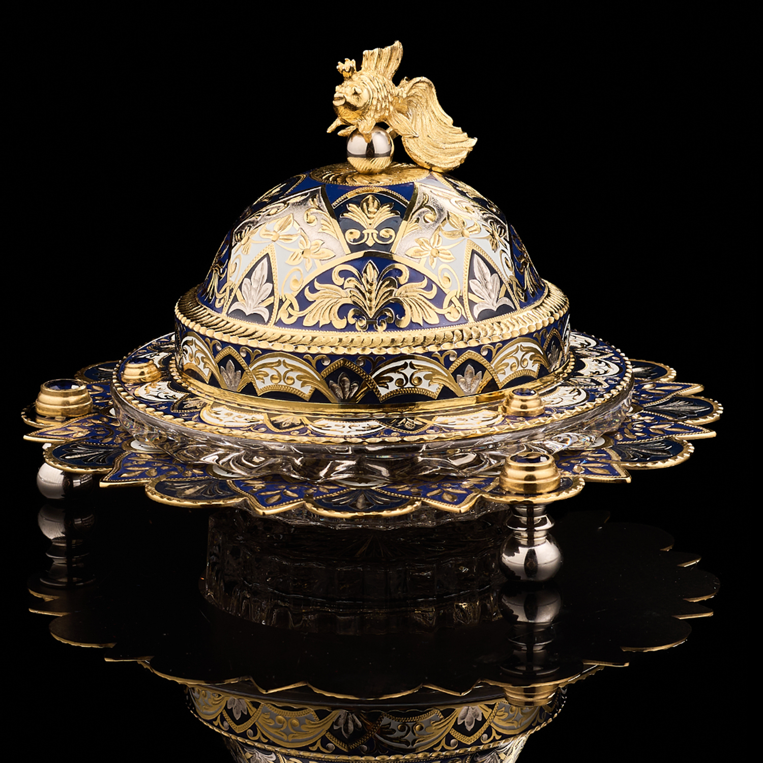 Икорница ажурная с позолотой и эмалью "Рыбка". Златоуст