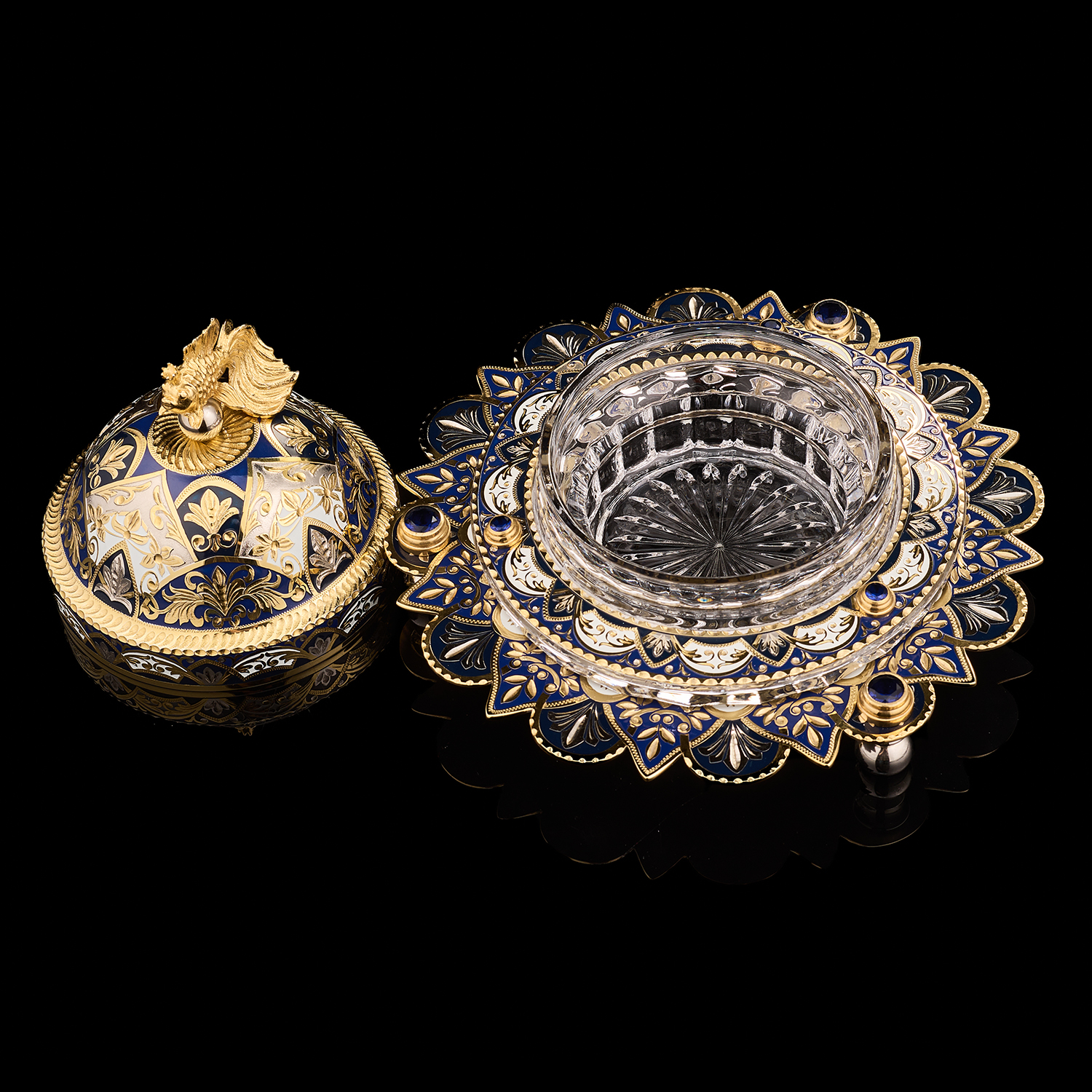 Материалы: латунь, никель, золото 999,9*, эмаль, хрусталь.