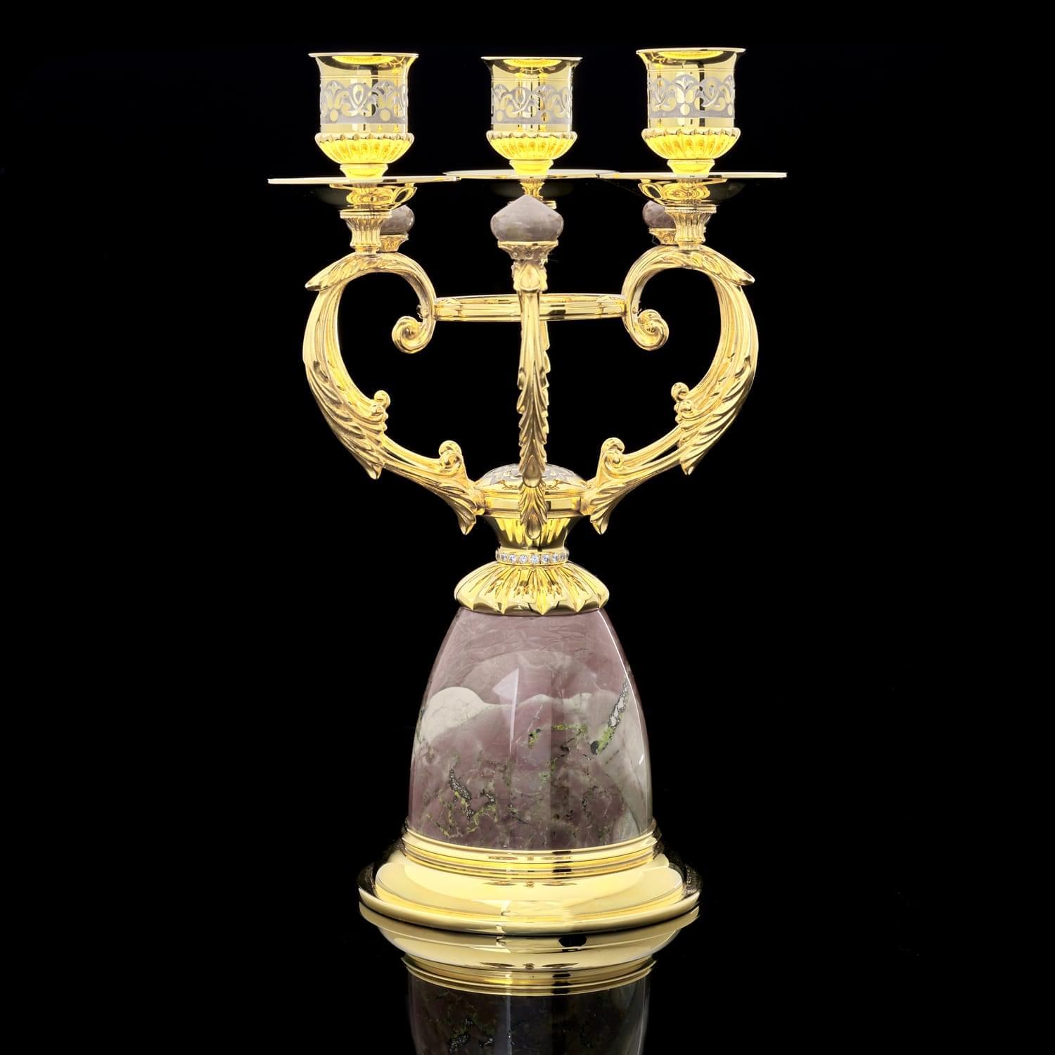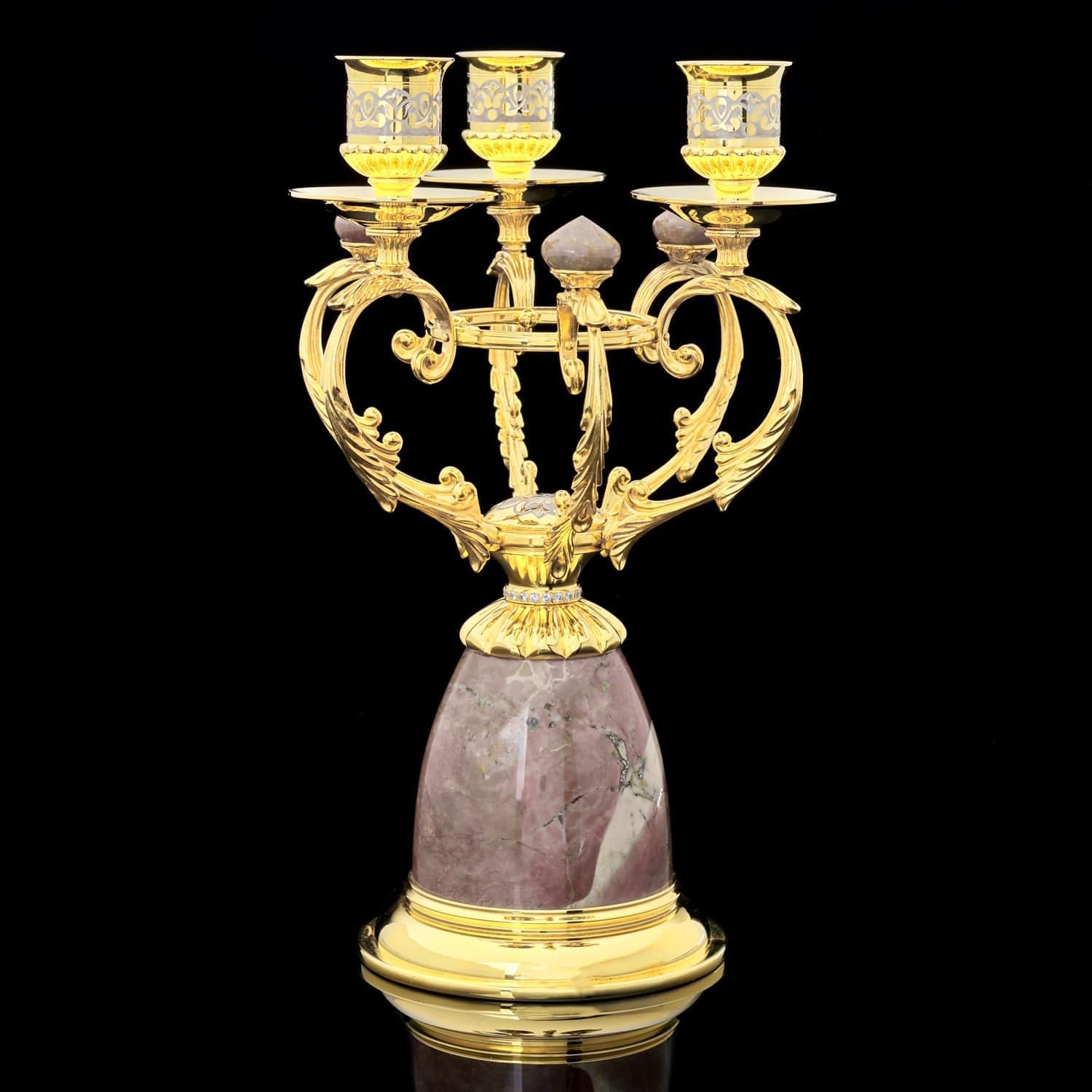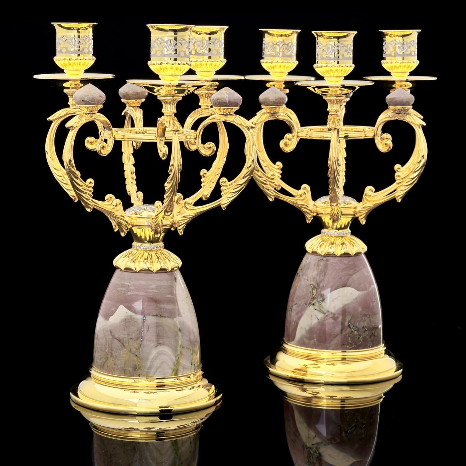 Часы каминные из яшмы и бронзы с двумя 3-х рожковыми канделябрами. Златоуст