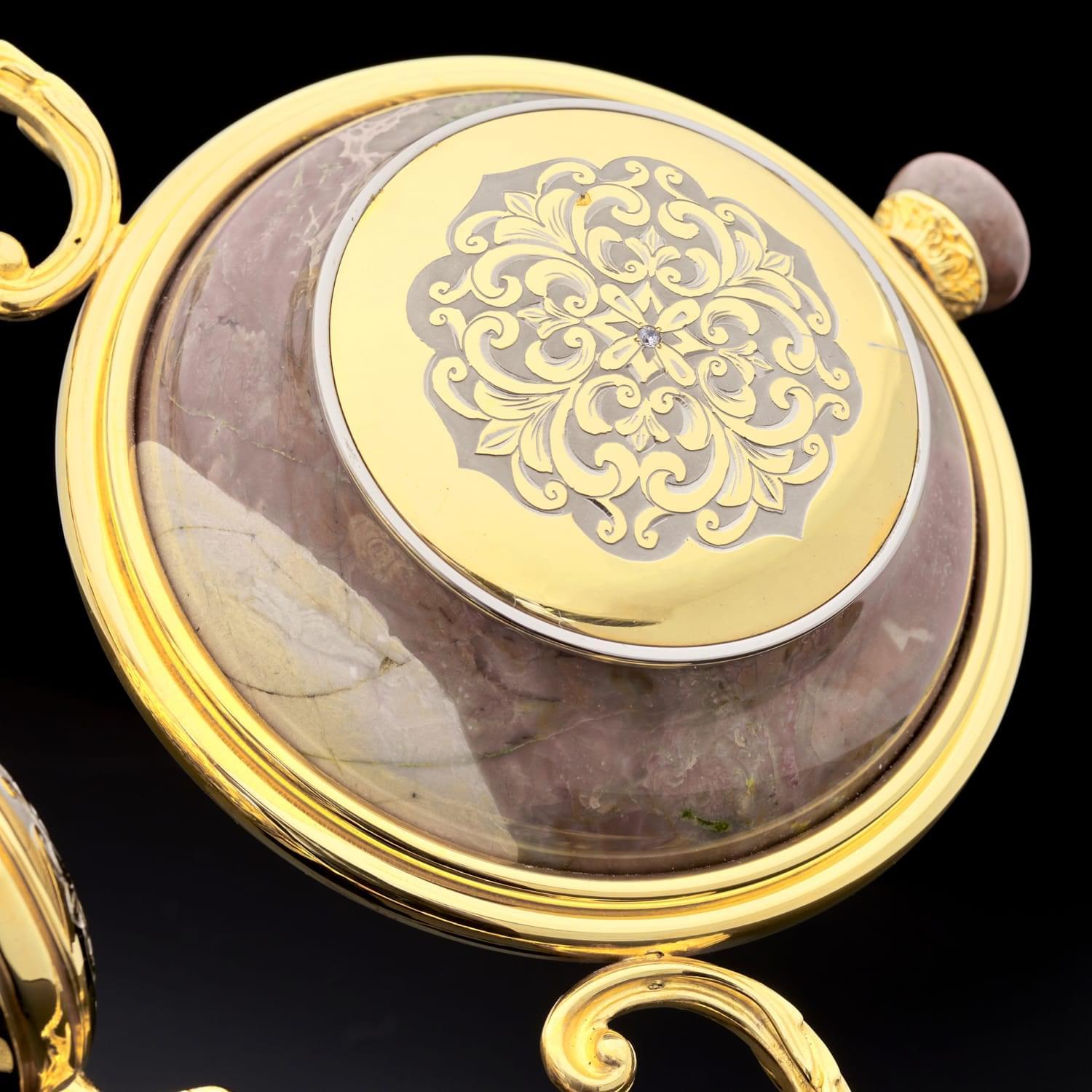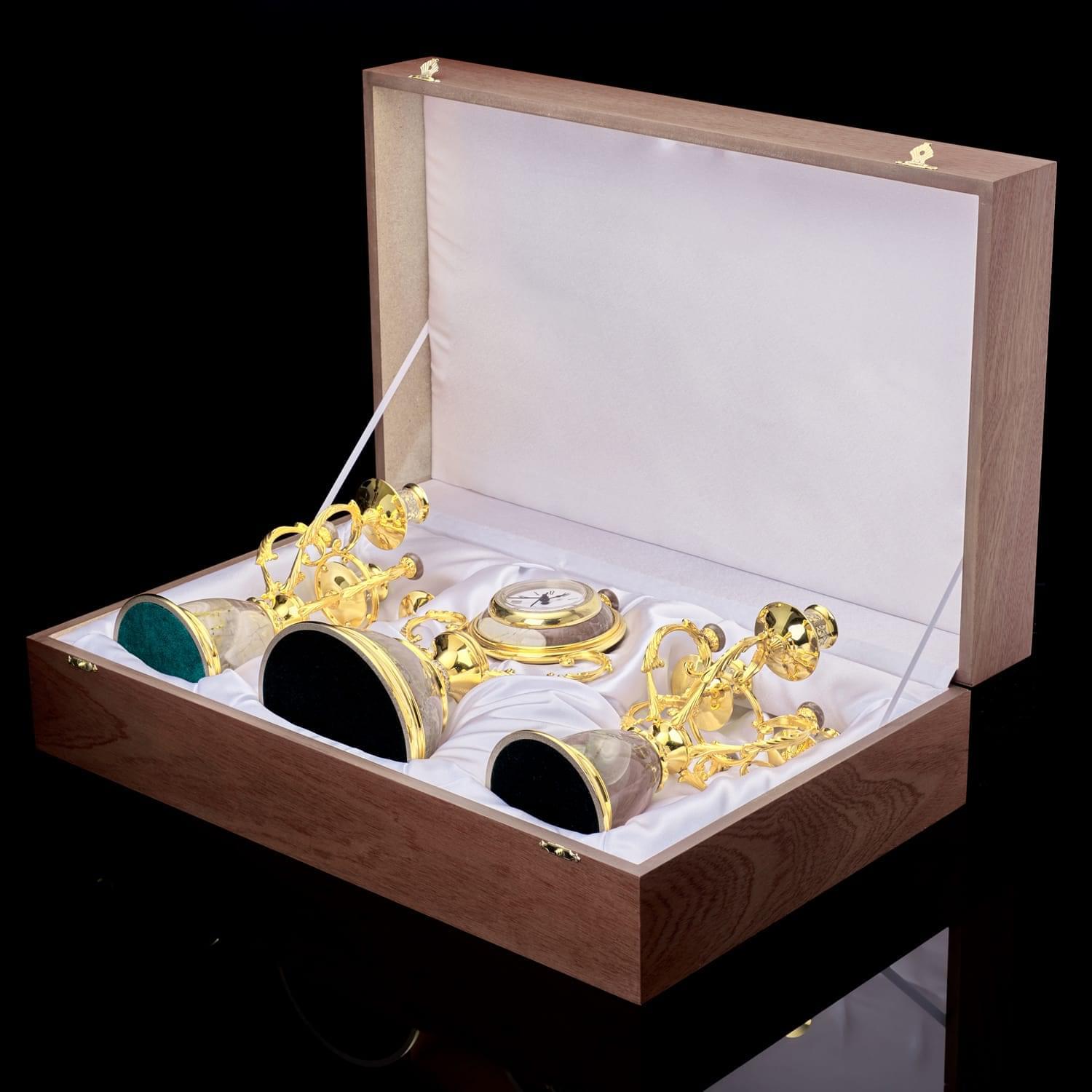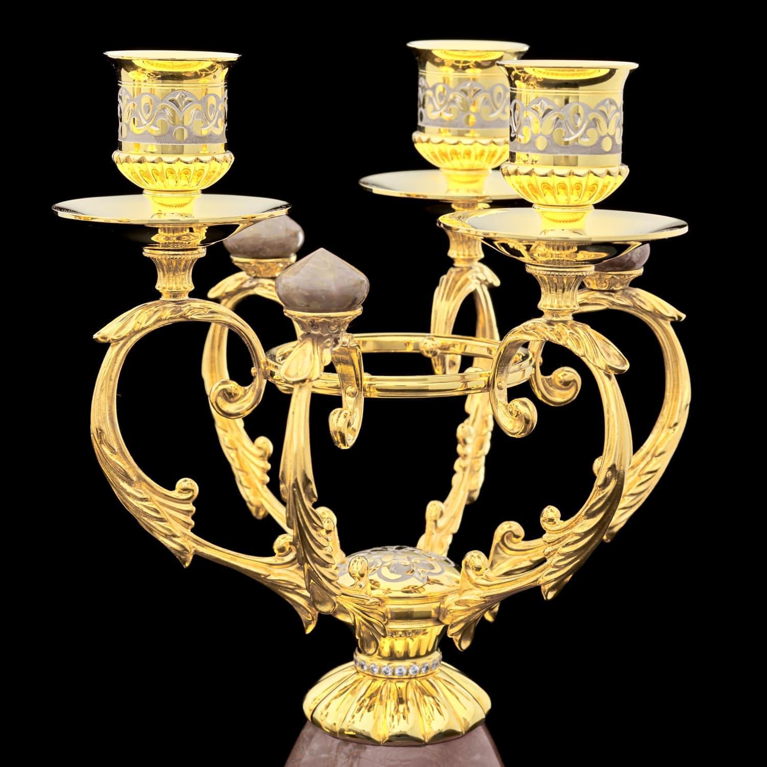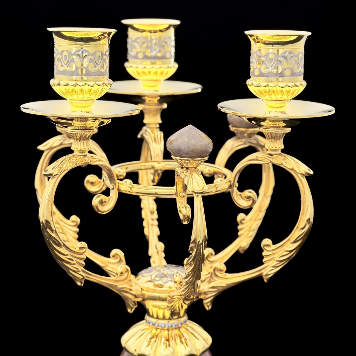 Часы каминные из яшмы и бронзы с двумя 3-х рожковыми канделябрами. Златоуст