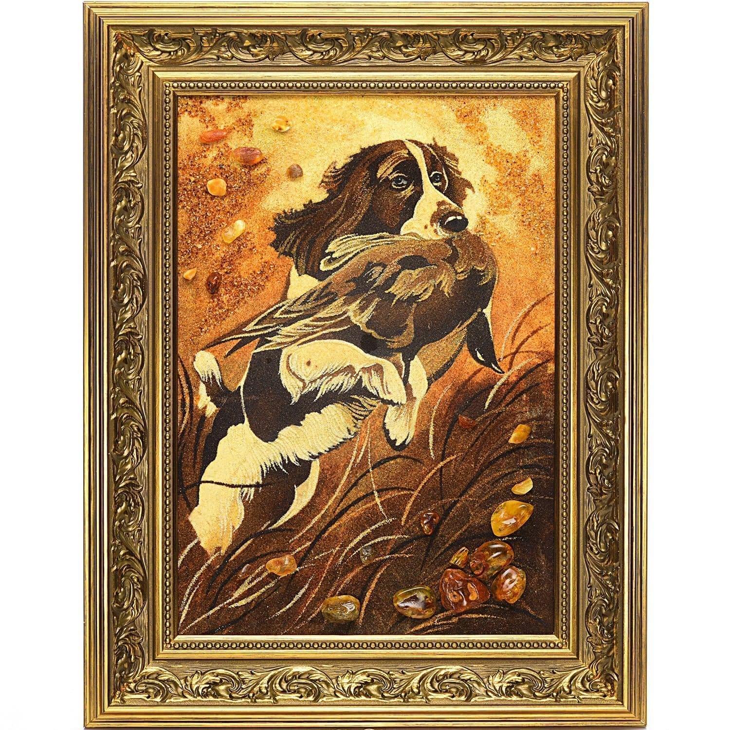 Трогательная и динамичная композиция с образом охотничьего пса в багете - просто чудо! Вашему вниманию - традиционный элемент декора в необыкновенной, авторской интерпретации. Картина декорирована в технике аппликации янтарем и янтарной крошкой. Она создает притягательный акцент в интерьере и место силы.На холсте выложена яркая художественная аппликация из камней и крошек балтийского янтаря - чудодейственного натурального камня, называемого в народе "даром солнца". Природный минерал янтарь является отвердевший за десятки тысяч лет смолой хвойных деревьев. 90% мировых запасов этого природного минерала находится именно на территории нашей страны.