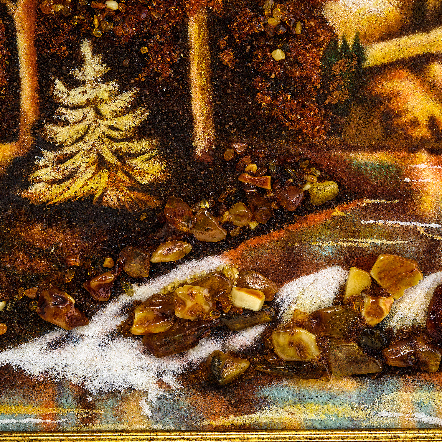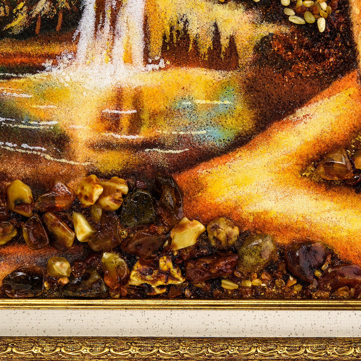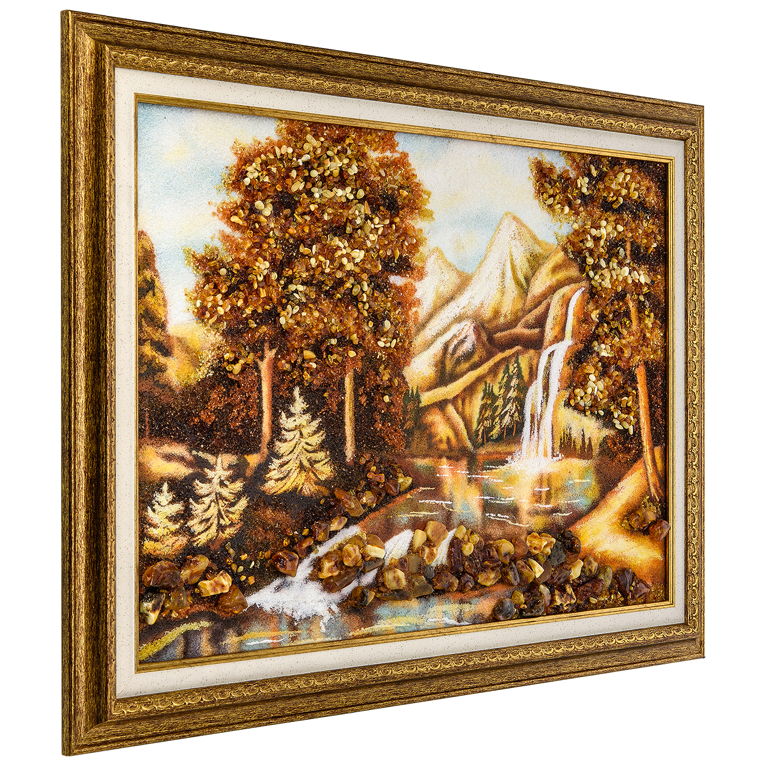Русские подарки и сувениры → Интерьерные изделия → Картины → Картина янтарная "Водопад в лесу" 60х40 см