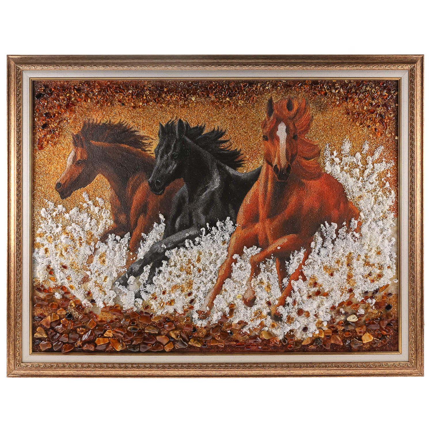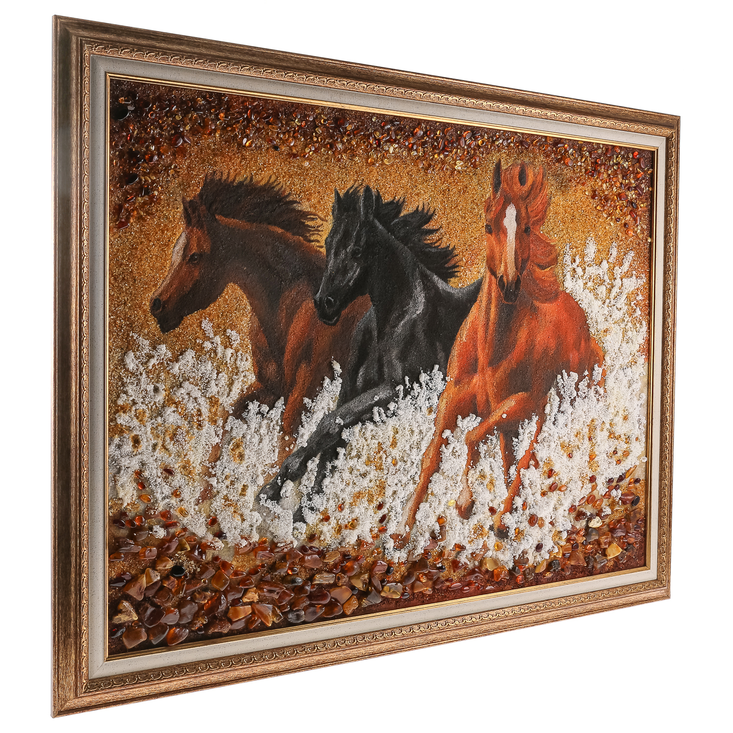 Картина янтарная "Лошади, бегущие по воде" 100х80 см
