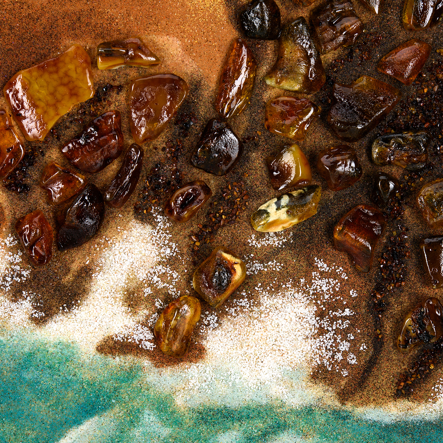 Картина янтарная "Шторм".Материалы: холст, краски, янтарь, деревянный багет.