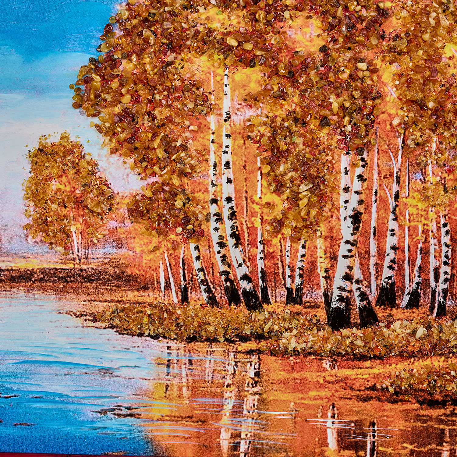 Картина янтарная "Пейзаж".Размер холста: 600х290 мм