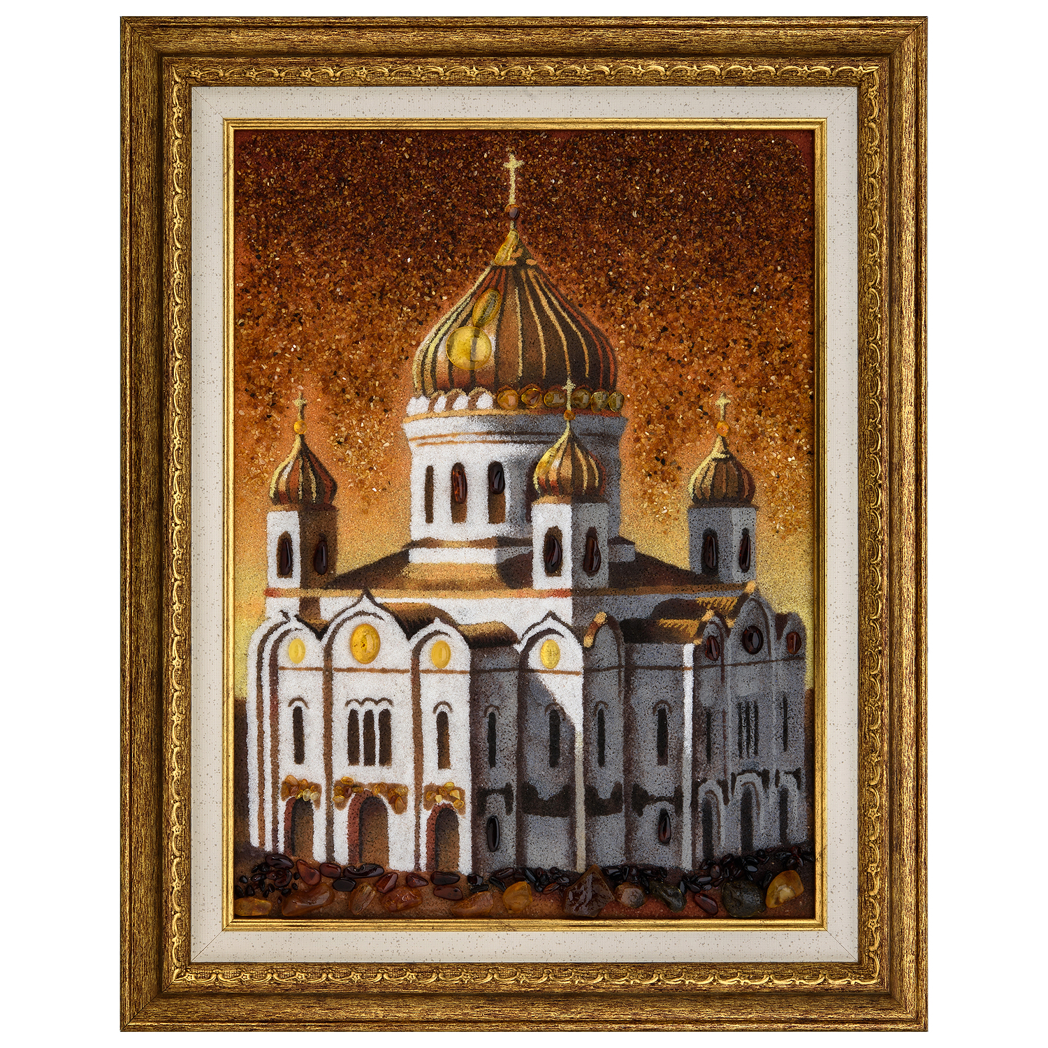 Картина янтарная "Храм Христа Спасителя" 30х40 см