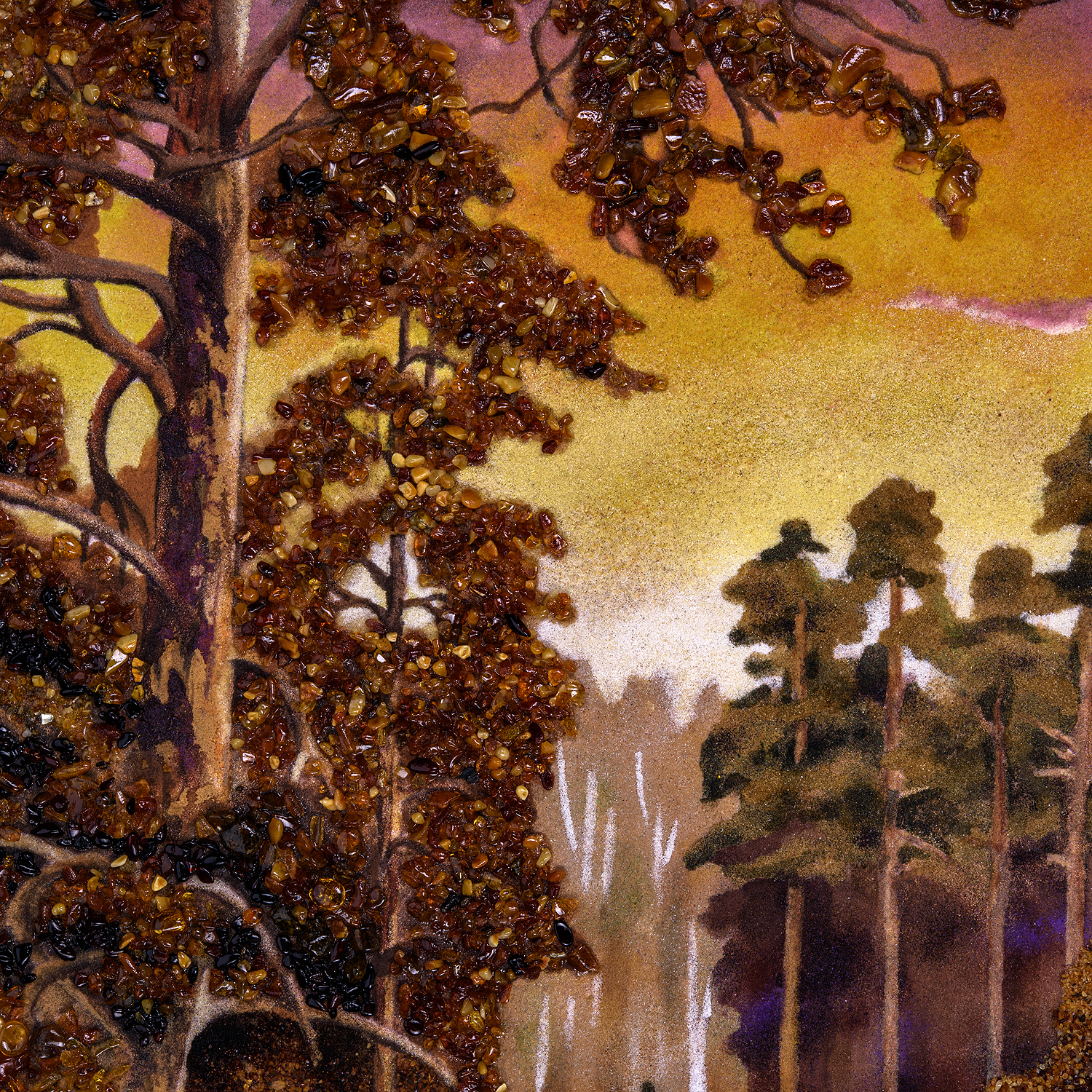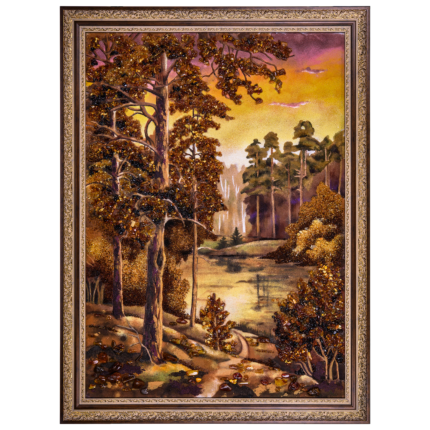 Русские подарки и сувениры → Интерьерные изделия → Картины → Картина янтарная "У лесного озера" 60х80 см