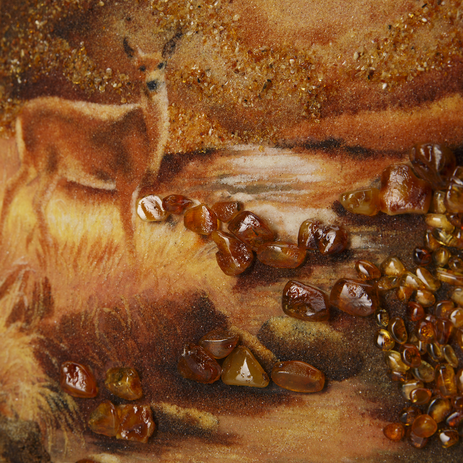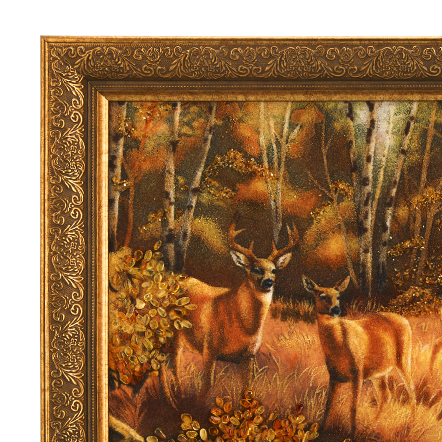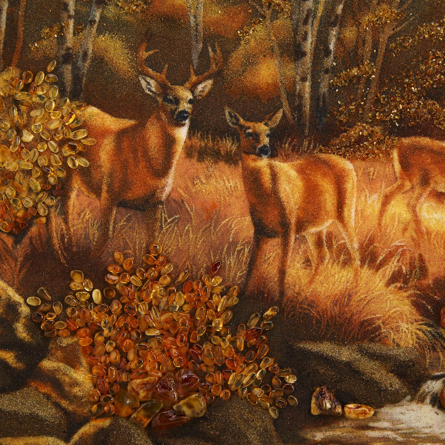 Картина янтарная "Олени в лесу".