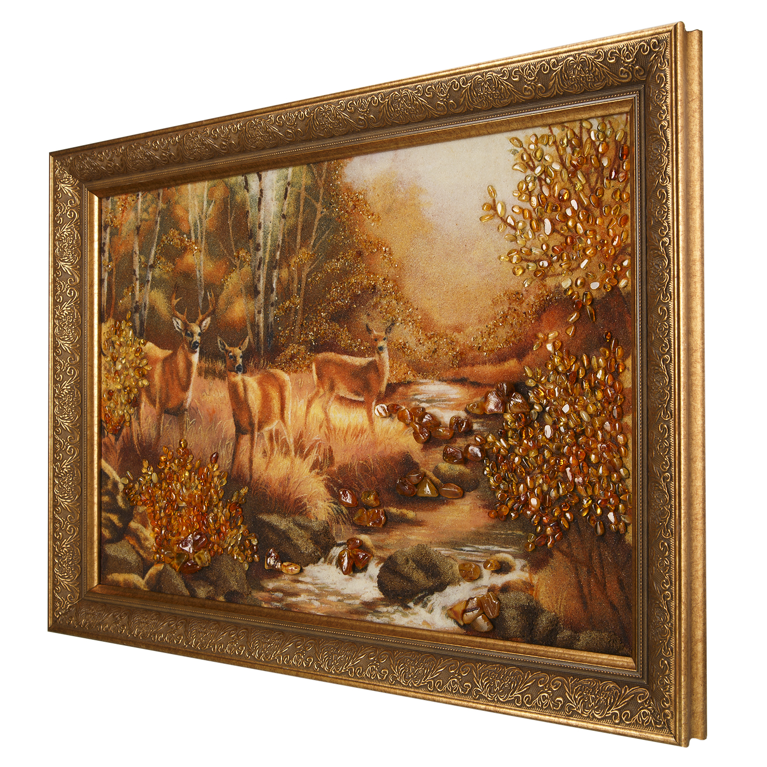 Картина янтарная "Олени в лесу" 60х40 см