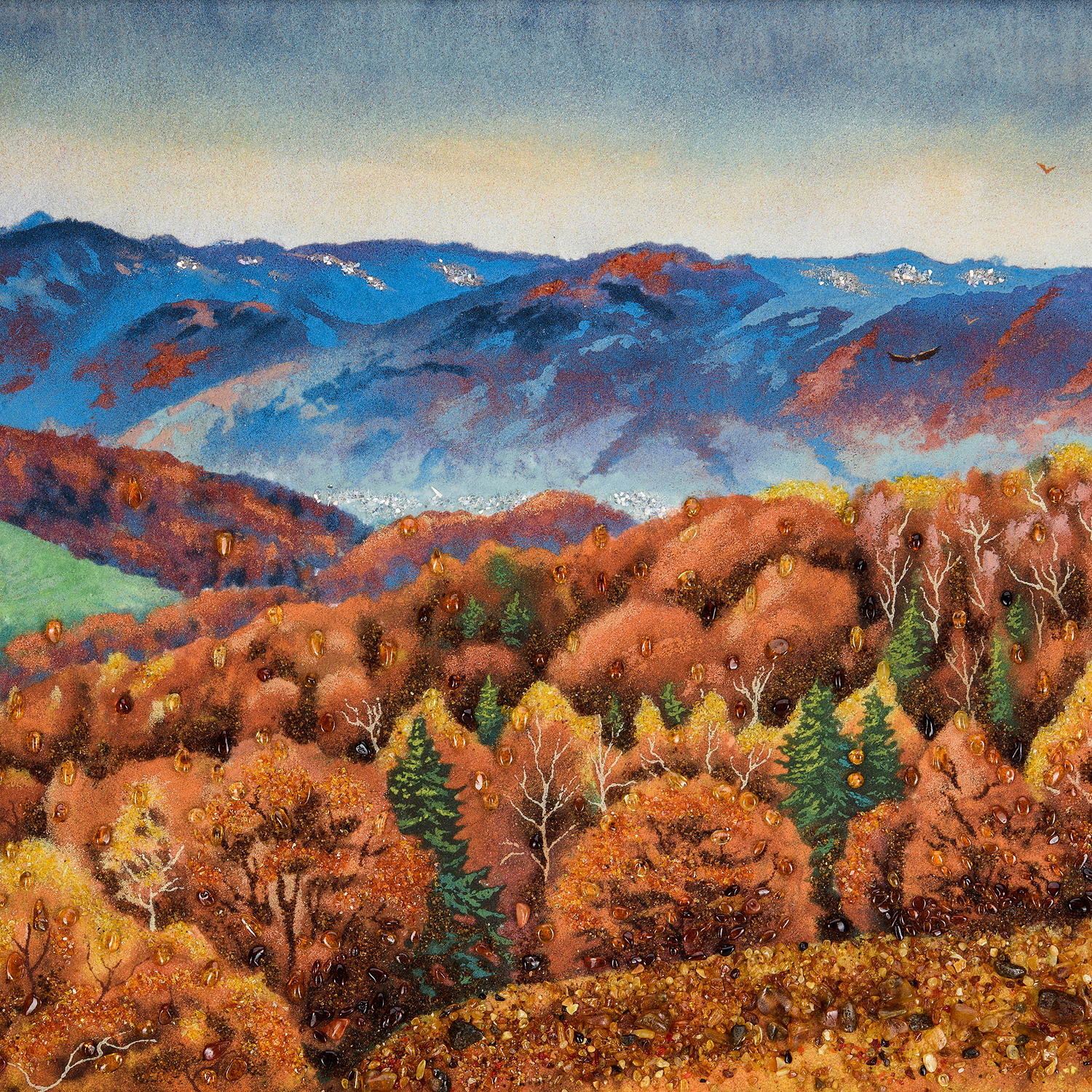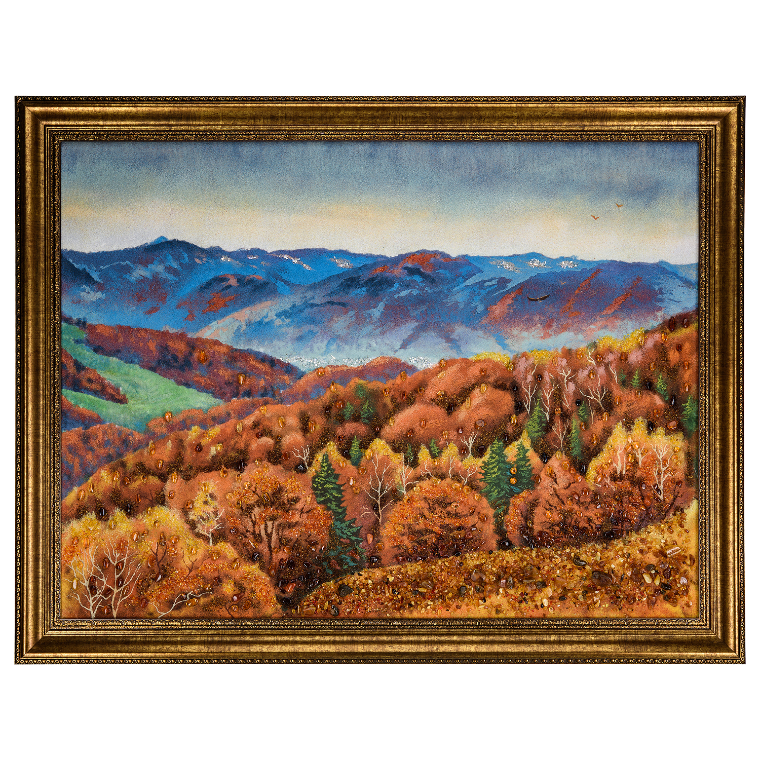 Картина янтарная "Полет над осенним лесом" 60х80 см
