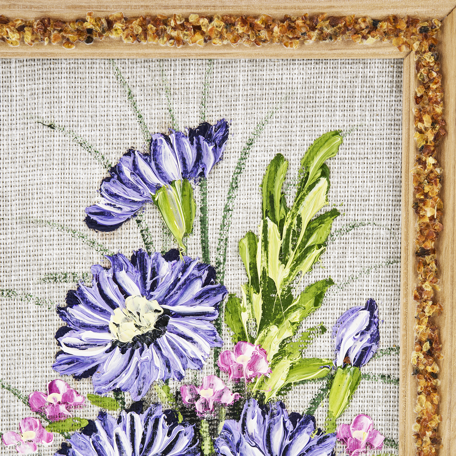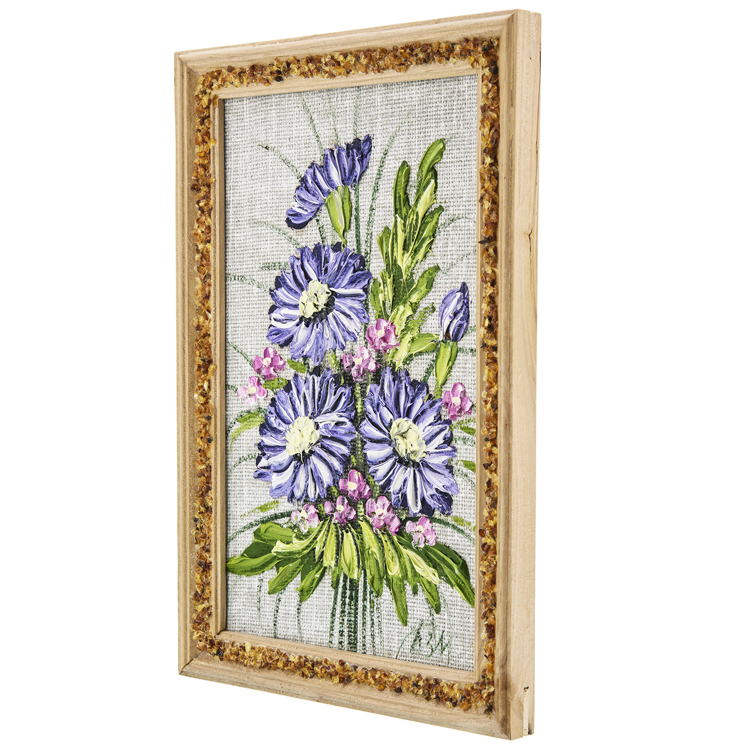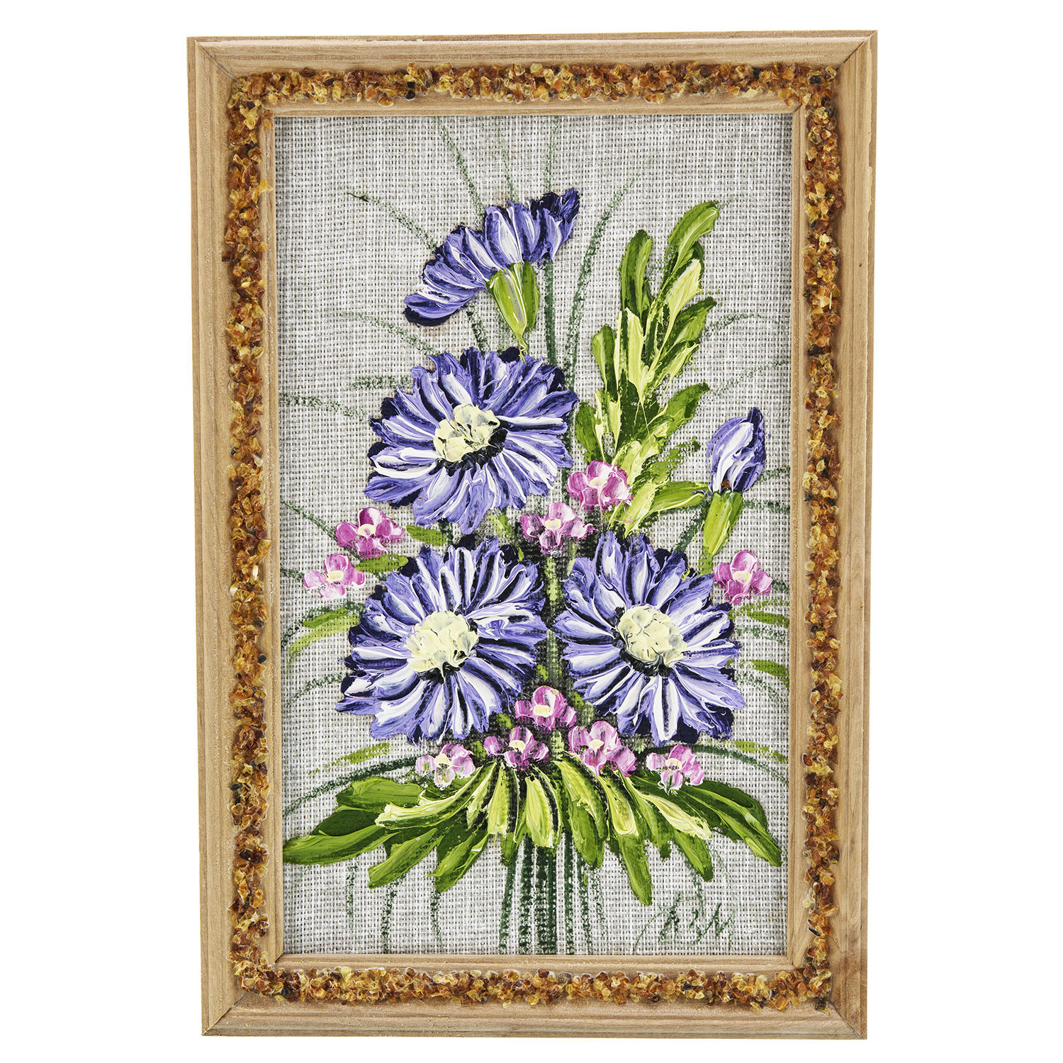 Панно в янтарной раме "Букет цветов" 27х18 см