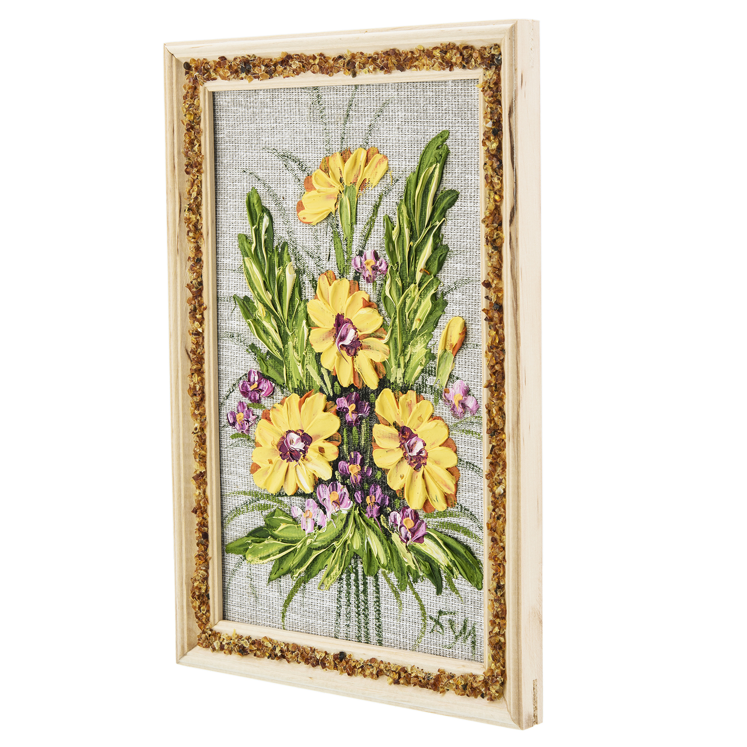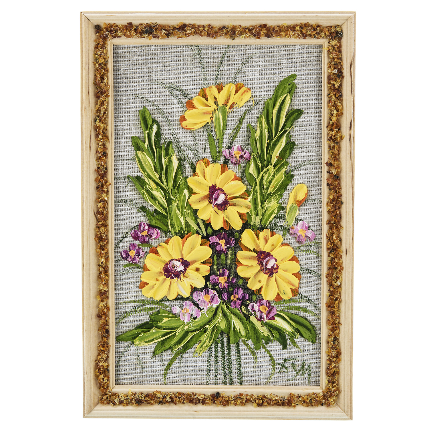 Панно в янтарной раме "Букет цветов".