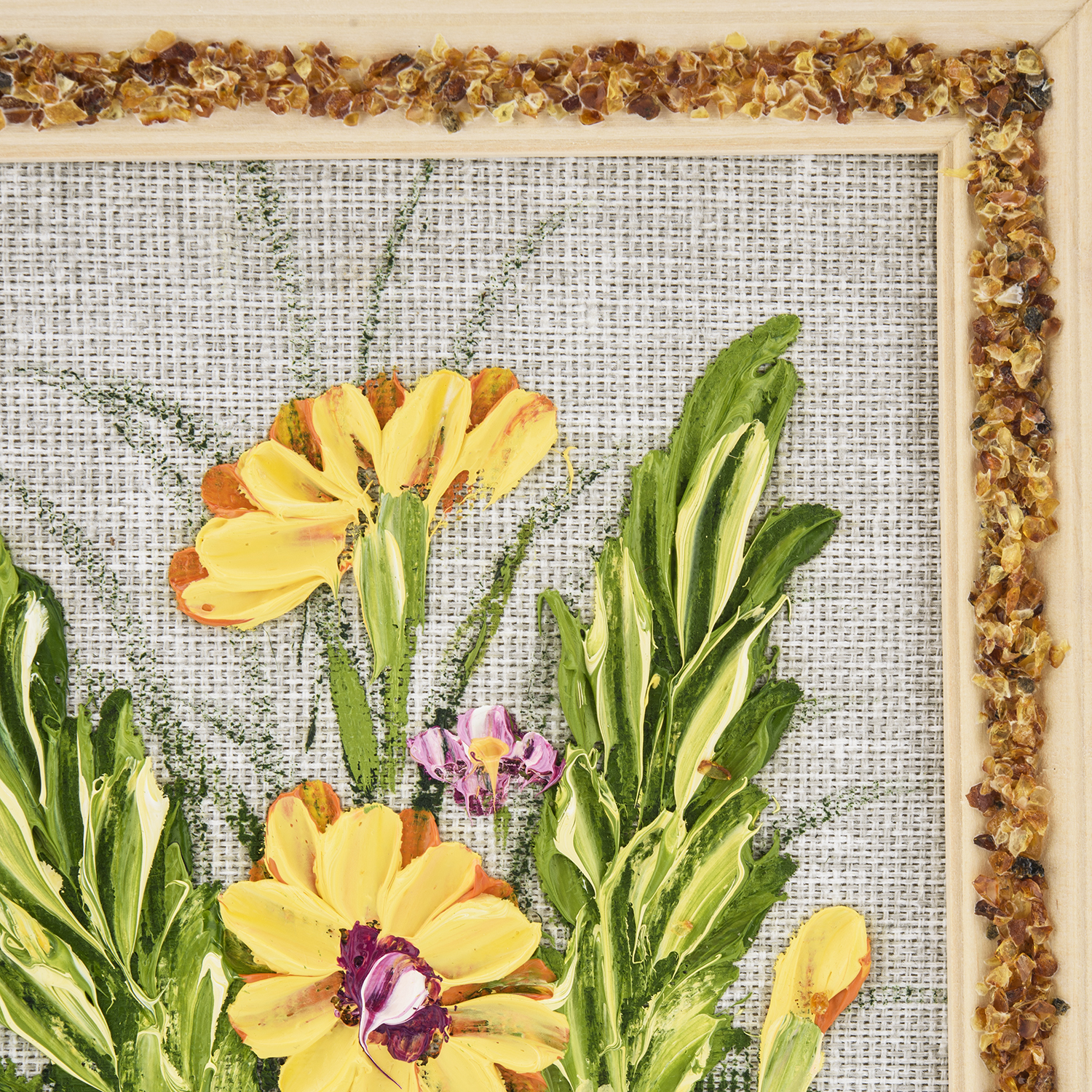 Материалы: холст, краски, дерево, янтарь.
