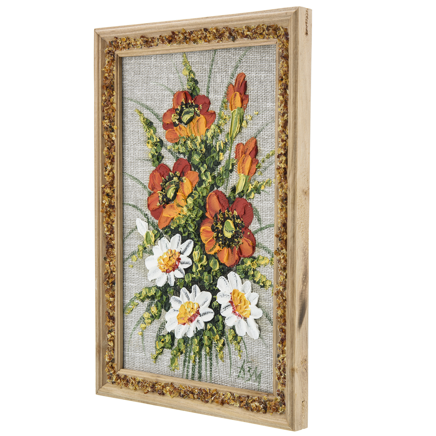 Панно в янтарной раме "Букет цветов" 27х18 см