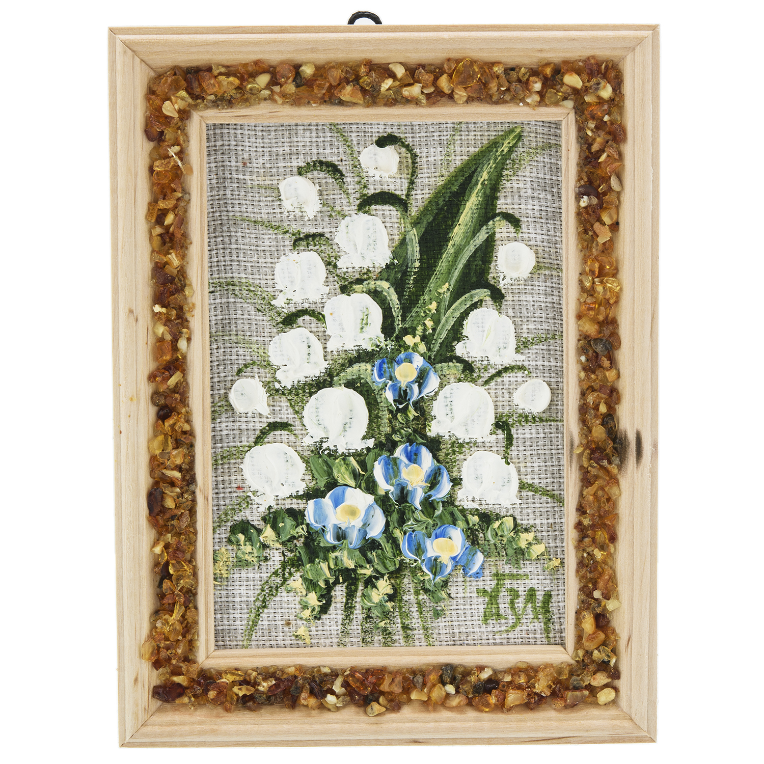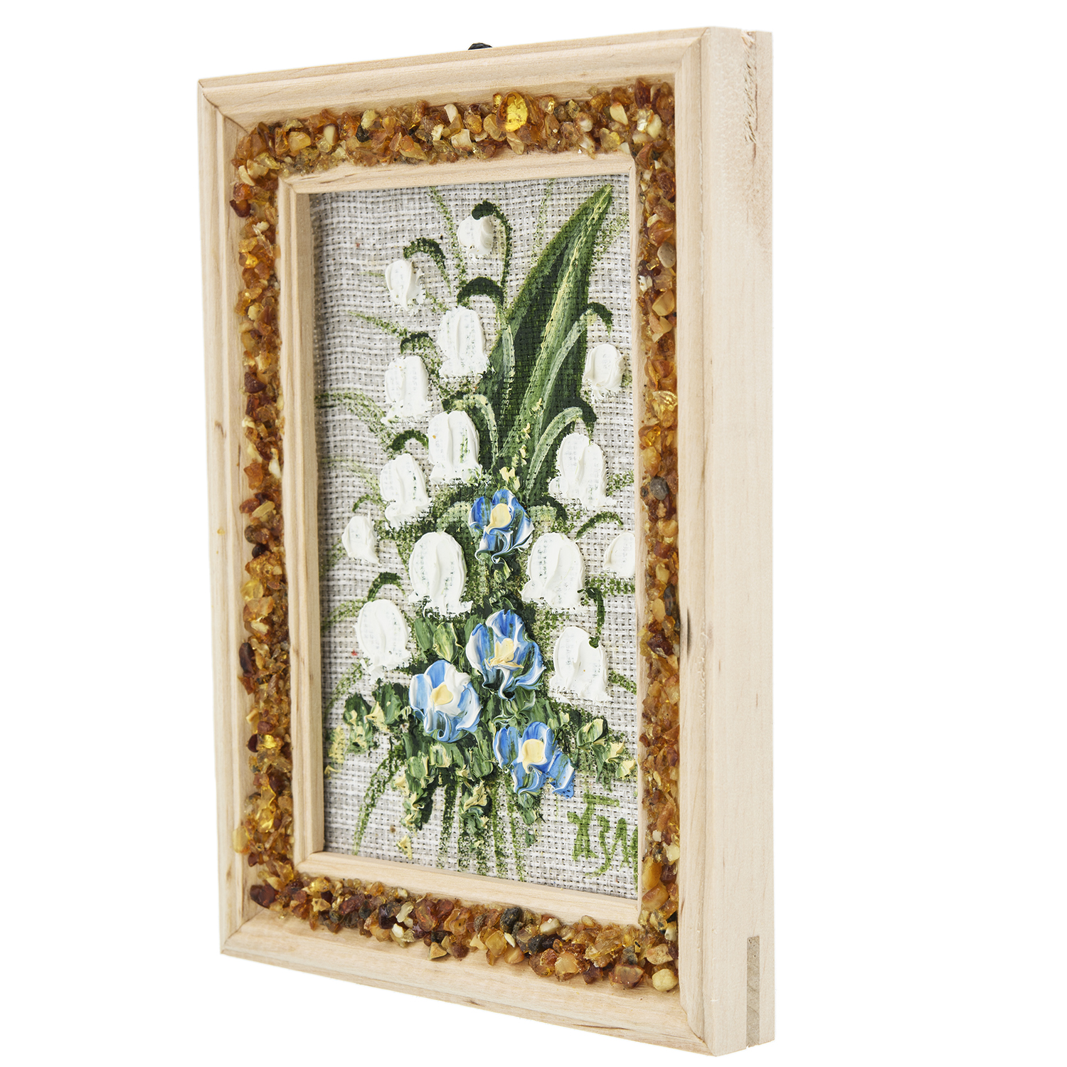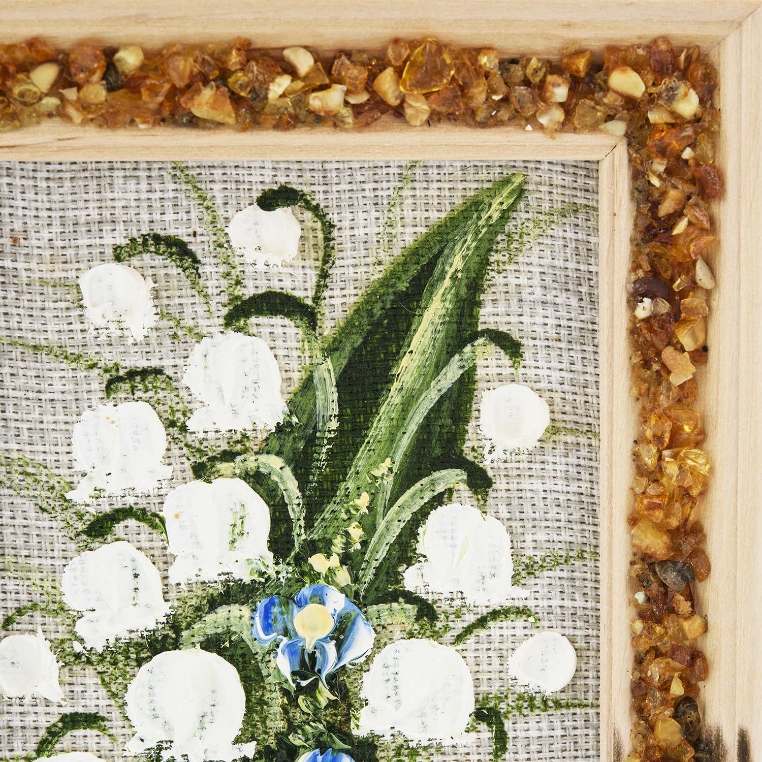 Панно в янтарной раме "Букет цветов".Материалы: холст, краски, дерево, янтарь.