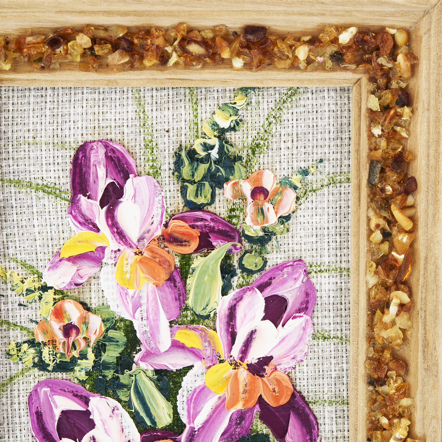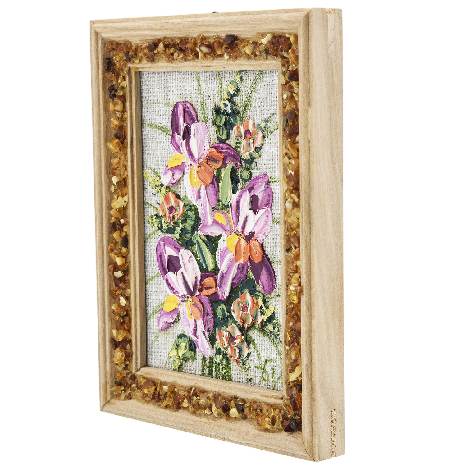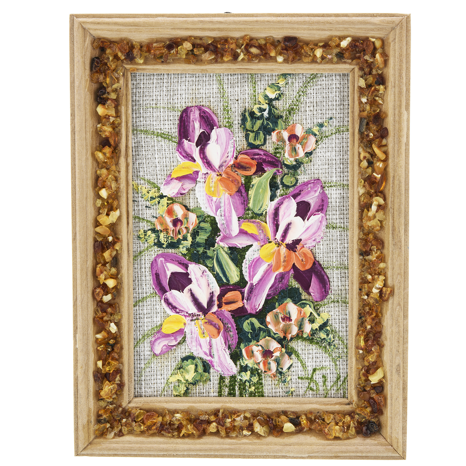 Материалы: холст, краски, дерево, янтарь.
