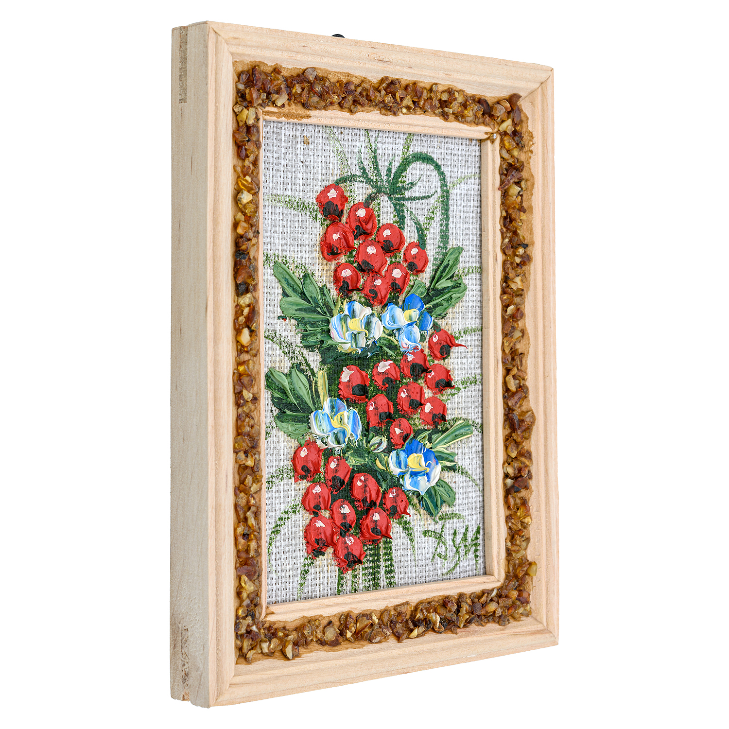 Панно в янтарной раме "Букет цветов" 12,5х16,5 см