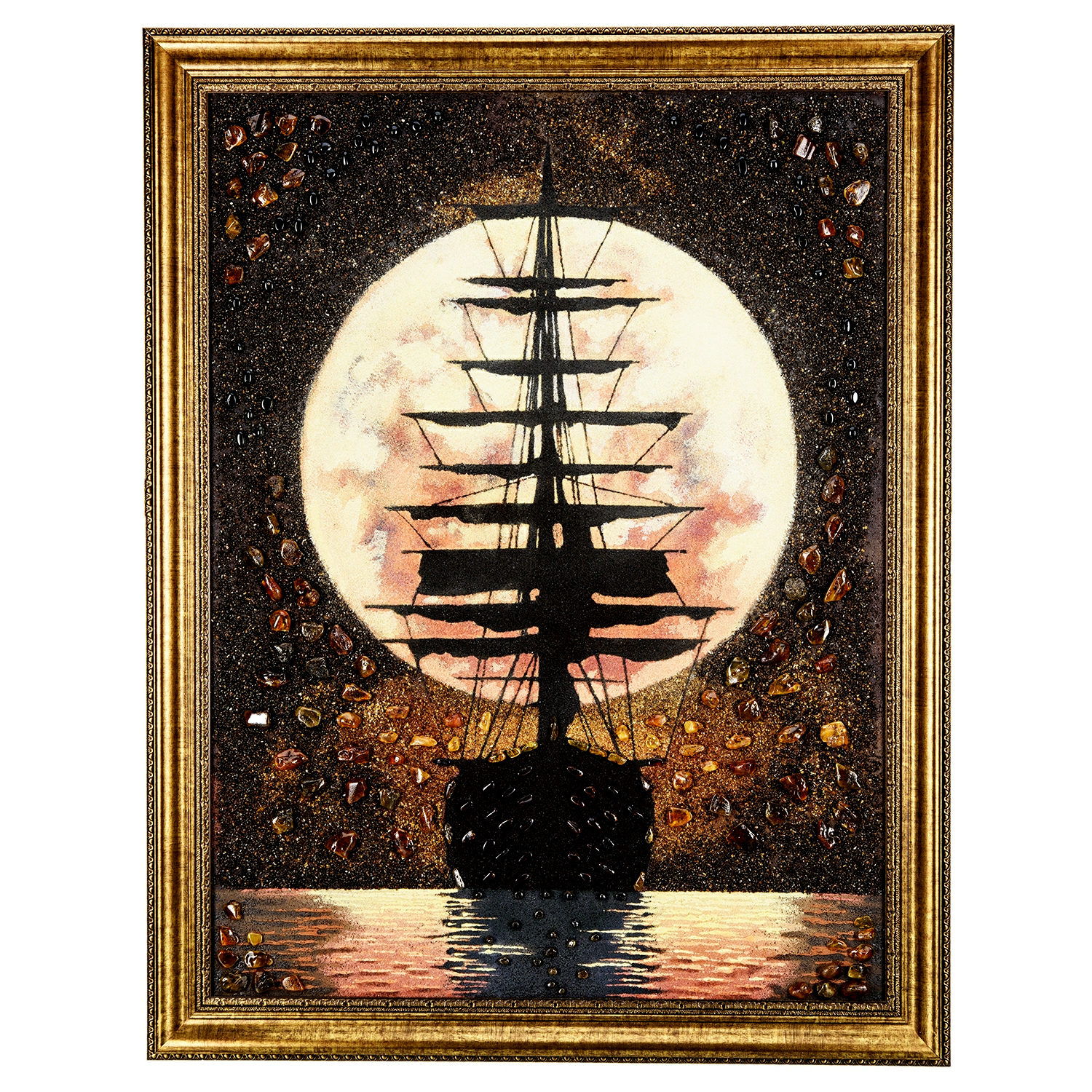 Картина янтарная "Закат и парусник" 60х80 см