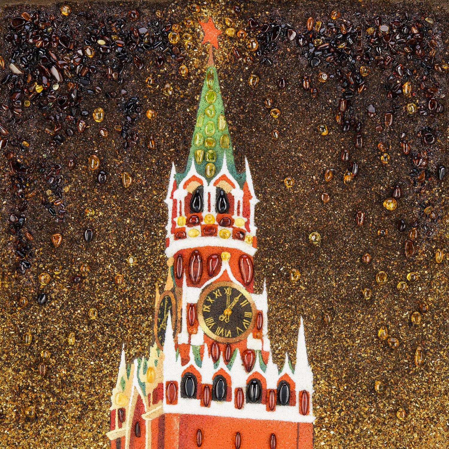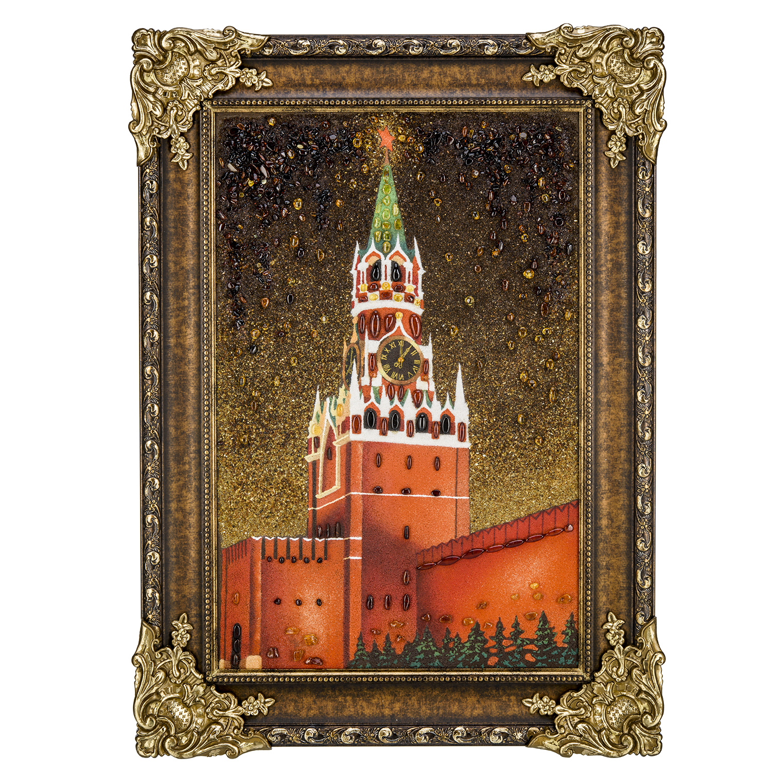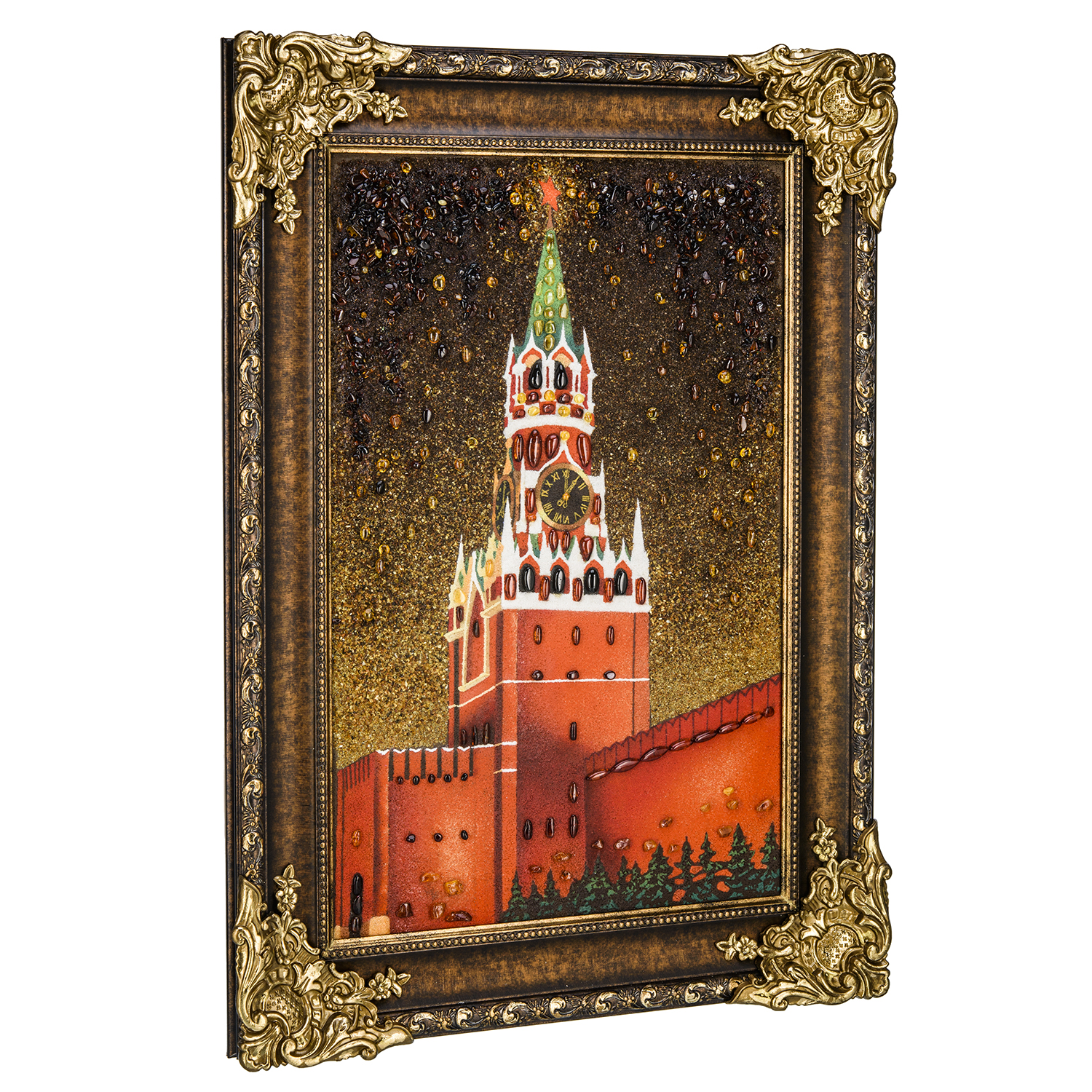 Русские подарки и сувениры → Интерьерные изделия → Картины → Картина янтарная "Спасская башня ночью" 60х40 см