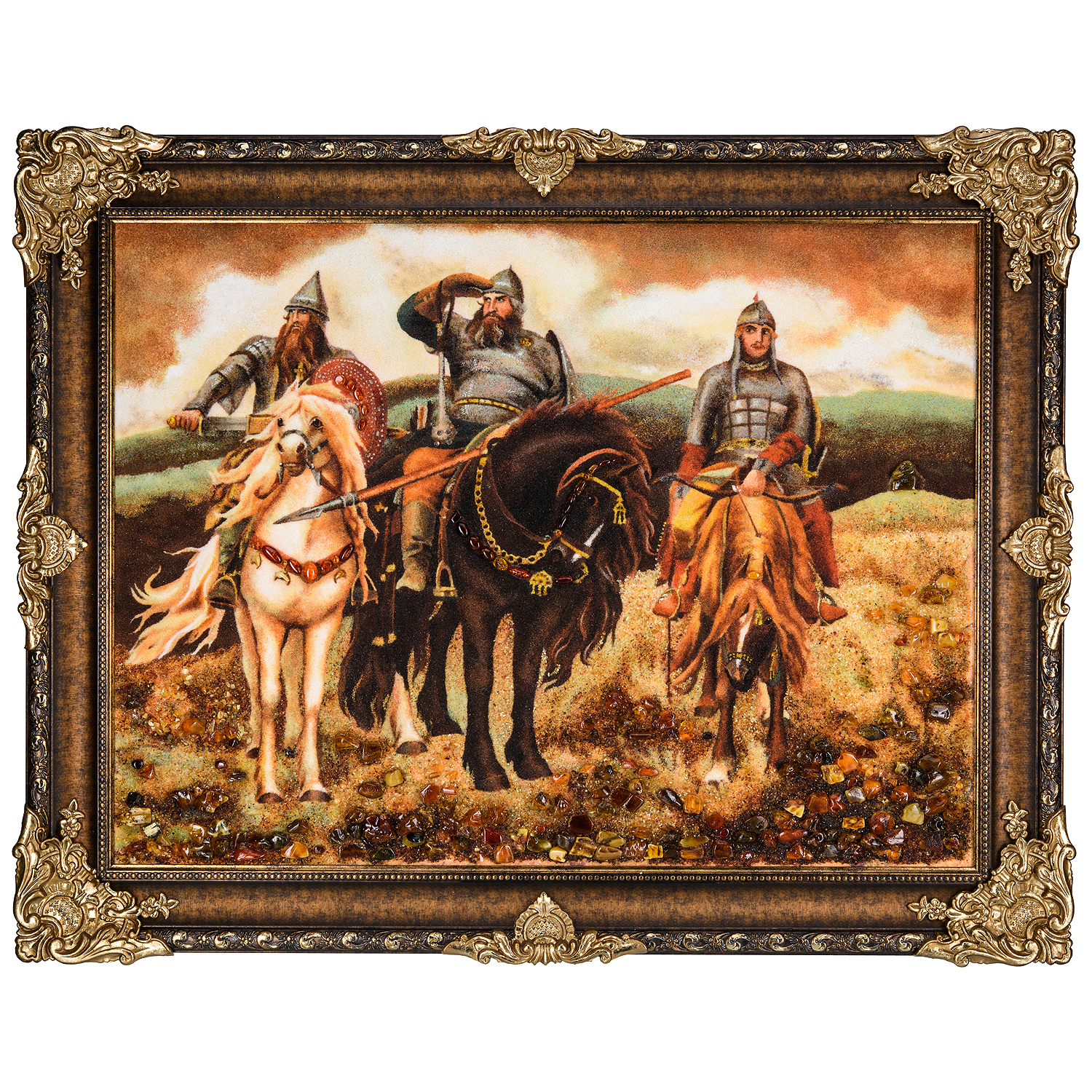 Русские подарки и сувениры → Интерьерные изделия → Картины → Картина янтарная "Три богатыря" 60х80 см