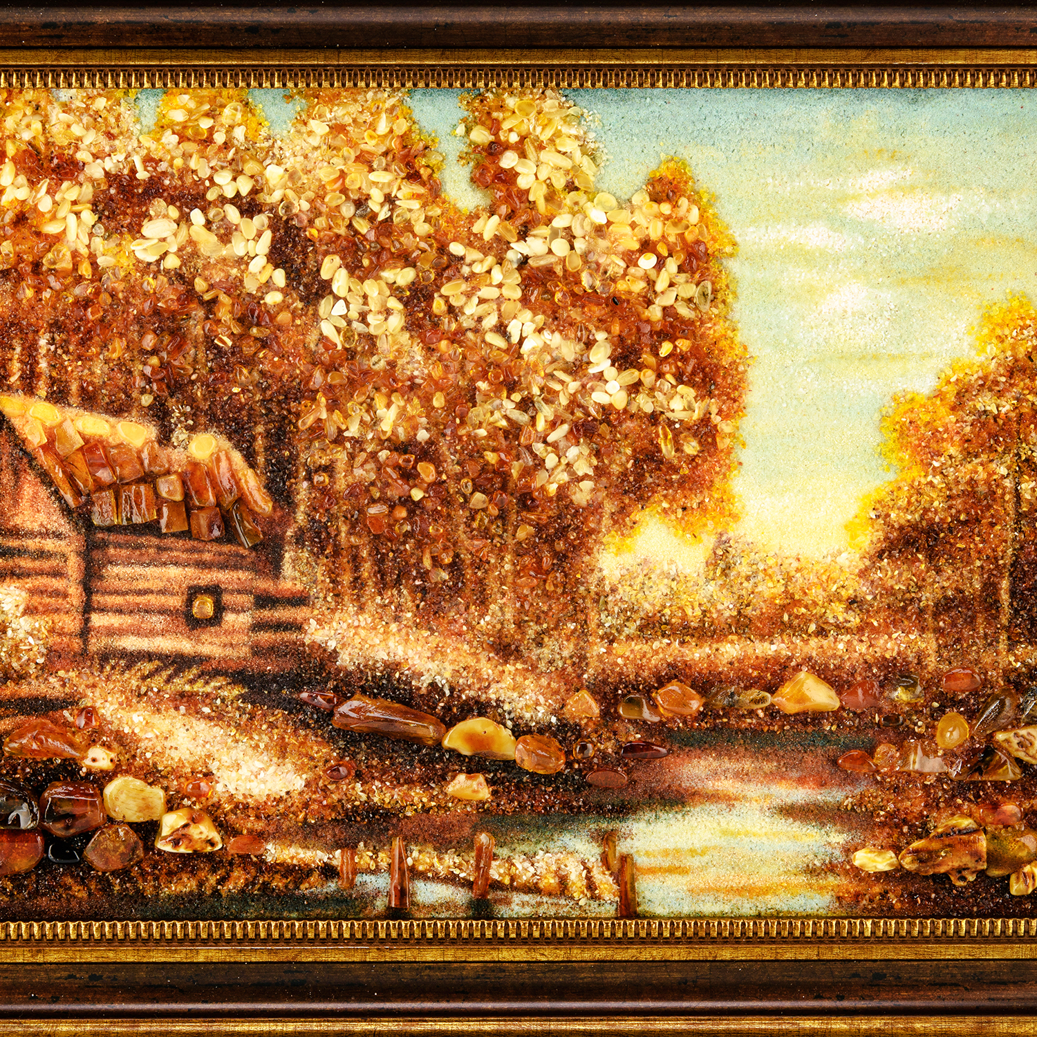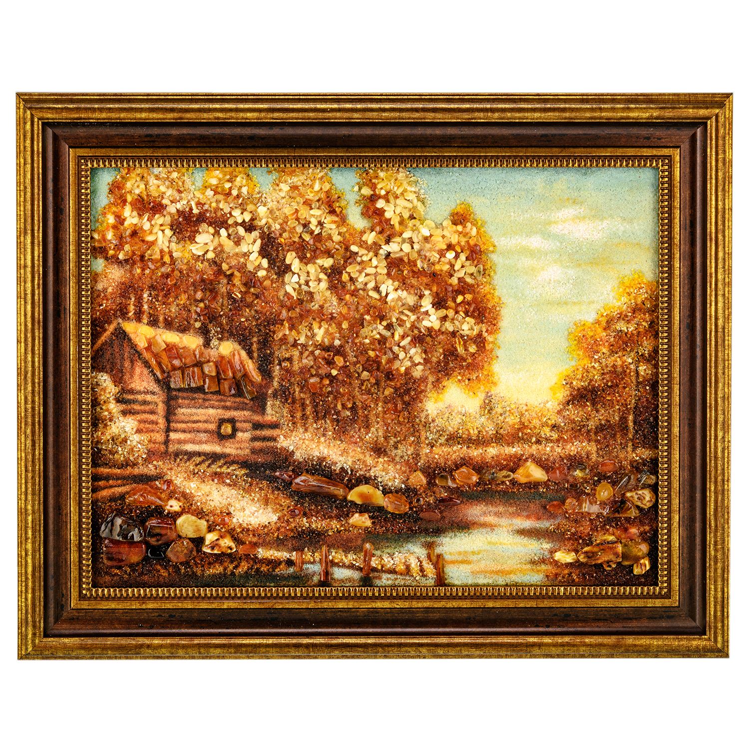 Русские подарки и сувениры → Интерьерные изделия → Картины → Картина янтарная "Лесная обитель" 30х40 см